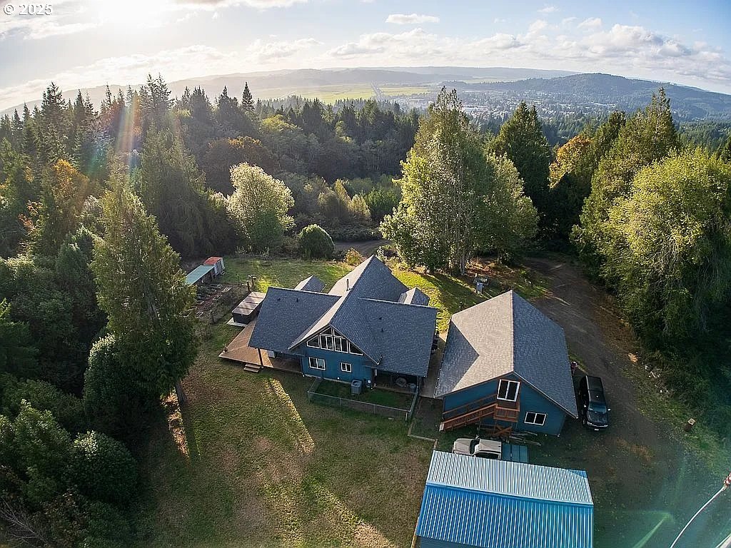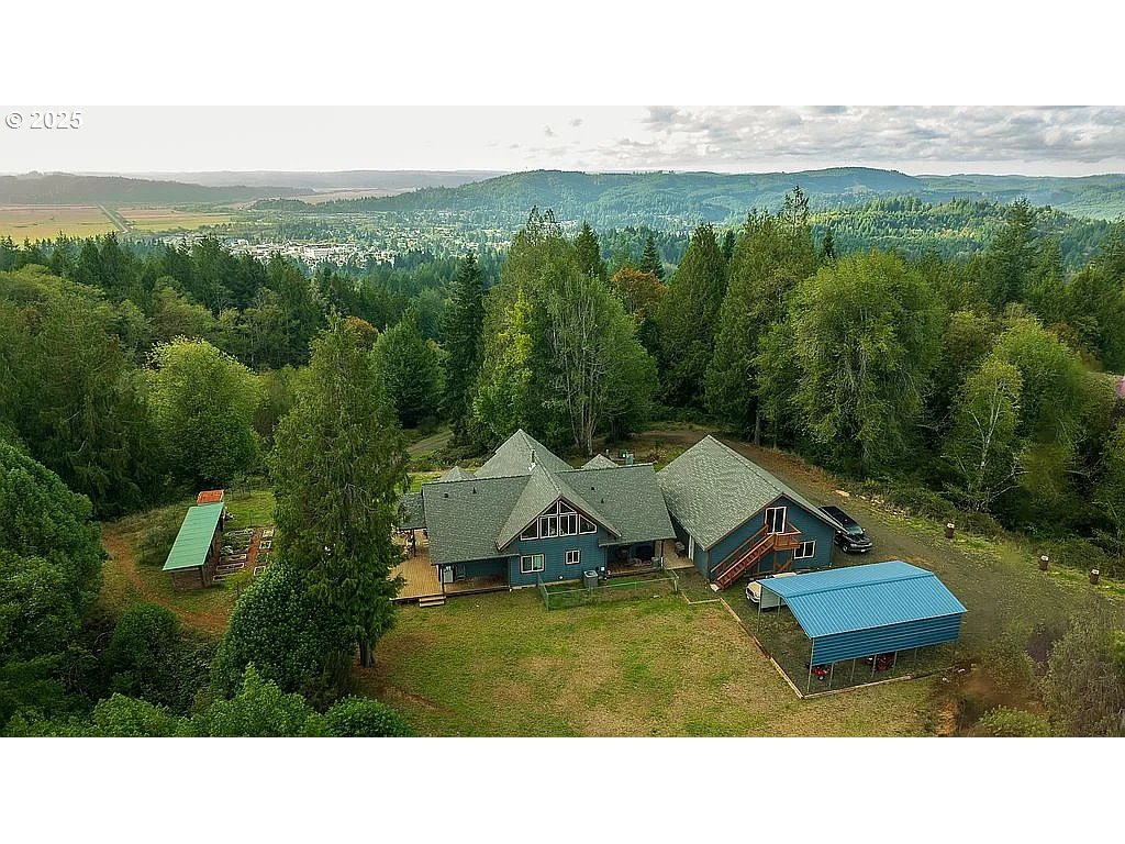 Broker Friendly. Newer Custom home 2 bed/2 bath with upper loft area that could be 3rd bed on 12 acres near town with privacy, views from every angle of the city, valley below and your own natural scenery. Tile flooring throughout, soap stone wood stove, heat pump and quartz counter tops. Master Suite with french doors out to the deck and walk in tile shower. Cedar trim on exterior and interior and wood ceiling all from wood from the property. This custom home is one of a kind! Privacy and close to town! Additional Pictures to Come- *Finished bonus room above garage with separate entrance Large Fenced Garden Chicken Coop and Run 16' Swim Spa 36x24 Steel RV/ Boat Carport.