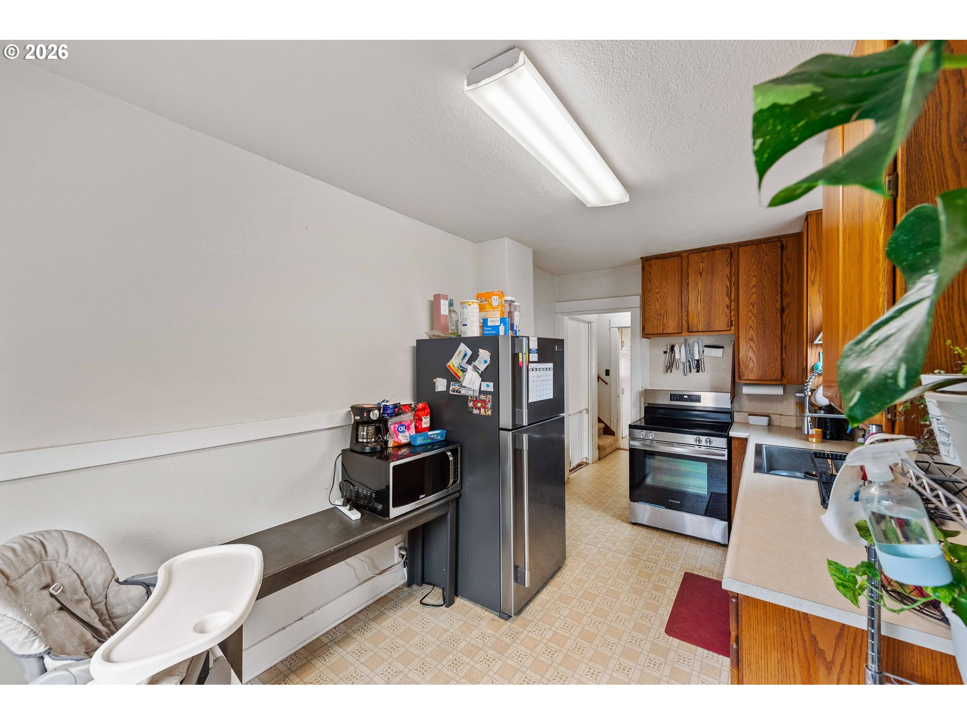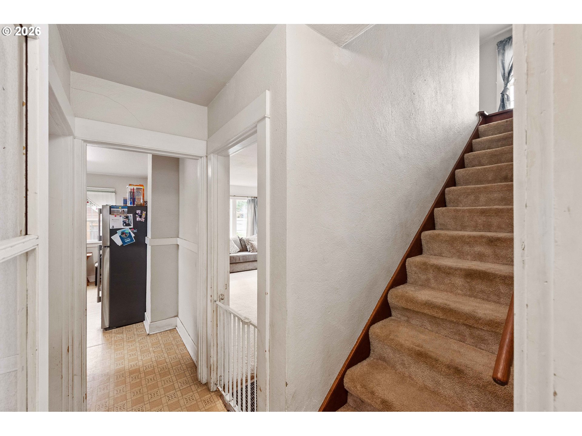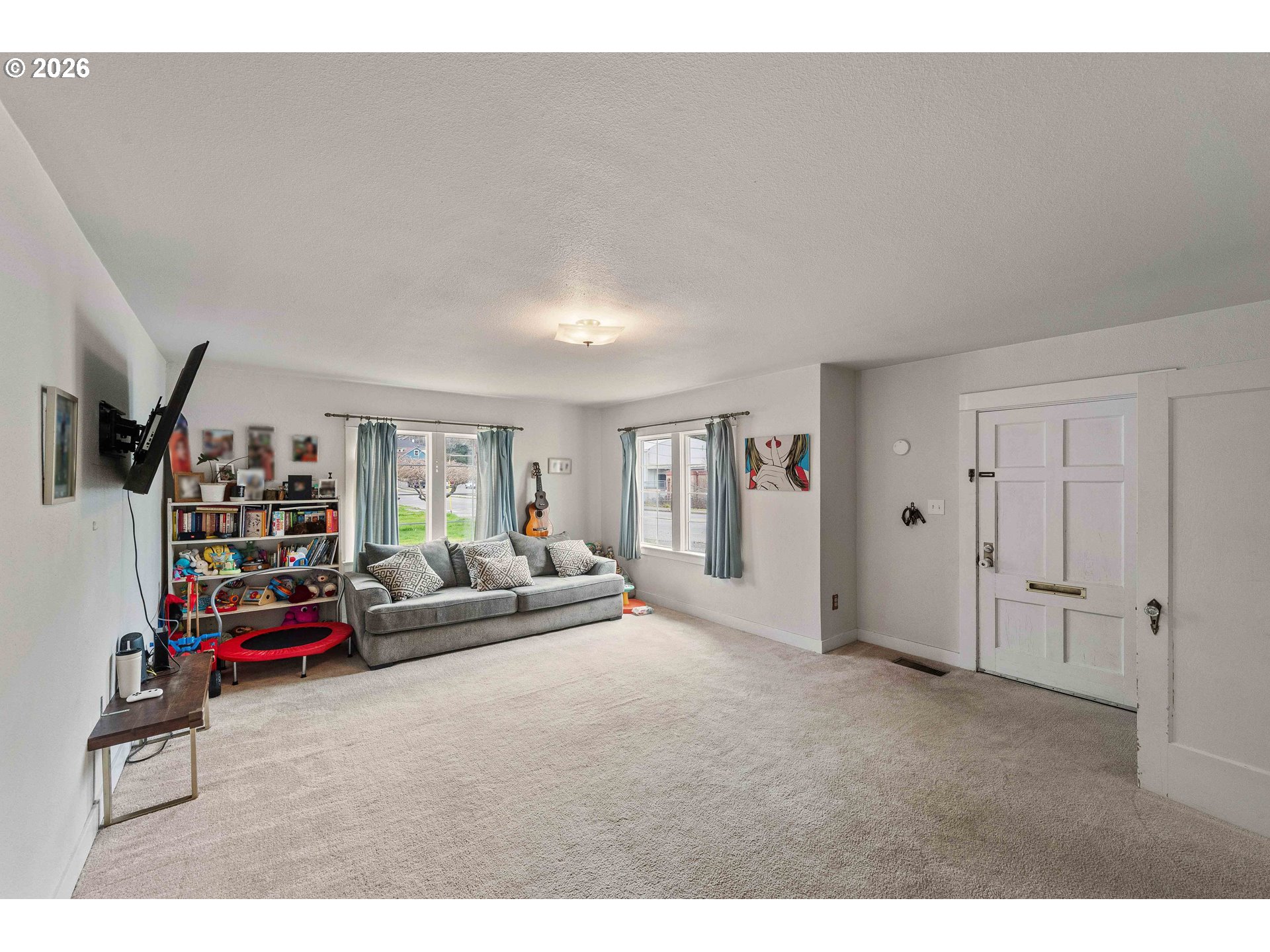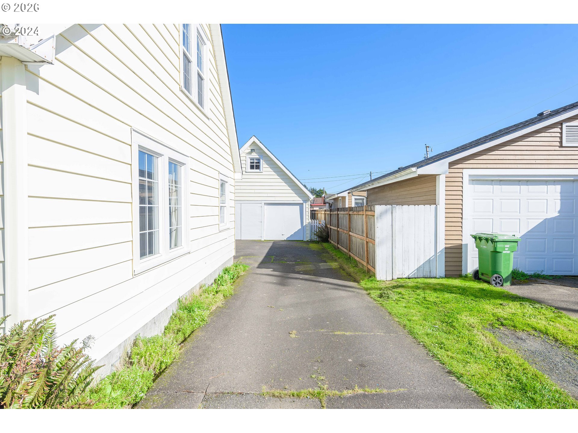 Full of character and thoughtful updates, this classic 1930s Craftsman offers a warm and welcoming feel in one of Coos Bay’s most convenient neighborhoods. With 3 bedrooms, 1 bathroom, and 1,496 sq. ft. of living space, this home combines historic appeal with modern improvements.Inside, natural light fills the main living areas, creating a bright and comfortable atmosphere. The main level includes a well-sized living room, a main floor bedroom, and a refreshed bathroom featuring a new tile shower. The kitchen offers ample cabinetry and workspace, while the oversized laundry room provides abundant built-in storage rarely found in homes of this era.Upstairs, you’ll find two additional bedrooms with walk-in closets and original hardwood flooring that reflects the home’s enduring craftsmanship. Recent improvements include updated electrical adding efficiency and peace of mind.The outdoor space is equally inviting with a large backyard, mature fruit trees, seasonal flowers, and a newly added partial privacy fence ideal for relaxing or entertaining. A detached two-car garage with loft offers extra storage or workshop potential, along with generous off-street parking and room for an RV or boat.