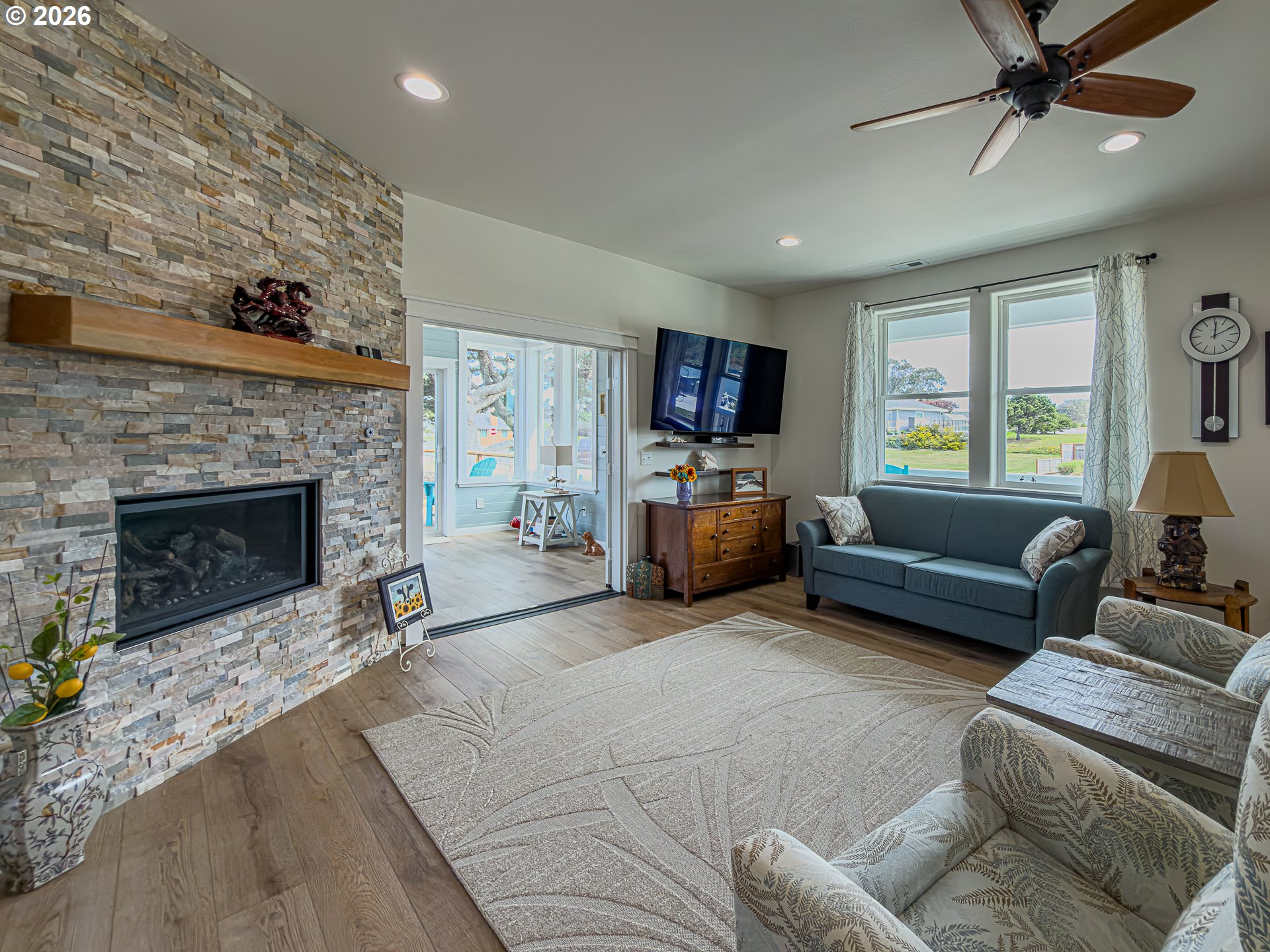 (503) 893-8874Experience coastal living at its finest at 3214 Lincoln Ave SW in Bandon, Oregon, where this impeccably maintained, custom-built single-level home offers effortless comfort just moments from public beach access in a sought-after neighborhood of newer homes and welcoming neighbors. Designed for easy living, the residence pairs low-maintenance appeal with exceptional craftsmanship throughout, from the inviting front porch to a light-filled living room featuring a stone-stacked fireplace that flows seamlessly into a beautiful custom sunroom and out to a composite deck, ideal for year-round enjoyment. The primary suite features a thoughtfully appointed ensuite with a granite countertop, built-in linen cabinetry, and a stunning tiled walk-in shower, while the second bedroom is conveniently located near a well-appointed guest bath with granite finishes and another elegant tiled walk-in shower. The sparkling kitchen impresses with slab granite counters, a gas cooktop, a generous walk-in pantry, and included appliances. A double car garage, efficient heat pump heating, LVP flooring throughout and a spacious laundry room complete with washer & dryer add to the interior amenities. Additional highlights include a sunny south-facing concrete patio, lush landscaping with a charming clover lawn and convenient concrete walkways surrounding the home, This flawless home offers a refined blend of style, function, and coastal proximity, creating a place you will truly love coming home to. Make sure to watch the Video Tour!
