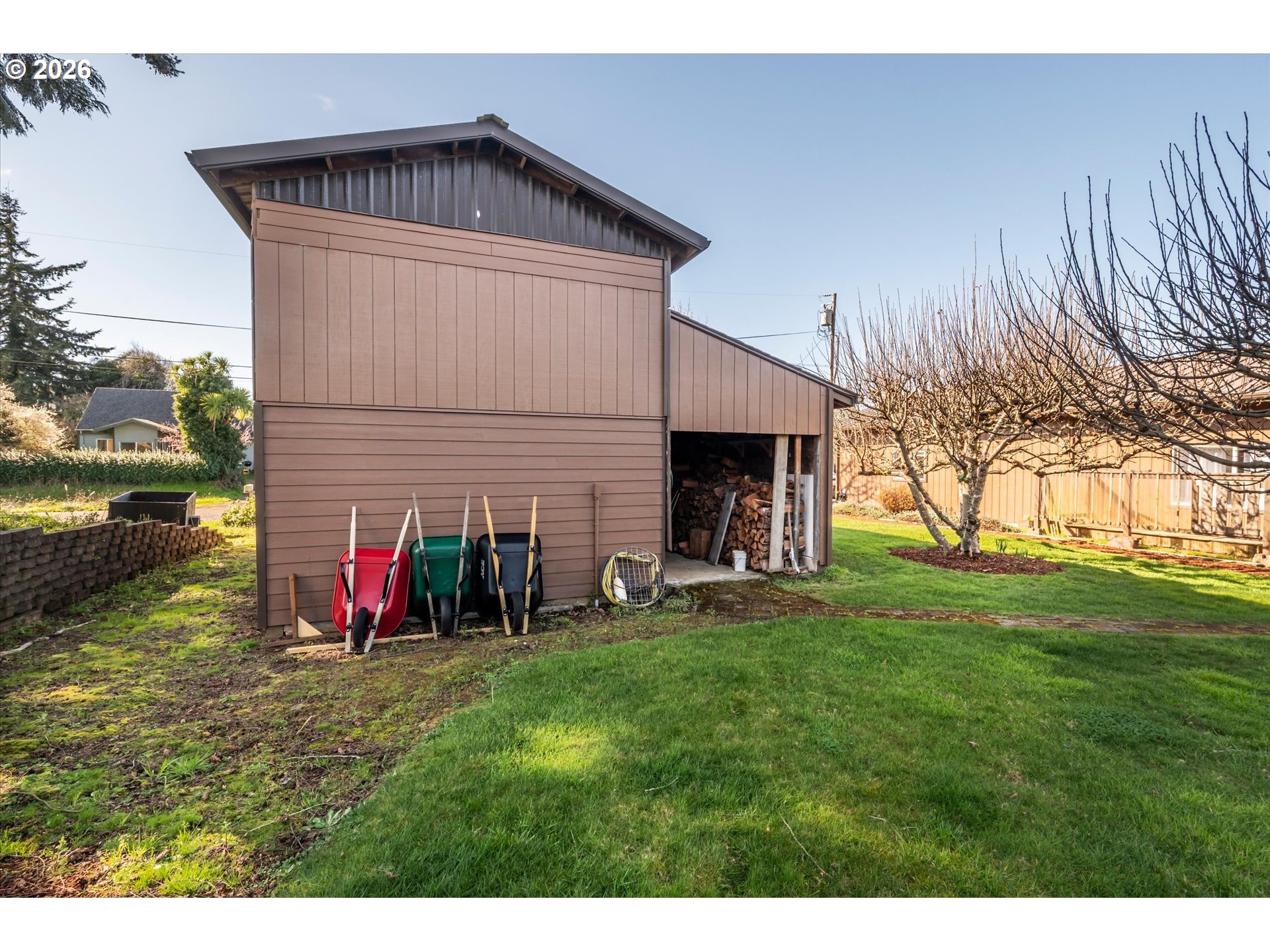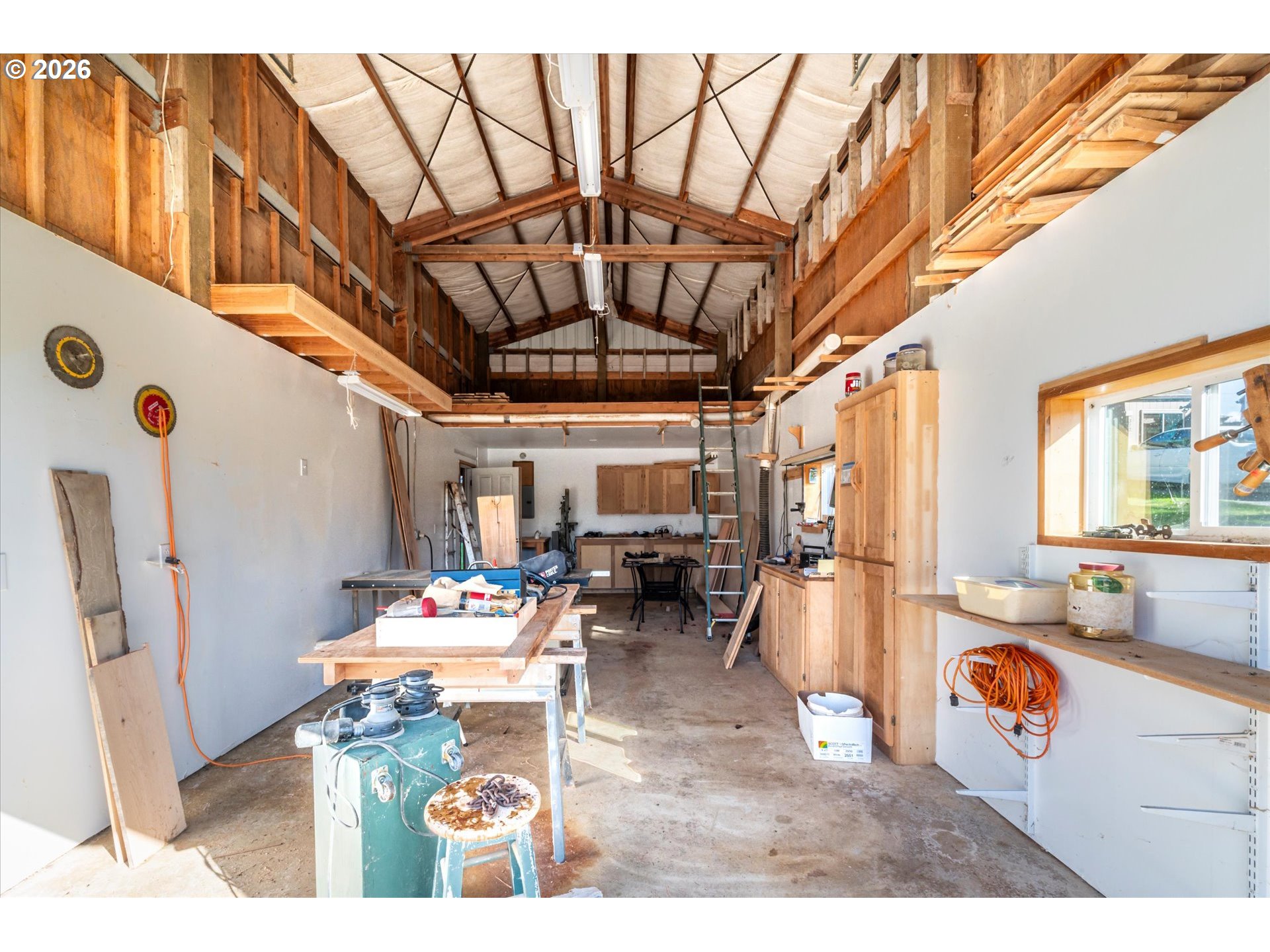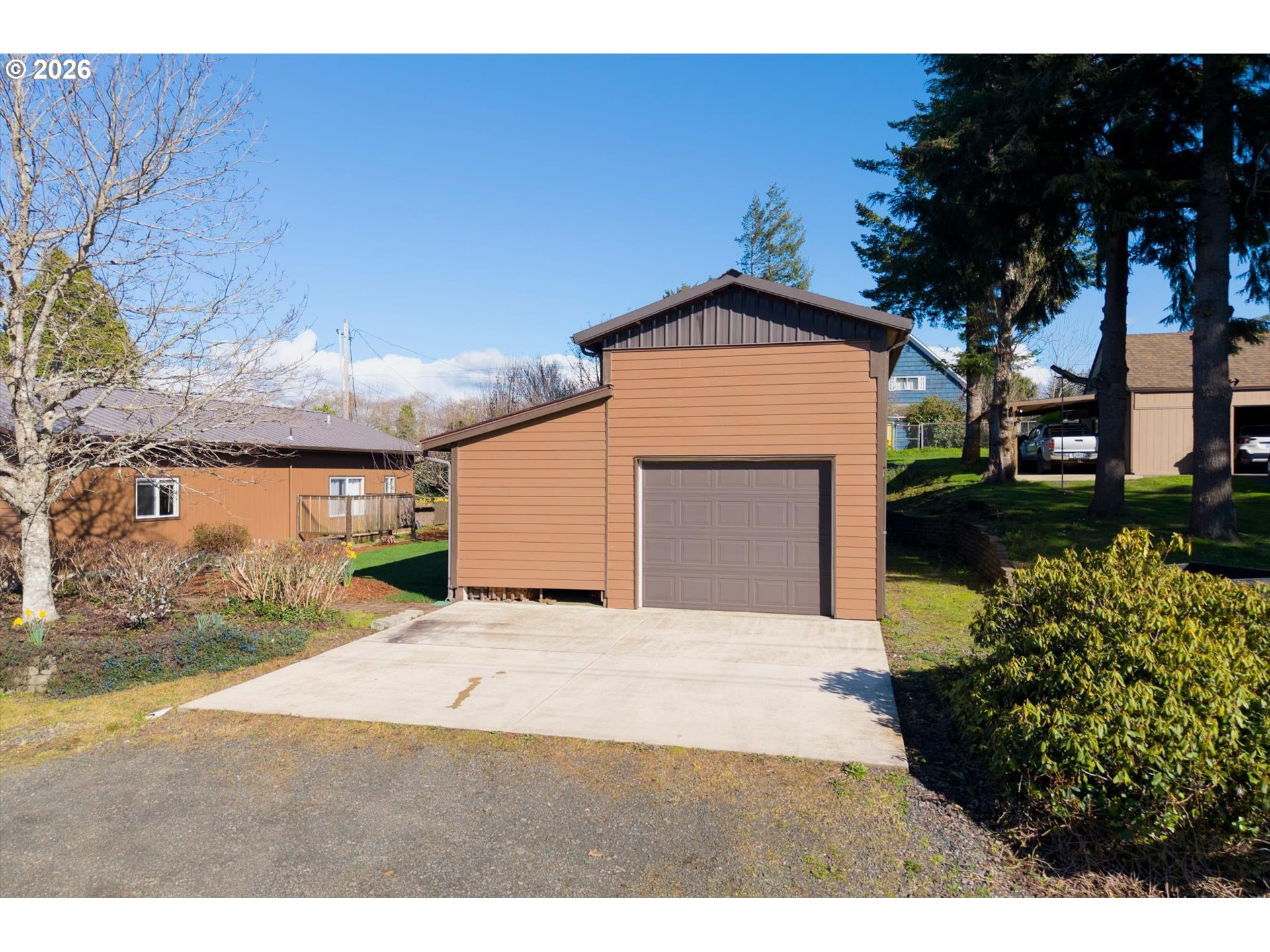(503) 893-8874Beautiful Eastside property with exceptional shop and workspace potential just blocks from the Millicoma track and trail system. The main level features a primary bedroom with bathroom, an open living area with large windows that fill the home with natural light, and a cozy wood stove for those coastal evenings. A convenient half bath is also located on the main level.Circular stairs lead to the lower level where you'll find a flexible bedroom or office space, abundant storage, and an attached single-car garage.What truly sets this property apart are the additional outbuildings. Two detached structures include a charming studio apartment along with multiple garages and workshop areas—ideal for hobbies, projects, storage, or creative pursuits.The grounds are beautifully landscaped with fruit trees and inviting outdoor living spaces, including a welcoming deck perfect for relaxing or entertaining. A unique property offering privacy, versatility, and room to create, all just minutes from town.