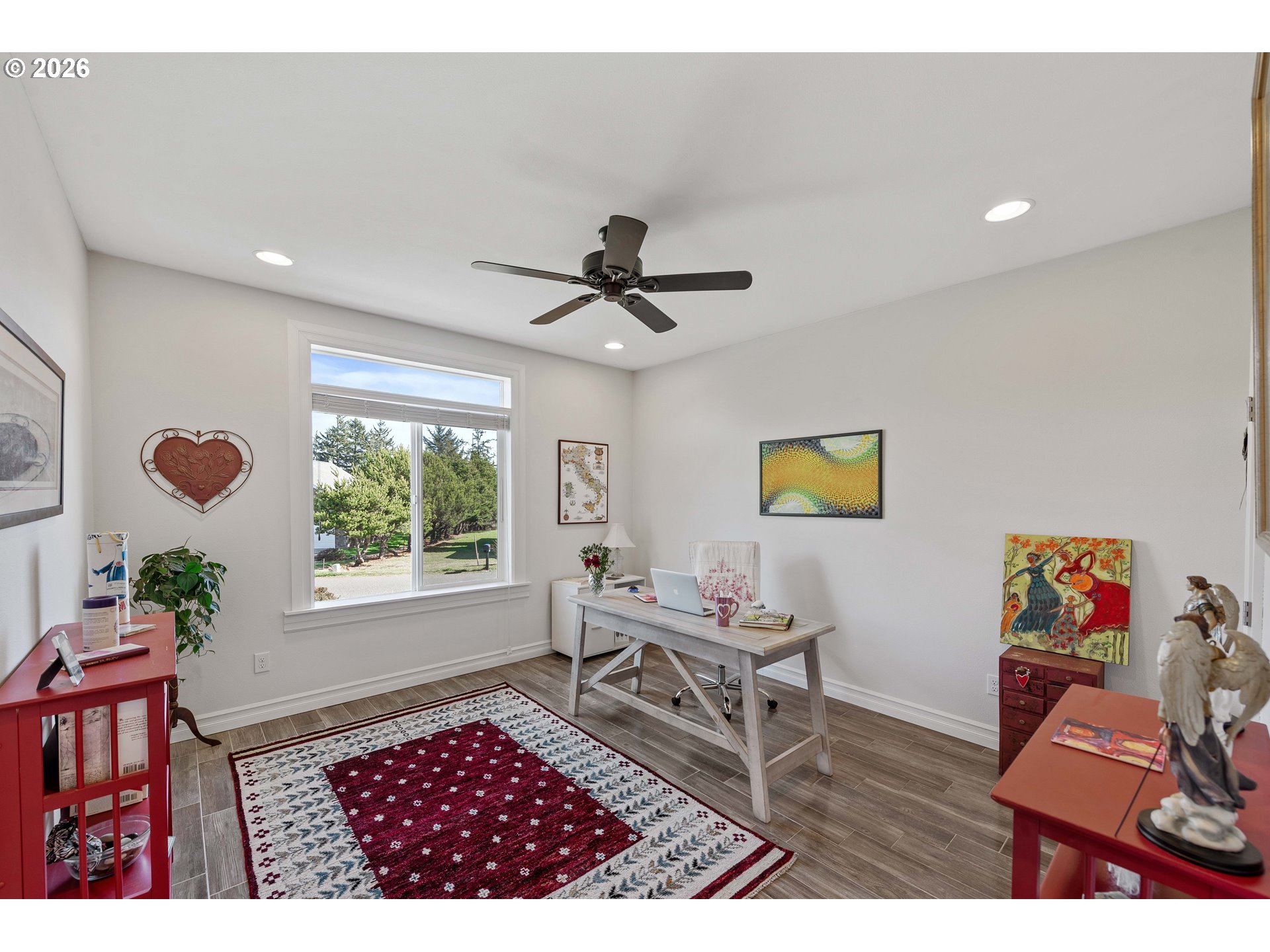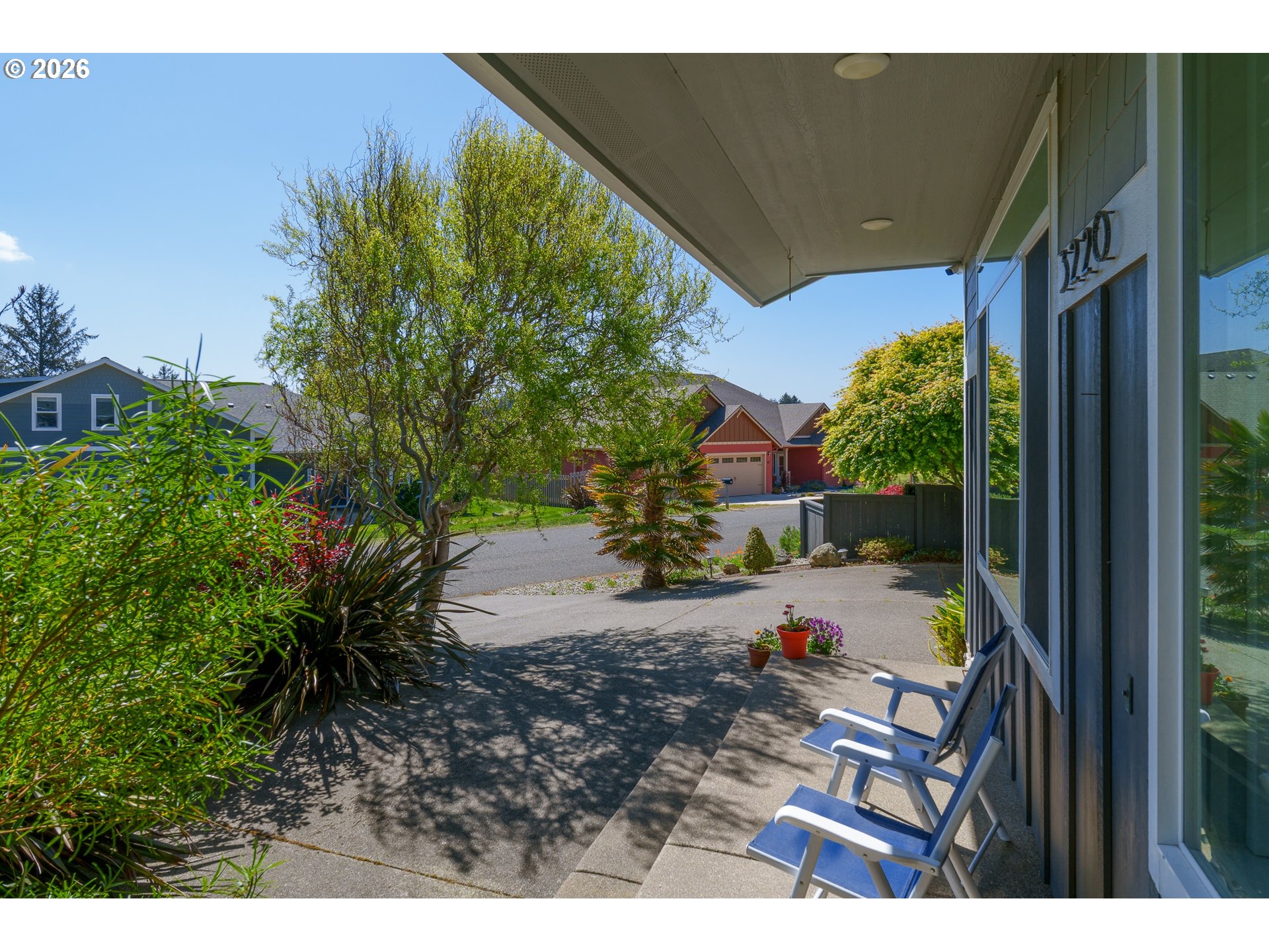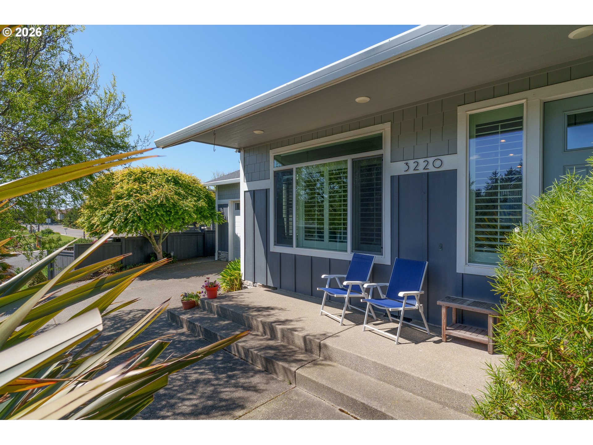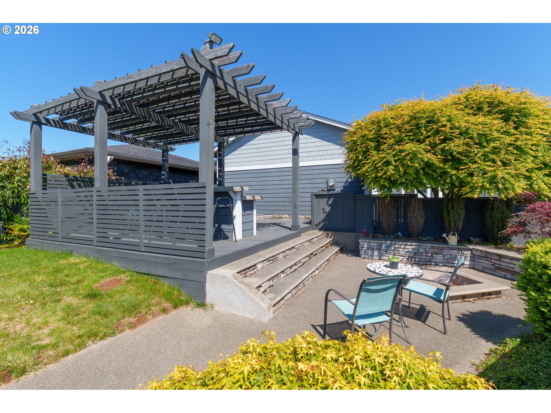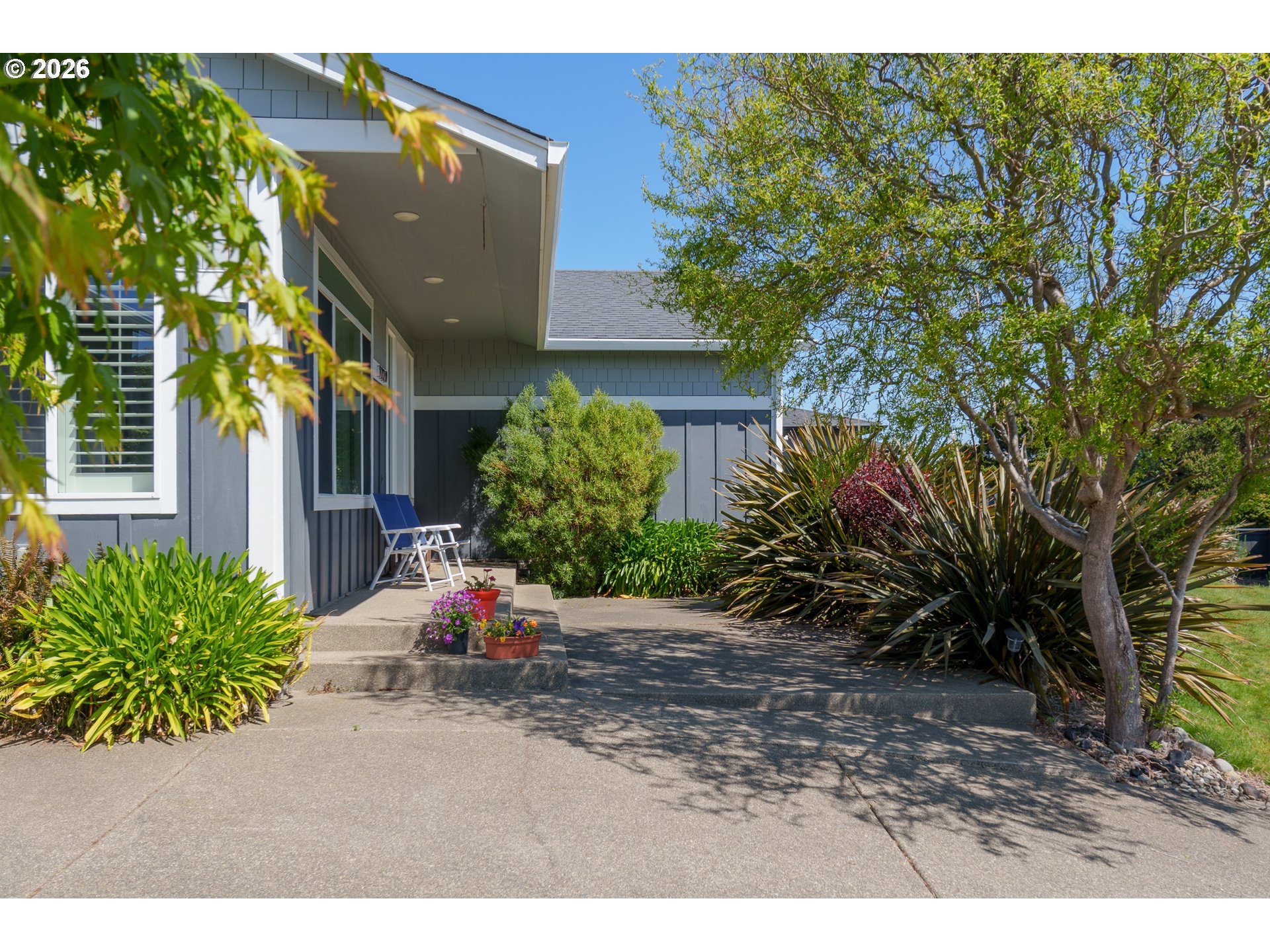Upscale landscaping frames this beautifully maintained 2,080 sq ft coastal retreat, ideally located within an easy stroll to the beach and just minutes from Bandon Dunes Golf Resort, local dining, shopping, and Old Town Bandon. Thoughtfully designed and filled with natural light, the home offers 4 bedrooms, 2 bathrooms, and a versatile bonus room perfect for a home office, library, or creative studio. The attached two-car garage includes a built-in workbench and convenient hanging bike storage. The fully fenced backyard is designed for both relaxation and entertaining, featuring a multi-level deck and patio, fire pit, built-in Lion 32" BBQ, sink with dedicated hot water heater, and a concrete bar beneath a pergola. Inside, the open-concept living area features vaulted ceilings, an electric fireplace, and plantation shutters, flowing seamlessly into the kitchen and dining area. The gourmet kitchen is anchored by an oversized granite island with seating and appointed with GE Monogram stainless steel appliances, an induction range, and granite countertops with matching backsplash. A sliding glass door enhances indoor-outdoor flow, while the nearby laundry room with Electrolux washer and dryer offers additional storage. The primary suite is a private retreat with a newly remodeled walk-in closet and direct access to a secluded deck and patio. The en-suite bathroom features a large walk-in shower, deep soaking tub, and dual vanities. Meticulously cared for and thoughtfully designed, this coastal home is move-in ready.