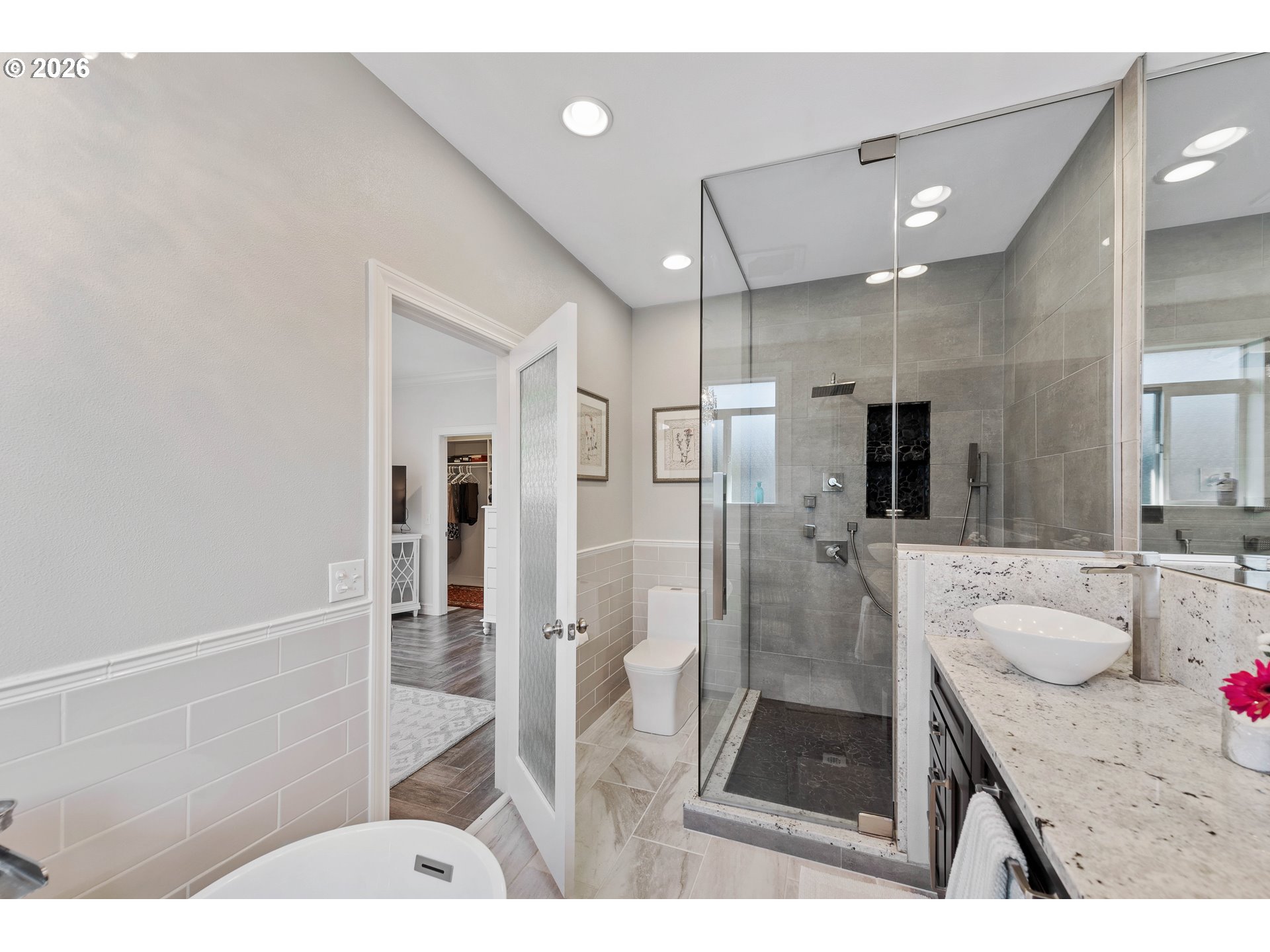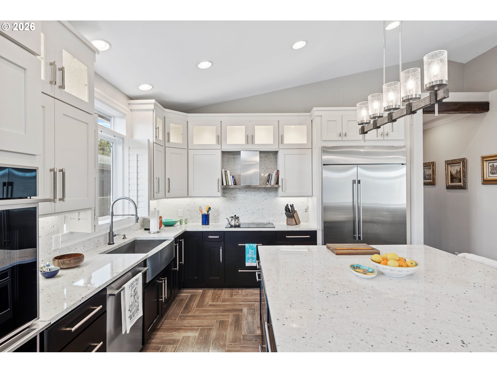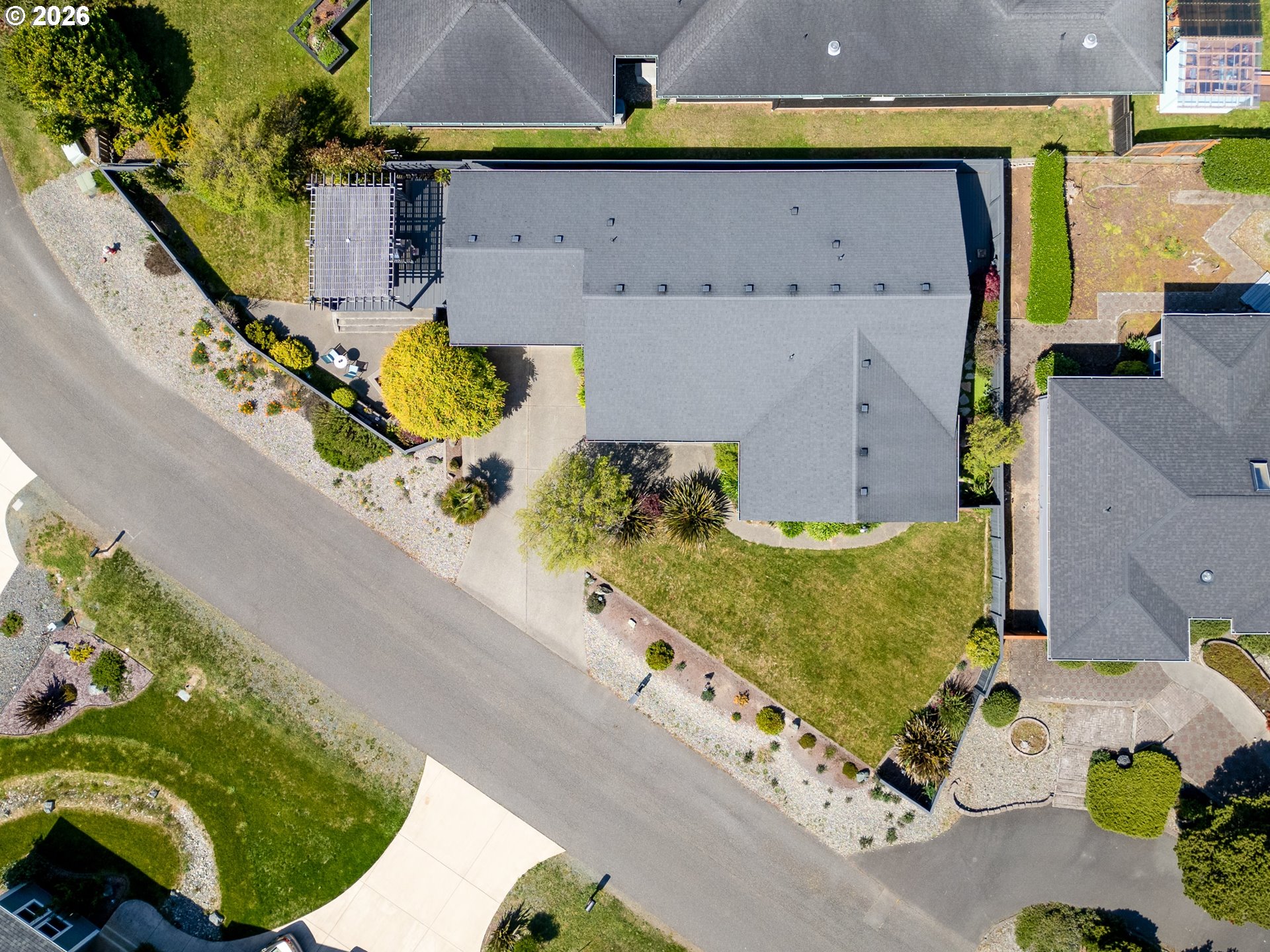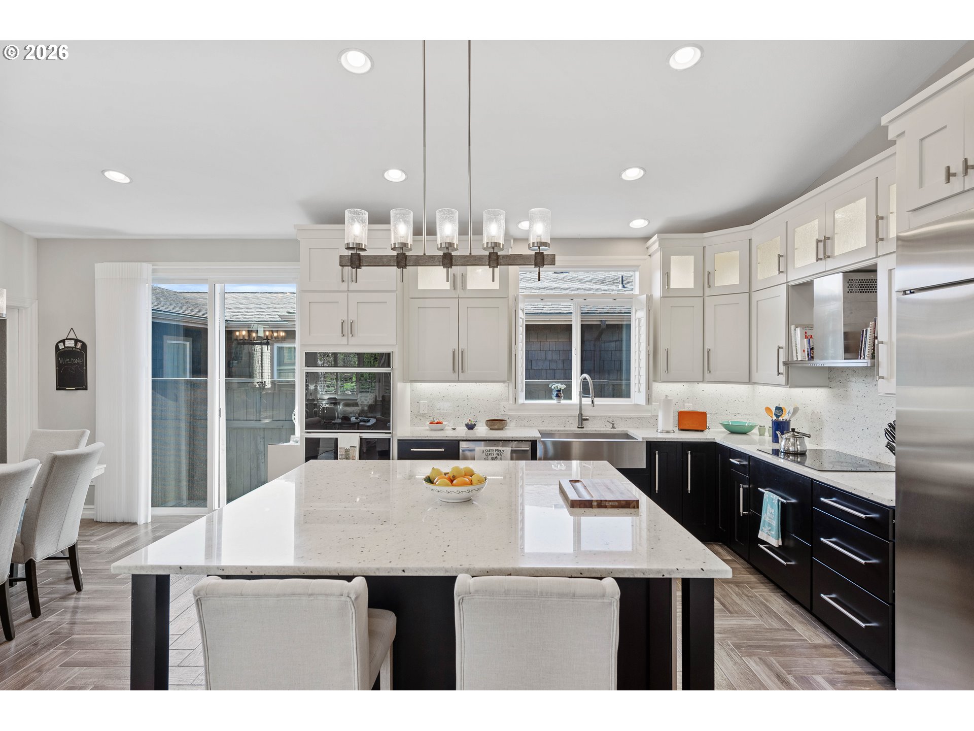 Upscale landscaping frames this beautifully maintained 2,080 sq ft coastal retreat, ideally located within an easy stroll to the beach and just minutes from Bandon Dunes Golf Resort, local dining, shopping, and Old Town Bandon. Thoughtfully designed and filled with natural light, the home offers 4 bedrooms, 2 bathrooms, and a versatile bonus room perfect for a home office, library, or creative studio. The attached two-car garage includes a built-in workbench and convenient hanging bike storage. The fully fenced backyard is designed for both relaxation and entertaining, featuring a multi-level deck and patio, fire pit, built-in Lion 32" BBQ, sink with dedicated hot water heater, and a concrete bar beneath a pergola. Inside, the open-concept living area features vaulted ceilings, an electric fireplace, and plantation shutters, flowing seamlessly into the kitchen and dining area. The gourmet kitchen is anchored by an oversized granite island with seating and appointed with GE Monogram stainless steel appliances, an induction range, and granite countertops with matching backsplash. A sliding glass door enhances indoor-outdoor flow, while the nearby laundry room with Electrolux washer and dryer offers additional storage. The primary suite is a private retreat with a newly remodeled walk-in closet and direct access to a secluded deck and patio. The en-suite bathroom features a large walk-in shower, deep soaking tub, and dual vanities. Meticulously cared for and thoughtfully designed, this coastal home is move-in ready.