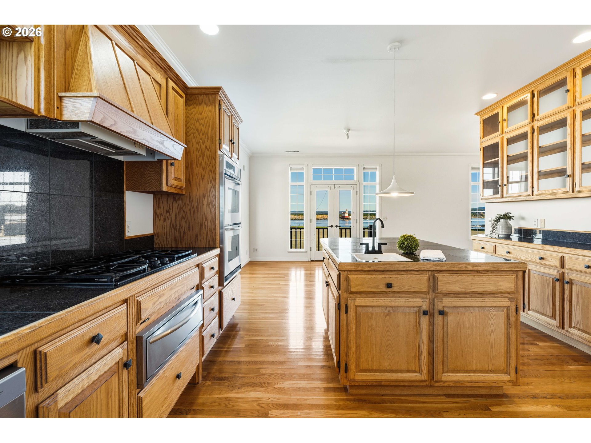 Custom Oregon Coast home located directly across the street from a sandy beach, offering breathtaking sunsets and expansive views of the Pacific Ocean, Coquille River, jetty, and historic lighthouse. With 3,557 sq. ft. of living space, this residence is designed to capture the beauty of its coastal setting, with ocean and water views from nearly every window. The upper living level features a gourmet kitchen equipped with double ovens, propane cooktop, warming drawer, prep island with sink, locking pantry, and dumbwaiter. The dining area’s bay window frames dramatic sunset and water views, while French doors open to a balcony overlooking the beach—ideal for enjoying coastal breezes and evening skies. Multiple living areas include a fireplace living room, sun-filled library, and an open room with pillars and additional balcony access. The main level offers a private primary suite with double walk-in closets, fireplace, and a spacious ensuite with soaking tub and step-in shower. An additional bedroom features views and walk-in closet. A family room with dining area and kitchenette connects to a bright sunroom with skylights and outdoor access. Several flexible spaces provide potential for additional bedrooms, offices, or guest accommodations. Exterior features include a fenced yard with gated entry, two-car garage, and brand-new roof installed Fall 2025. Ideally located just minutes from Old Town Bandon’s shops, dining, and waterfront, as well as Bandon Dunes Golf Resort, this home offers the perfect blend of coastal lifestyle, convenience, and unforgettable ocean sunsets.