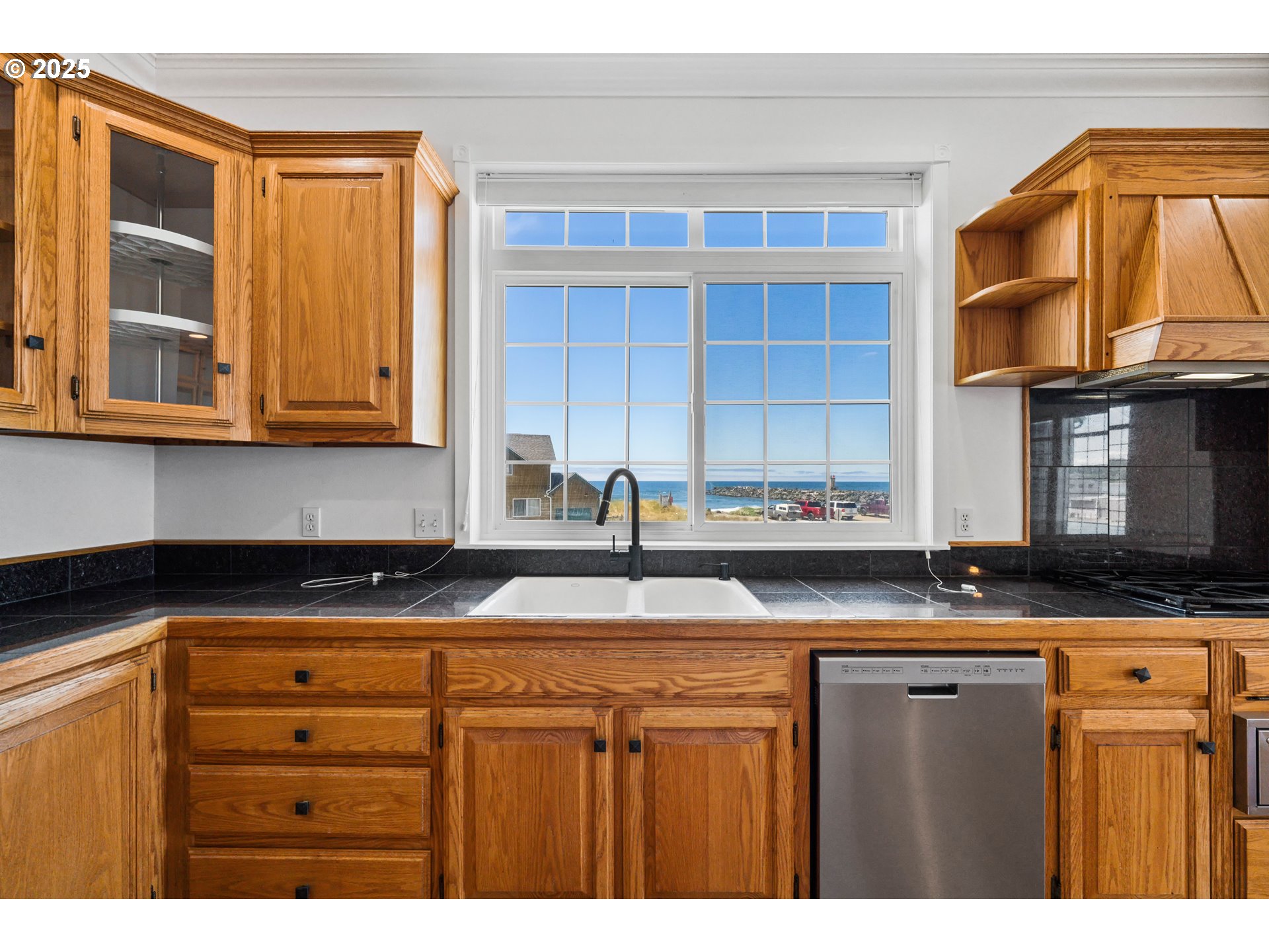(503) 893-8874Welcome to your dream retreat on the stunning Oregon Coast! This 3,557 sq. ft. custom home is perfectly positioned to capture breathtaking views of the Pacific Ocean, Coquille River, historic lighthouse, jetty, and beach. Nearly every window offers a front-row seat to the natural beauty that surrounds you. Step inside where a sweeping staircase leads upstairs to the heart of the home. The gourmet kitchen is a chef’s paradise, featuring a double oven, propane cooktop, warming drawer, prep island with sink, locking pantry, and convenient dumbwaiter. The dining area’s bay window frames spectacular views, and French doors open to a balcony where you can soak in the sights and coastal breeze. A cozy living room with a fireplace, sun-filled library, and an elegant open room with pillars and French doors to another balcony, provide inviting spaces to relax or entertain. Downstairs, the primary suite is a private haven with double walk-in closets, a luxurious ensuite with soaking tub, step-in shower, and its own fireplace. A second bedroom offers lighthouse views and dual closets, including a walk-in. The main level family room connects seamlessly to a dining space and a well-appointed kitchenette, leading to a bright sunroom with skylights and outdoor access — perfect for peaceful mornings or vibrant indoor gardens. This home offers multiple spacious areas that could easily be utilized or converted into additional bedrooms, offices, hobby rooms, or guest quarters — giving you flexibility to fit your lifestyle. Outside, enjoy the fenced yard with gated entry and a two-car garage. BRAND NEW roof installed fall/2025! Just minutes from Bandon Dunes Golf Resort, charming shops, and local dining, this exceptional property invites you to embrace the best of coastal living. Wake up to the ocean, unwind to the sound of the surf — this is Oregon Coast living at its finest!