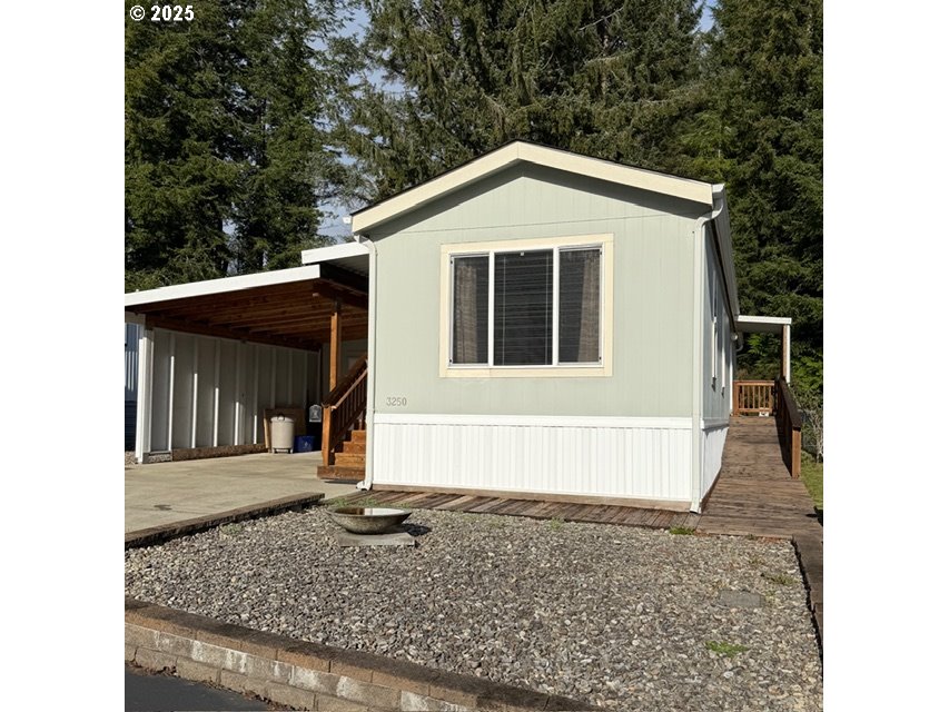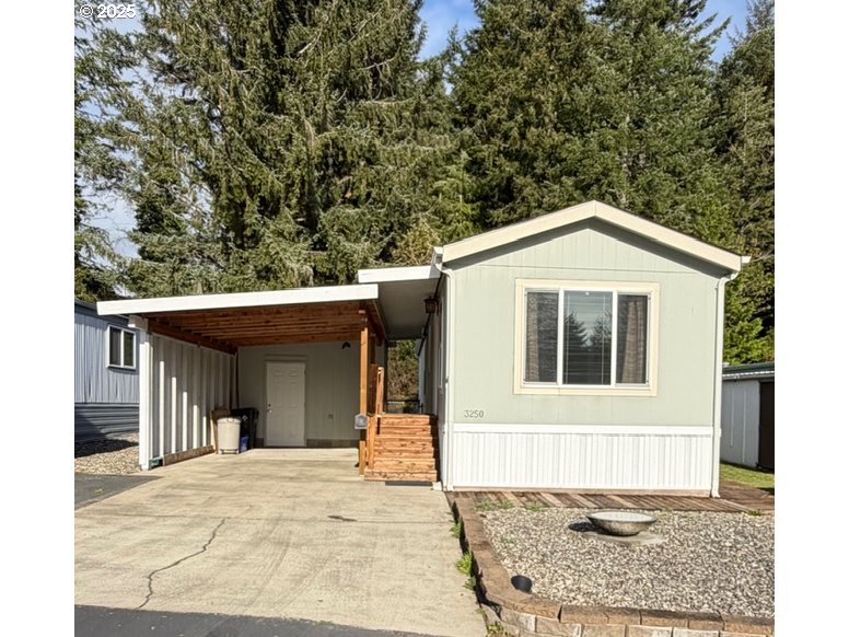 This 2010 manufactured home is a 2 bedroom 1 bath singlewide with vaulted ceilings. Just had interior painted, new carpet & pad, new LVP plank flooring in the kitchen and bathroom. Caulked exterior siding. Hardi-Plank type siding. Large carport with storage shed & shop area attached. Home has lots of light. Both morning and afternoon sun. Range with built in microwave over head. Refrigerator and washer/dryer and a safe stay with the home. Fenced back yard if you have a pet. Wheel chair ramp off the back door. The home had been pressure washed, gutters and driveway too. The park is very clean and the space rent to current owner is $320.00 and includes trash. Pet policy is one pet not over 20 pounds. This 55+ park is conveniently located and close to Walmart, Medical facilities and the hospital. PRICED TO SELL. As-is. Clean and Vacant.