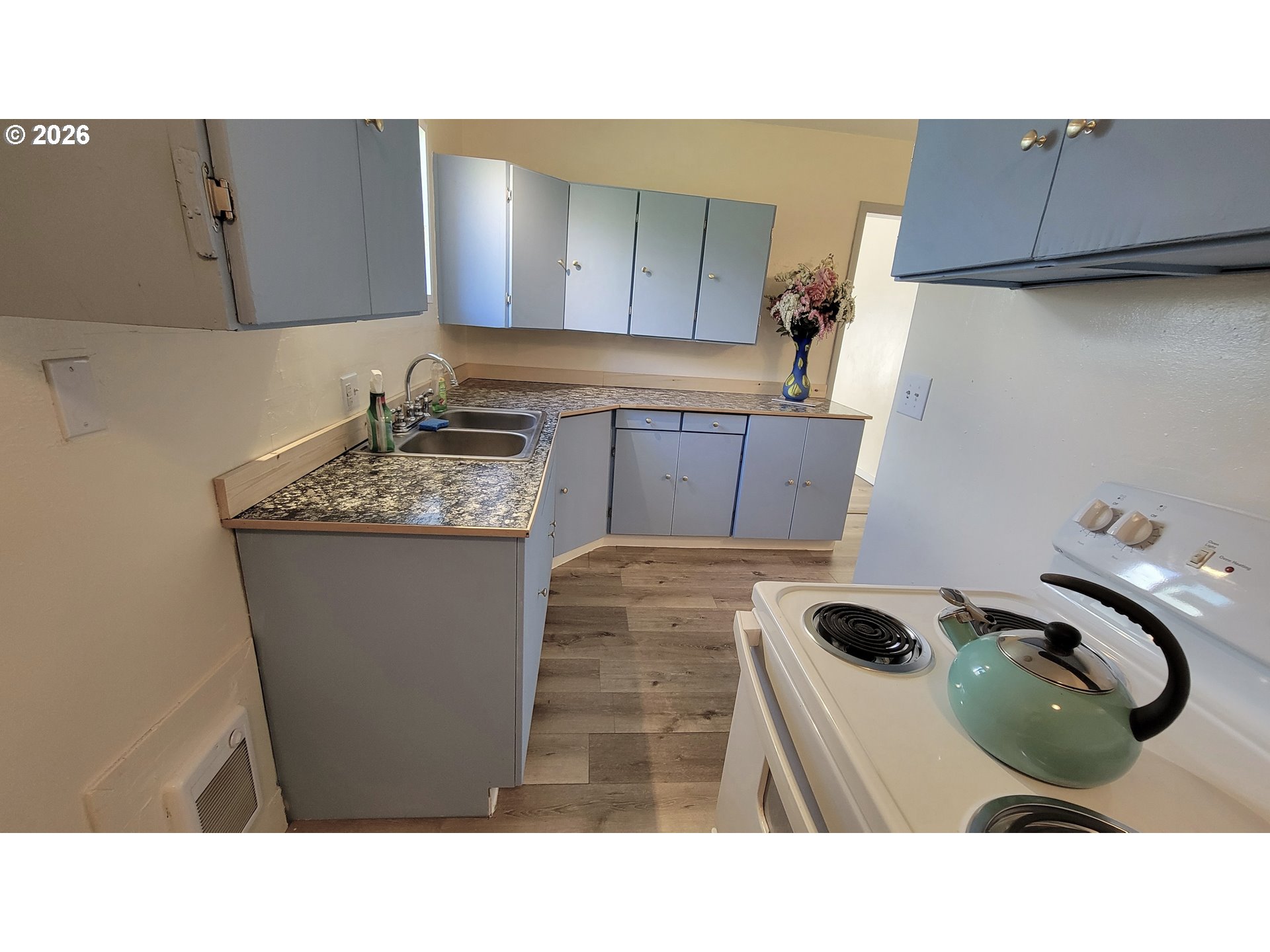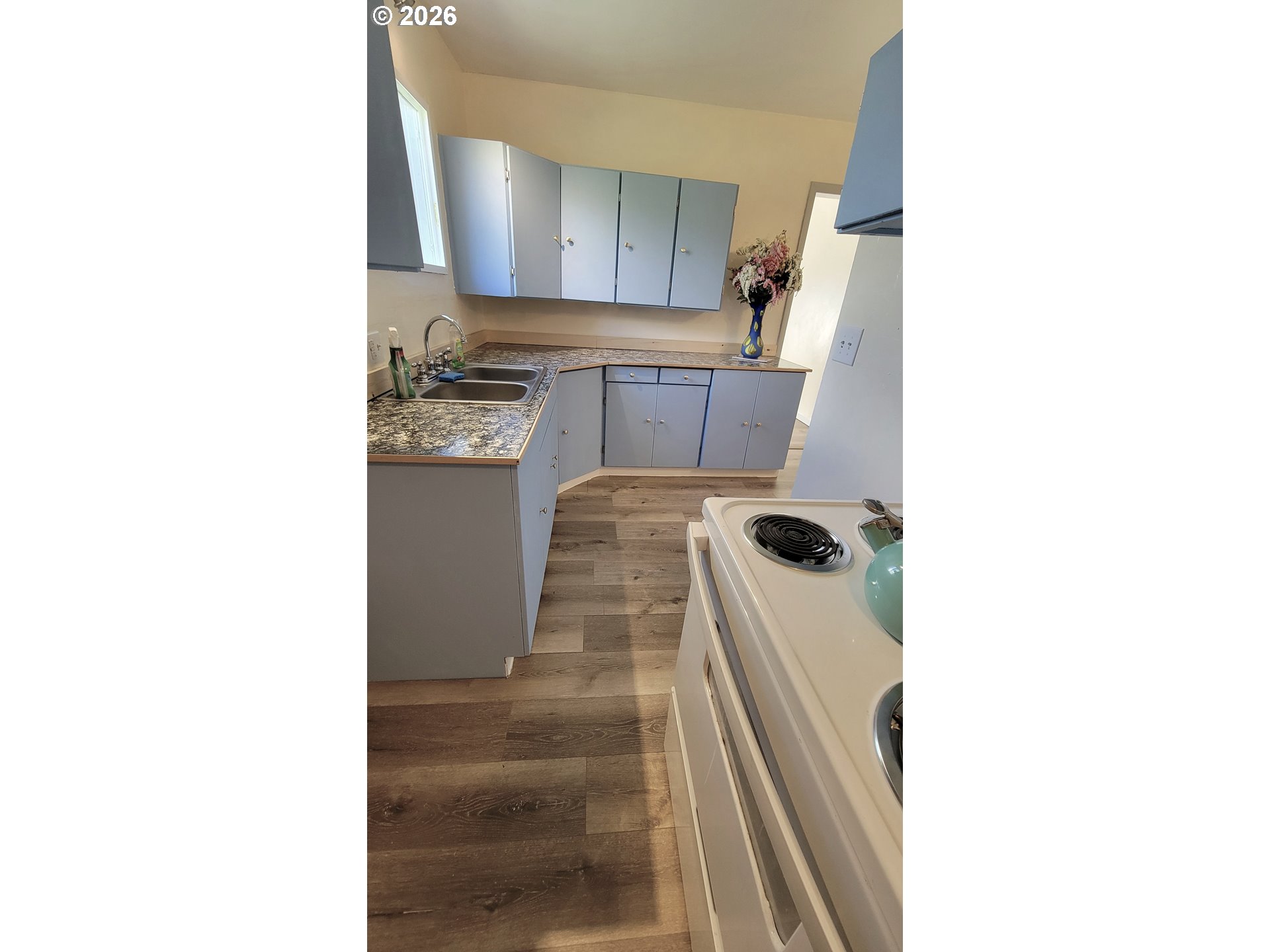 Turnkey home in the heart of North Bend, completely remodeled and move-in ready. Updates include a new roof, new siding, new beautiful Cascadia flooring, updated kitchen with added Euro-style cabinetry and a completely renovated bathroom from ceiling to subfloor. The home also features numerous NEW vinyl windows, heaters, fiberglass front and side doors, on demand new water heater and a remodeled garage that can easily serve as a man cave or workshop. Centrally located in a neighborhood just minutes from the beaches, dining and shopping. A clean and thoughtfully updated property ready for its next owner. There is possibility to acquire an additional 30 feet by 100 feet from the City of North Bend on the right side of property. Buyer to contact City of North Bend and perform due diligence about this subject if interested.