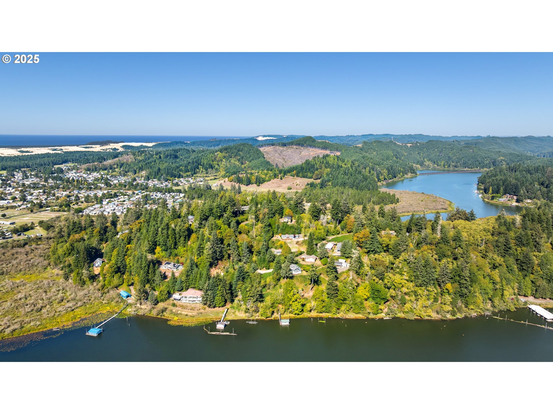 ESCAPE TO THE OREGON COAST and soak in STUNNING VIEWS of TEN MILE LAKE from this beautifully REMODELED, MODERN and COZY GETAWAY located in the desirable gated COMMUNITY of COUNCIL HILL ESTATES. Nestled among the trees on a PRIVATE 1 ACRE hilltop lot, this TURNKEY LAKESIDE RETREAT offers the perfect balance of RELAXATION and CONVENIENCE. Enjoy your morning coffee on the EXPANSIVE DECK overlooking the LAKE, gather around the BACKYARD FIRE PIT, or unwind indoors while soaking in the incredible scenery through the LARGE WINDOWS in the OPEN GREAT ROOM. The light-filled INTERIOR features an airy FLOOR PLAN, CUSTOM CABINETS, STAINLESS STEEL APPLIANCES, a COPPER FARM SINK, BUTCHER BLOCK COUNTERTOPS, a COFFEE BAR, PANTRY, TILE FLOORING, EATING BAR, and even a DEDICATED WORK SPACE. Just a short half-mile from the LAKE and nearest MARINA, and minutes from the DOWNTOWN CITY OF LAKESIDE where you’ll find a GROCERY STORE, RESTAURANTS, and LOCAL SHOPS. Located on the SOUTHERN OREGON COAST, this area enjoys a MILD YEAR-ROUND CLIMATE and supports its own thriving ECOSYSTEM. Outdoor enthusiasts will love the endless RECREATION options: BOATING, FISHING (LAKE, OCEAN & RIVER), LEGAL ATV RIDING within CITY LIMITS, OFF-ROADING through the OREGON DUNES, BEACHCOMBING, HIKING, GOLFING, MOUNTAIN BIKING on nearby TRAILS, and more. Currently operated as a successful SHORT TERM RENTAL with 4 YEARS of INCOME RECORDS from AIRBNB and VRBO. SELLING FULLY FURNISHED — a true TURNKEY PROPERTY ready to generate INCOME or enjoy as your FULL-TIME RESIDENCE. WOW — what a VIEW! MUST SEE VIDEO/VIRTUAL TOUR!