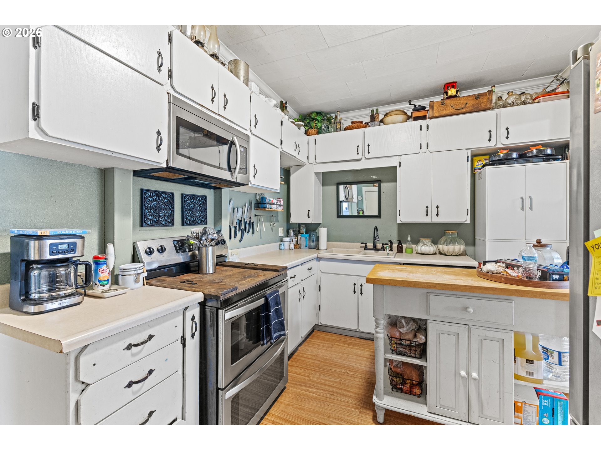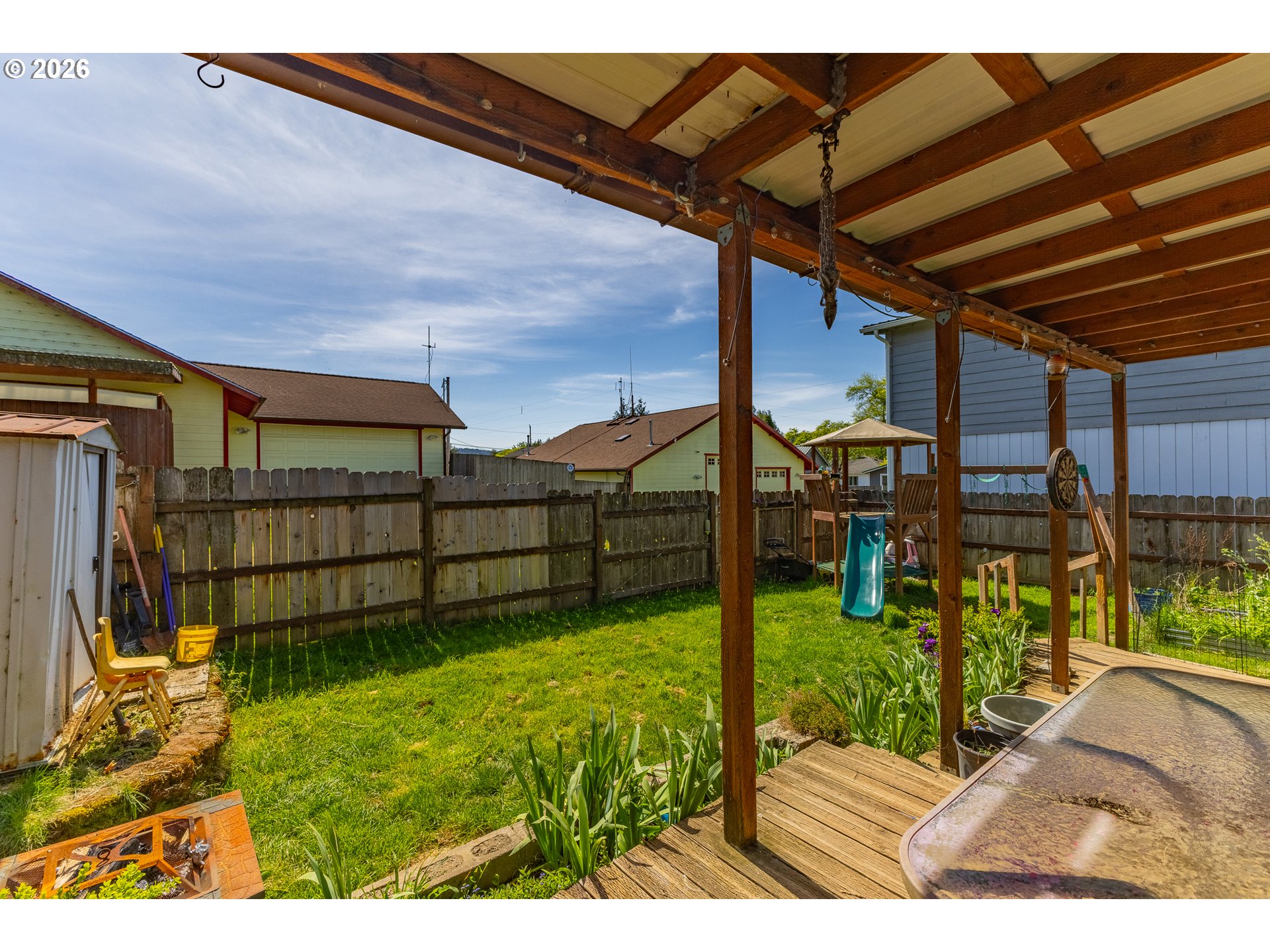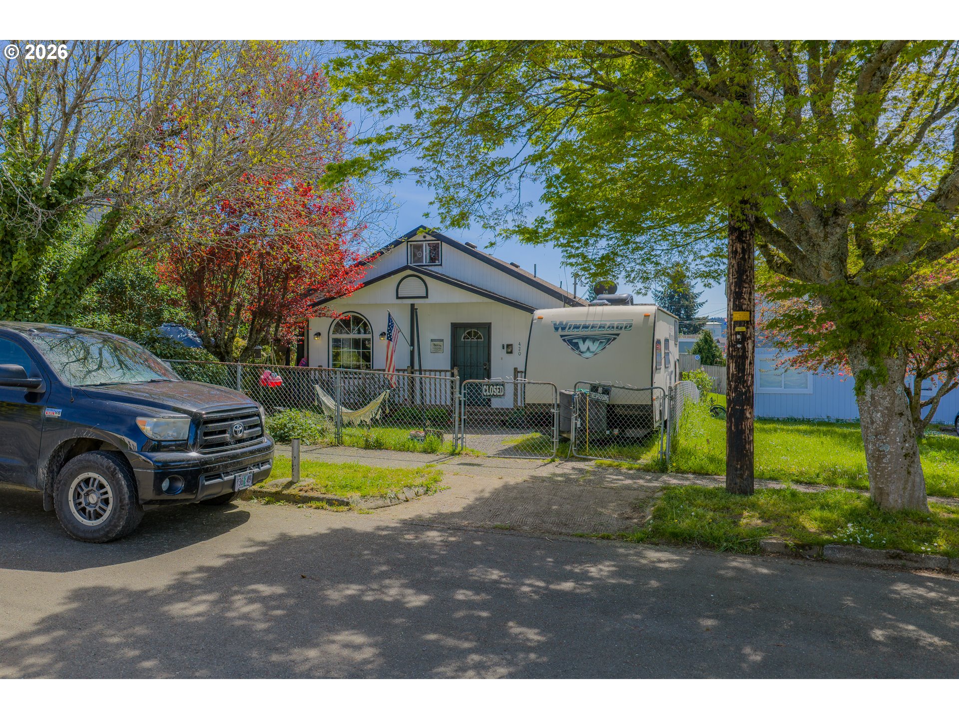 The "Walking-Side" of Myrtle Point. Great Location just 2 doors down from the Myrtle Point Library and just blocks from grocery, pharmacy, hardware stores, and restaurants. 3 bedroom/2 bath with 2 extra hobbit-sized rooms upstairs. Main level has tall ceilings, tons of kitchen storage and a back porch/covered deck connecting the fenced backyard to the house. Play structure can stay. Raised garden beds. Call for a showing today.