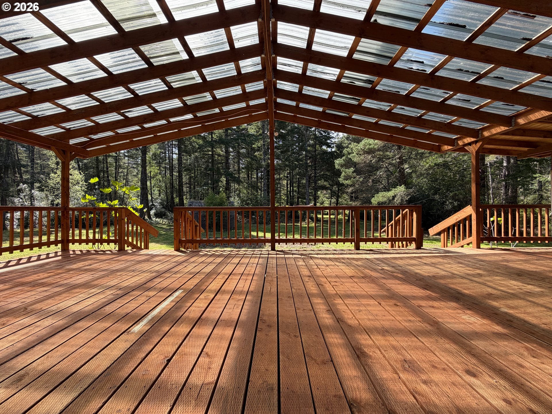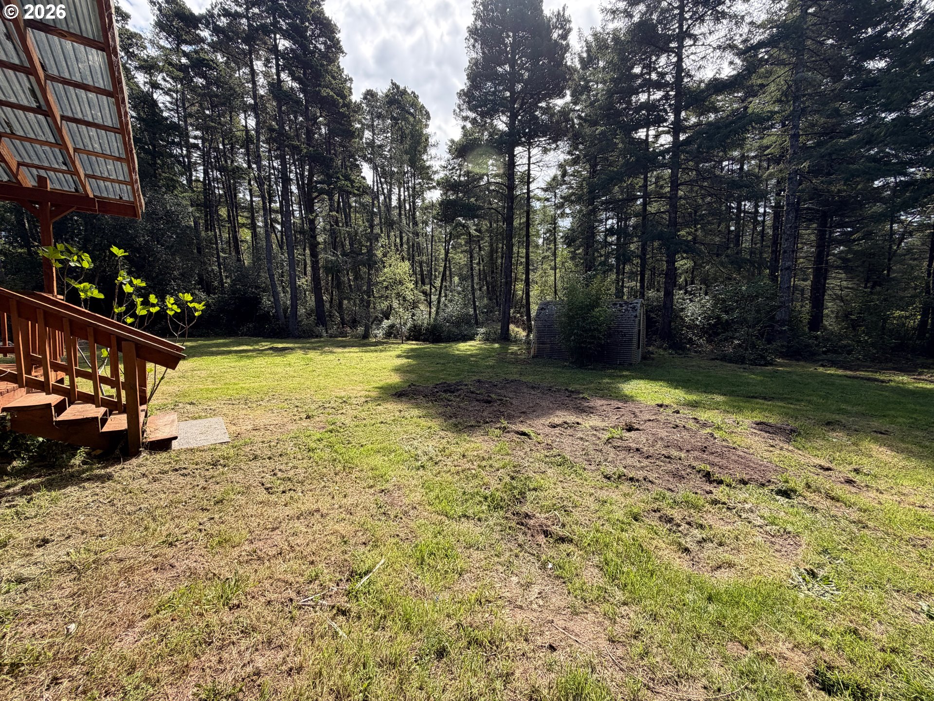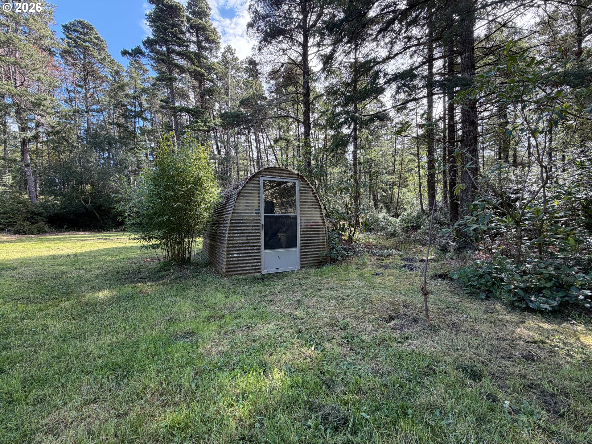 5.62 beautiful acres on the Oregon Coast awaits! This acreage includes a 1620sf manufactured home, huge south-facing covered deck, septic, and well. The detached garage fits two cars comfortably, with extra parking and concrete footings for an additional cover in the future. Private circle drive, mature trees, and room to spread out! This home and land is situated just a few minutes to Bandon, Langlois, the beach, and rivers.