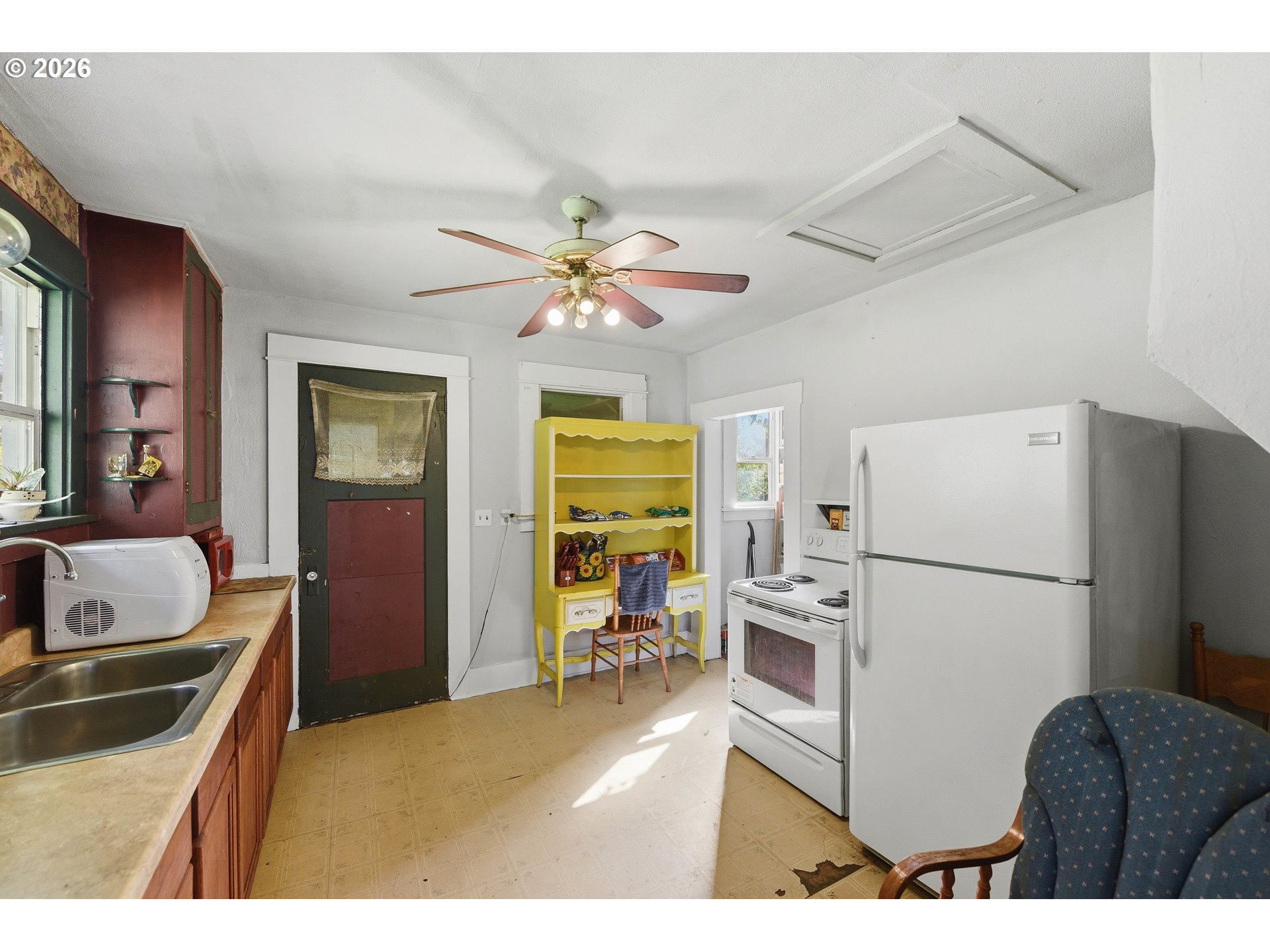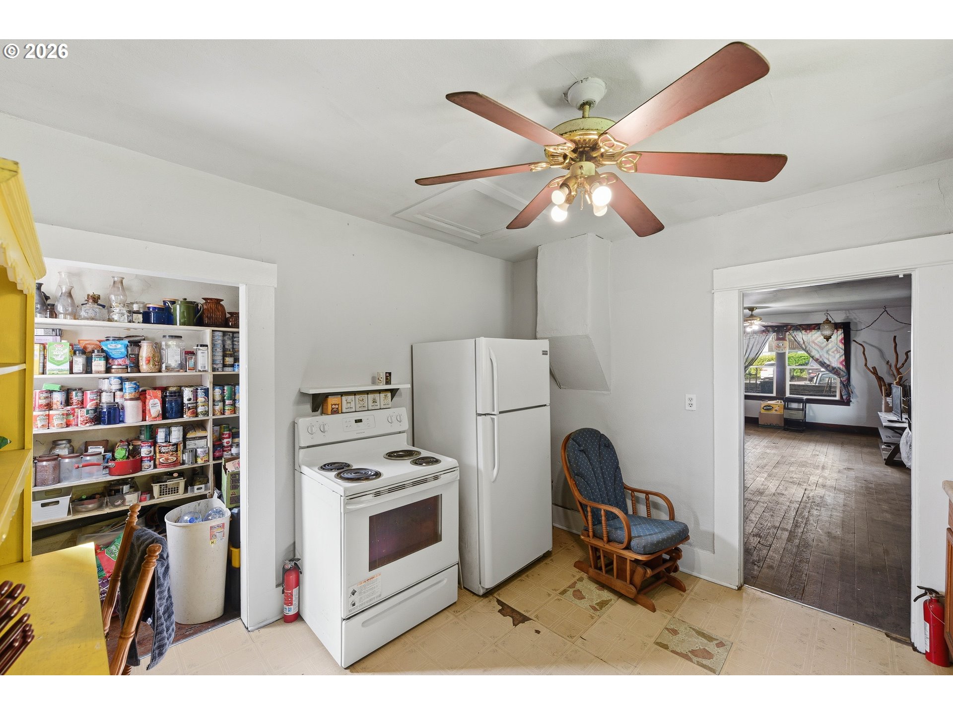 Great little bungalo in Powers, Oregon looking for new owners. Double lot, tucked back by elementary school. Needs some TLC but original charm and bones are there. Big covered porch out front, wood floors throughout, single level layout, primary bedroom has original french doors, and woodstove in the heart of the home. Kitchen has big pantry and laundry room off the back. Yard is partially fenced, flat and would be a great spot for a garage or boat/camper parking. Home is not vacant, please schedule showings. Motivated seller, bring all offers!