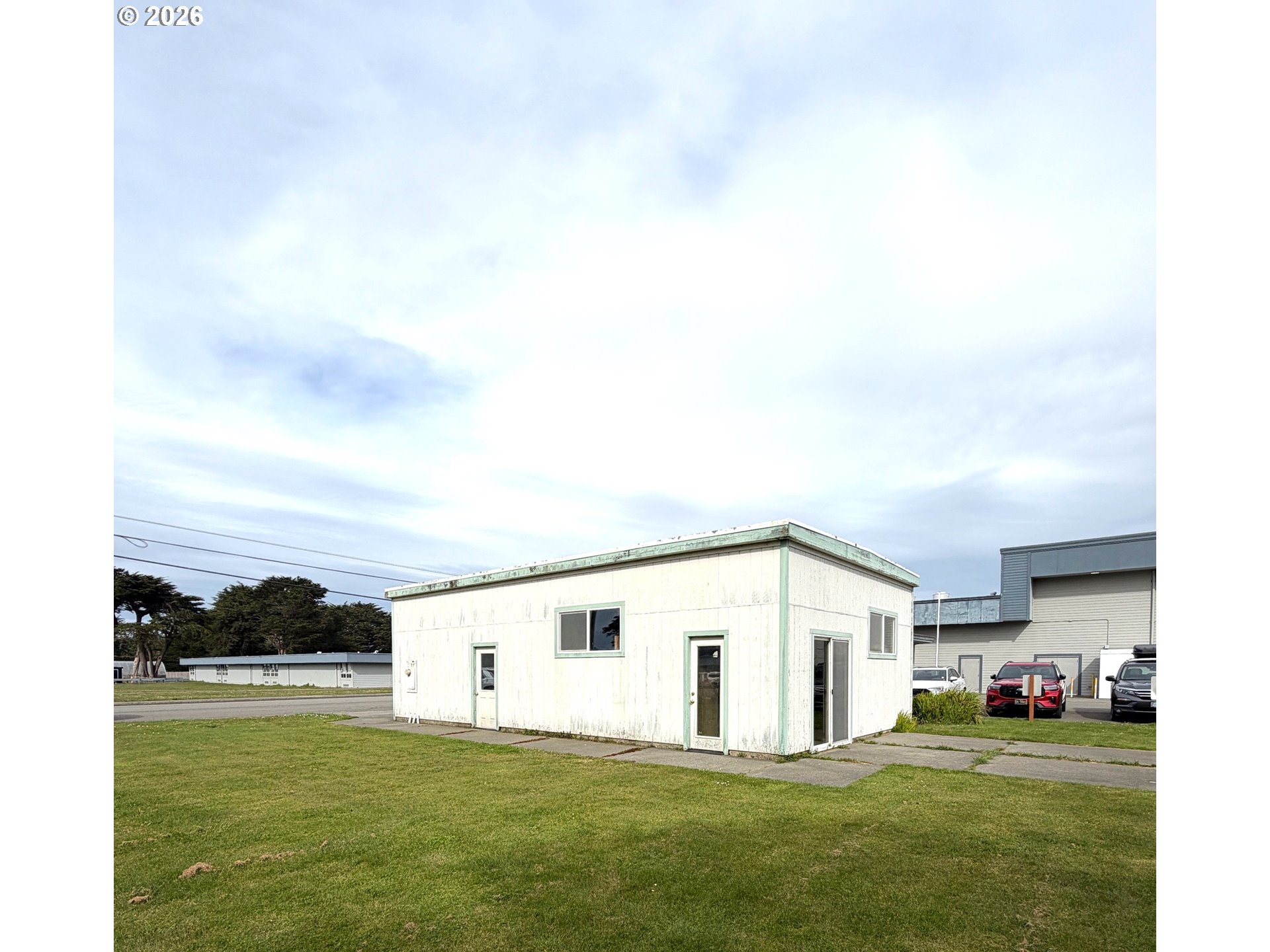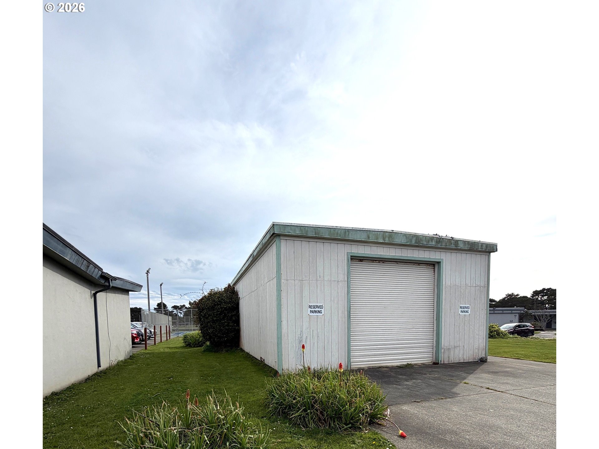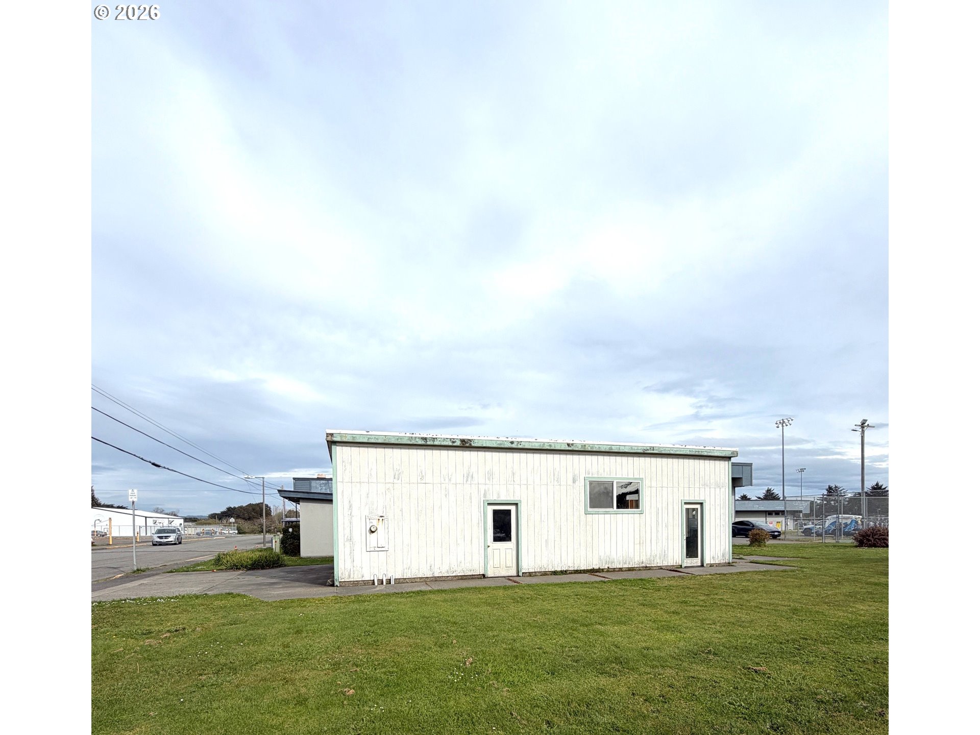 SHOP BUILDING on large lot, adjoins Bandon Schools, 9600 square feet, Tall Garage Door, Water and Sewer Available.