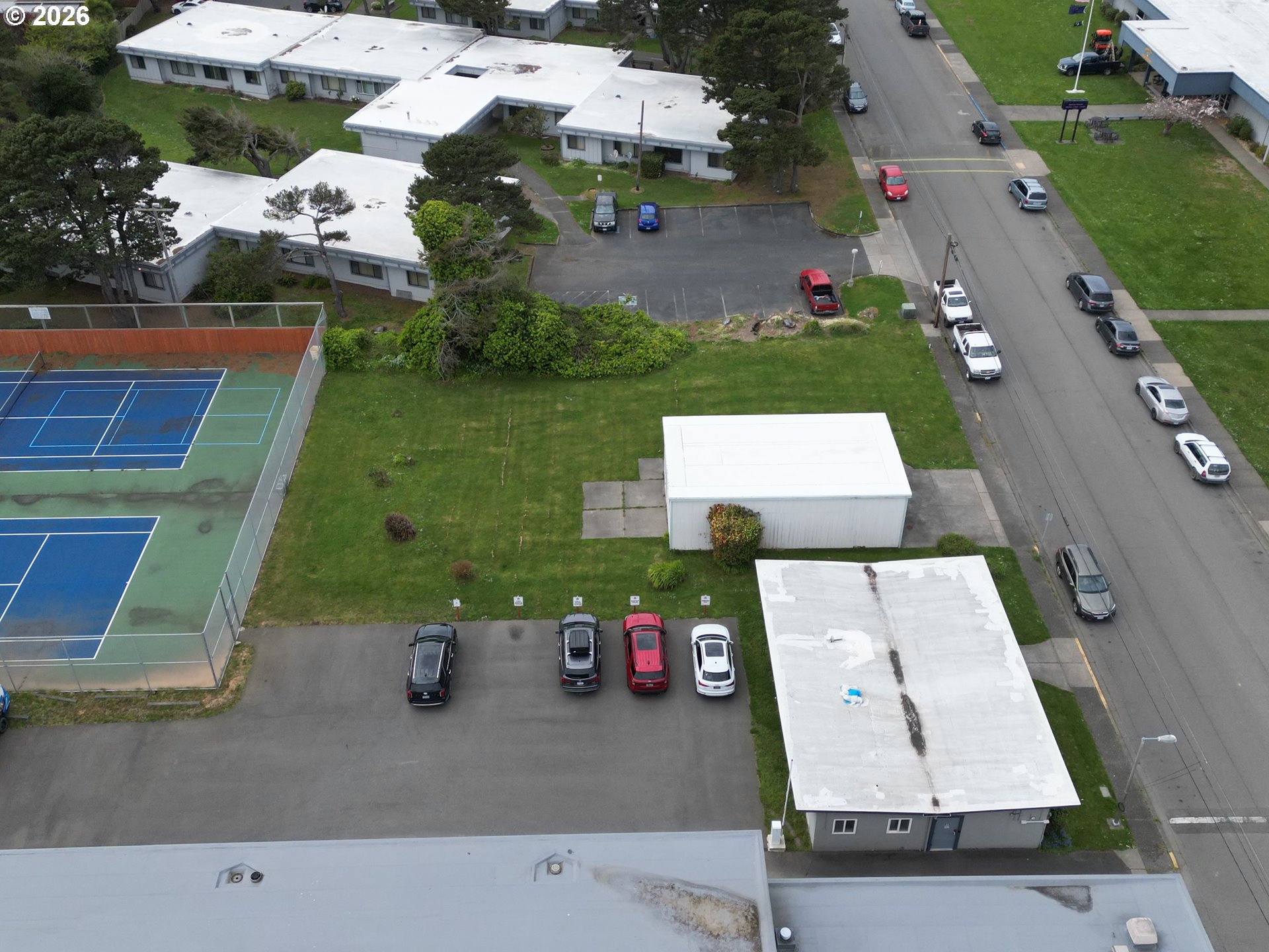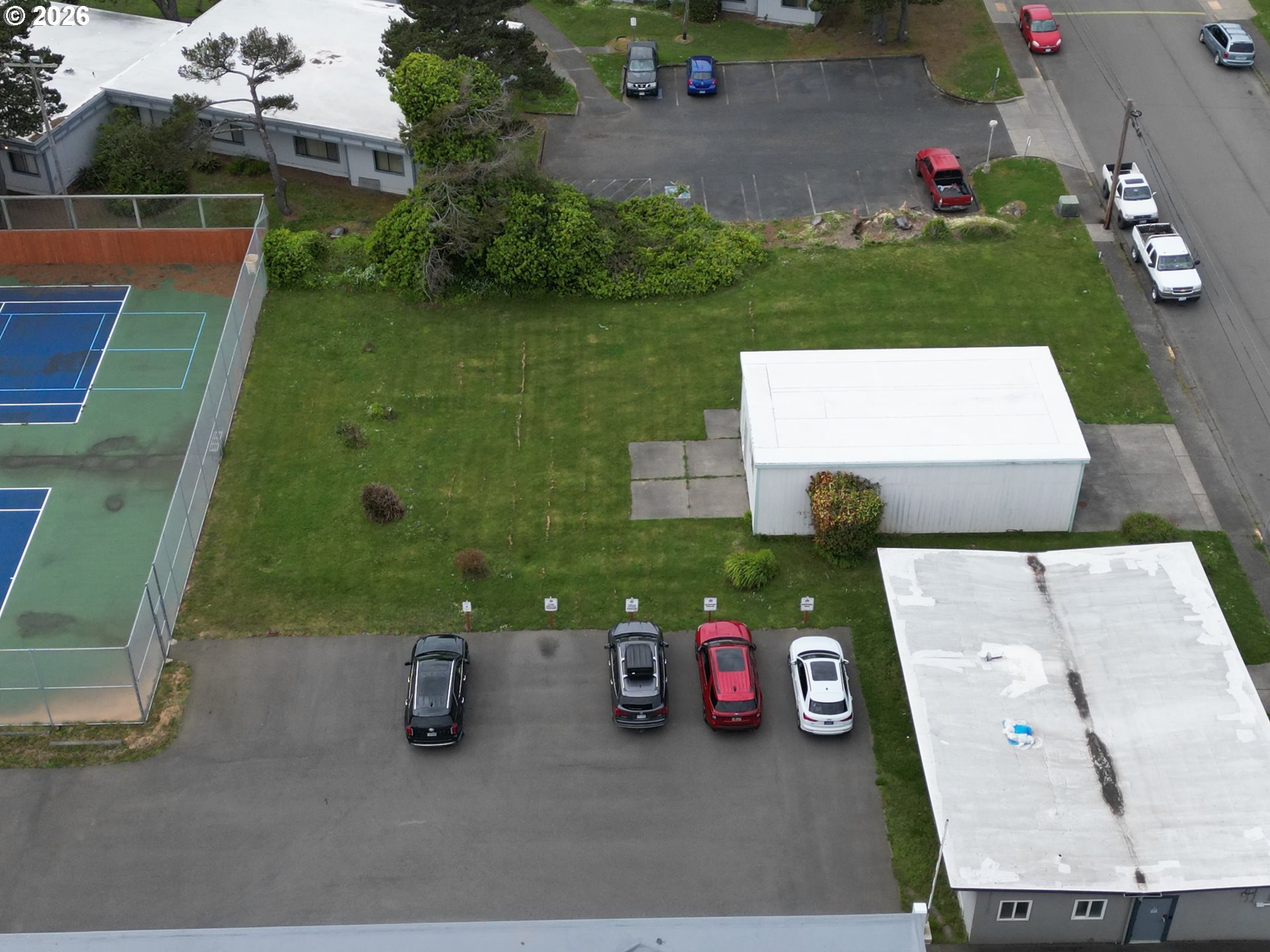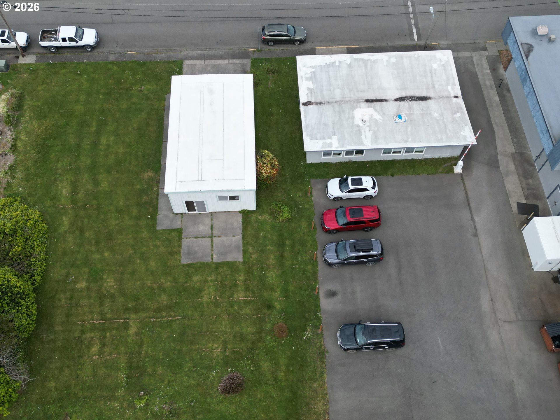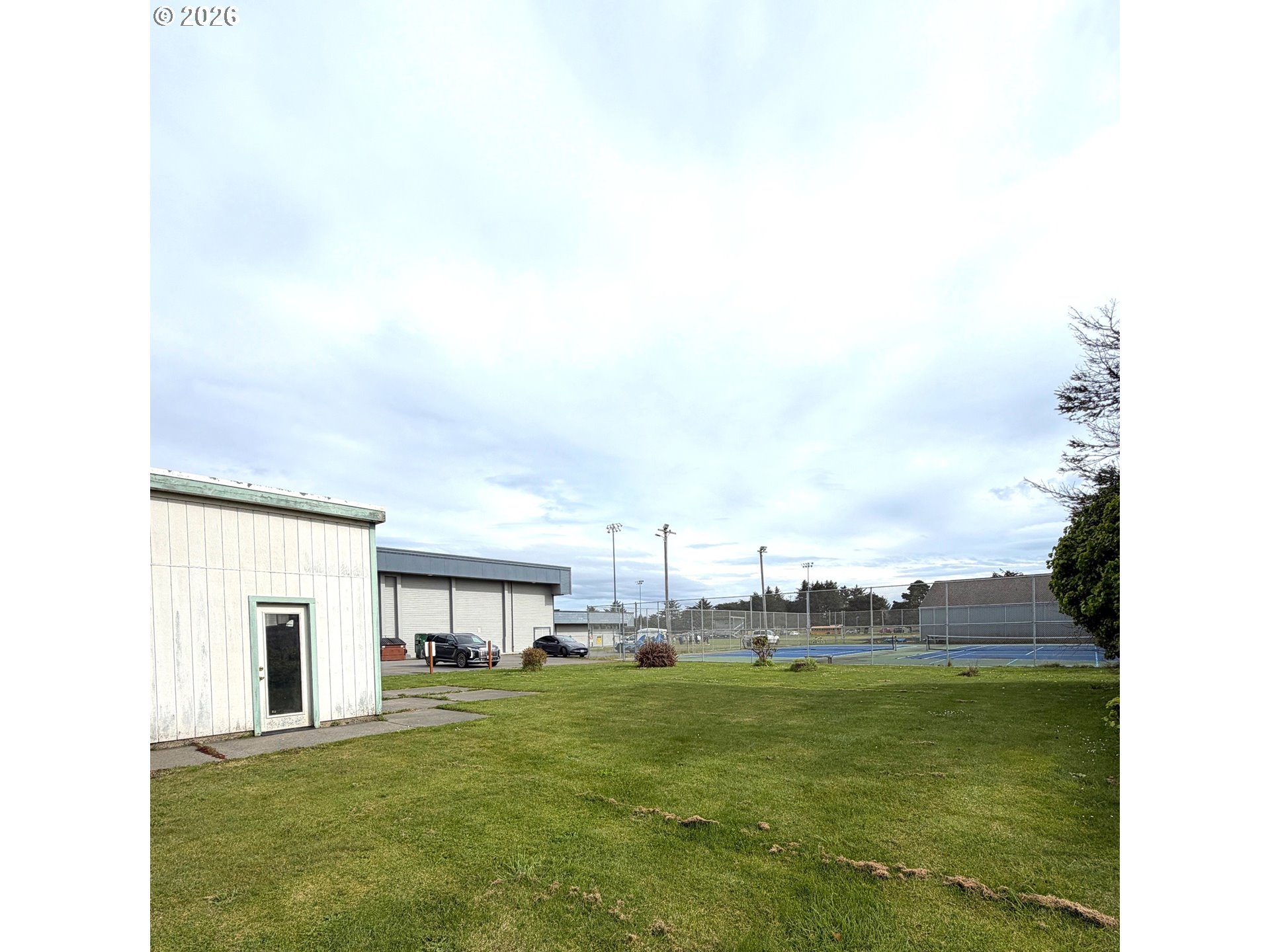 SHOP BUILDING on large lot, adjoins Bandon Schools, 9600 square feet, Tall Garage Door, Water and Sewer Available.