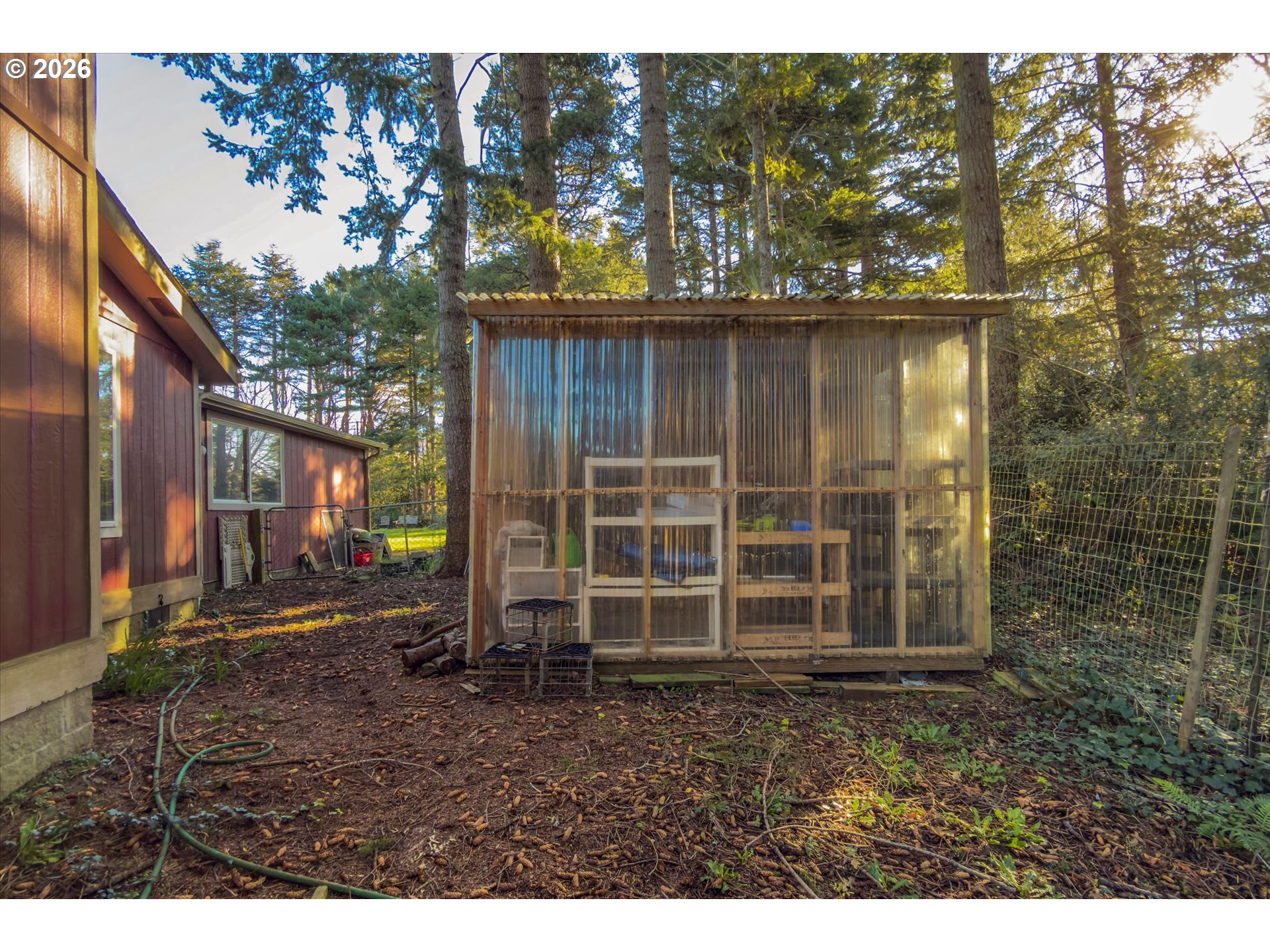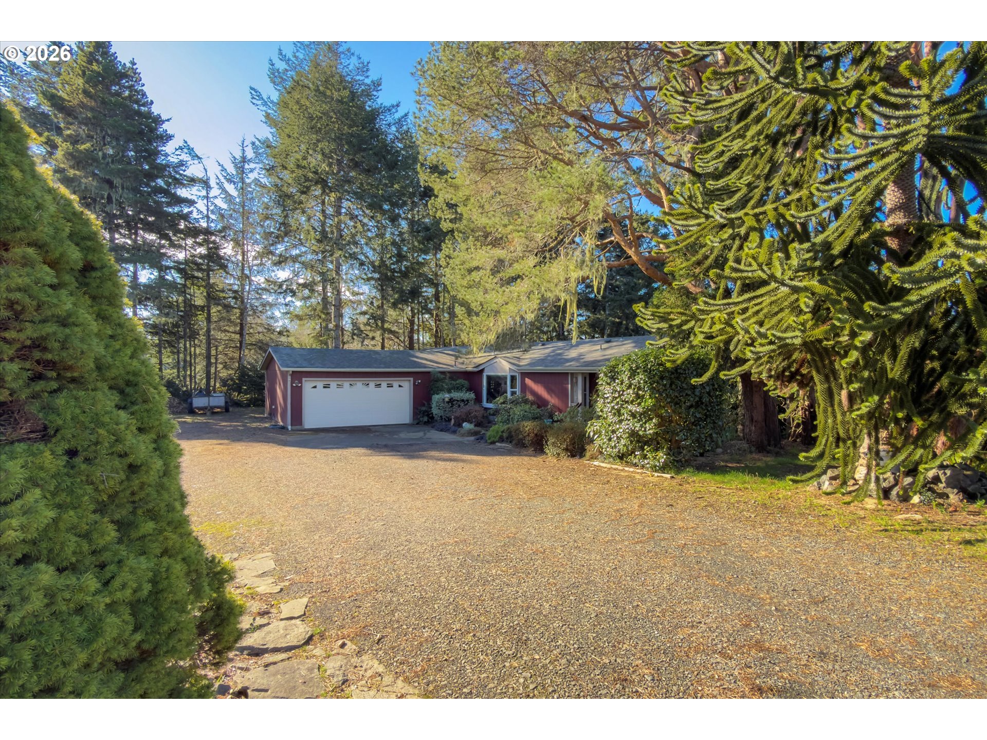SECRET PARADISE tucked away at the very end of quiet lane on the warmer east side of Bandon boasts an absolutely fantastic huge .38-acre yard with extensive west facing decks overlooking peaceful Ferry Creek Valley, beautifully landscaped with easy care flowering perennials & magnificent trees! This single level Fuqua Manufactured Home has a Great Room Floor plan with architectural interest: high coved ceilings, many large windows including a Palladian Window & a Bay Window! Home features 3 bedrooms & 2 full baths, a Master Suite with its own bath with step in shower & a walk in closet. Bedroom 2 has a slider to the decks & can open unto the Master for a deluxe suite. On the other side of the home is Bedroom 3 & another full bath. with a tub/shower. The kitchen features Frigidaire appliances, a skylight & heavenly views form the kitchen sink! Most of the views form this home feel quite private as they are just gorgeous nature. Home also has an oversized 2-car attached garage, a laundry room, a Sun Tuff Greenhouse/Shed & 4 producing fruit trees, apple & plum. Adjacent lots for sale.