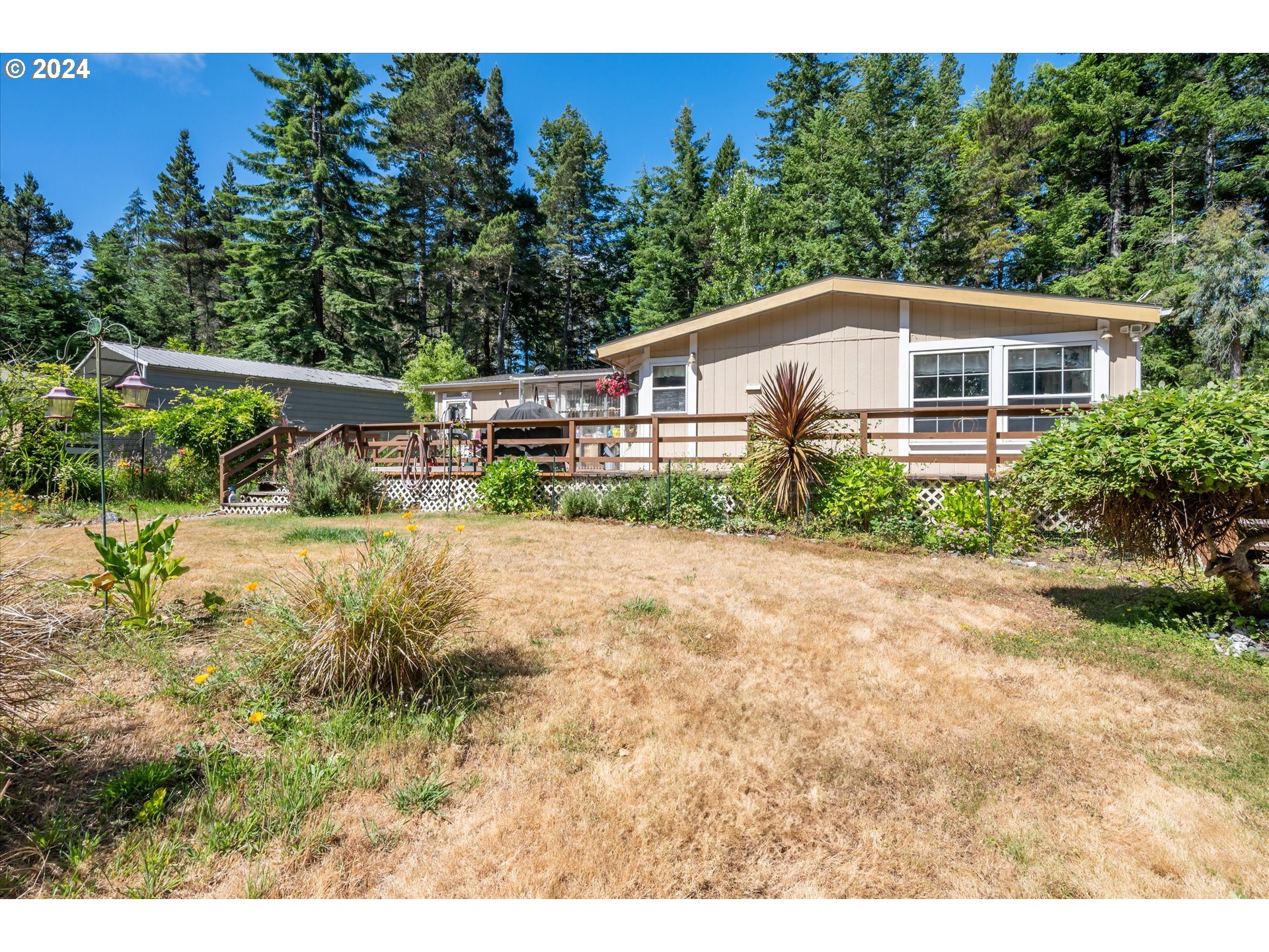 Warm and Sunny Three Bedroom two bath home on nearly 4 acres on Morrison Road east of Bandon. Three Spacious Bedrooms. Primary suite has private bath and barn door closet. Full bath and laundry room. Deck on east side of home. 12 x 24 Workshop, very private location. Propane forced air furnace. Seller's are moving.... don't hesitate!