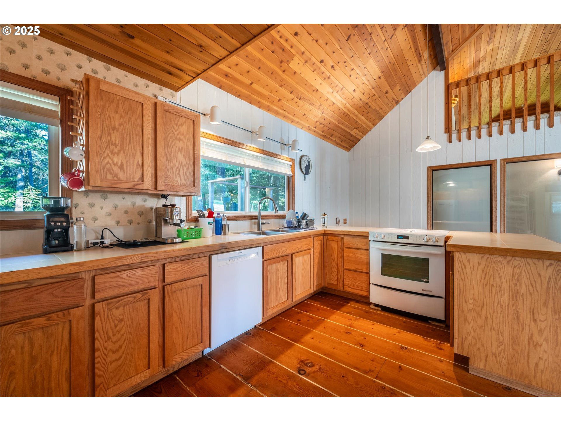 (503) 893-8874Nestled in a peaceful country setting on 5.14 acres, this welcoming 1974 home offers 2,593 square feet of comfortable living and timeless rustic charm. Thoughtful updates, warm wood finishes, and expansive spaces inside and out to relax, entertain, and enjoy. The main level features a split floor plan with a primary en suite on one side and a second bedroom and bath on the other, offering privacy for guests and family. The spacious living room showcases vaulted wood ceilings, a propane fireplace, and an open loft above that’s perfect for a reading nook, hobby area, or cozy media space.The country kitchen offers all appliances, a casual dining area with pellet stove, and a charming spiral staircase that leads to a second loft, ideal for office, studio, or play space. A generous laundry / utility room provides extra storage and everyday convenience. Outside, enjoy a sunny porch, deck with hot tub, and an additional outbuilding for extra storage or gear, all surrounded by trees and open lawn for gardening, pets, or simply soaking in the natural setting. A detached two car garage includes a bonus finished area with bath, creating excellent potential for a studio, guest retreat, or flexible workspace, while a separate tool shed or creative space sits just behind the garage. The property offers the feel of a private retreat yet keeps you within an easy drive of Bandon’s beaches, Old Town, and everyday services. Welcome to the stunning Pacific coastline, world class golf, fishing and crabbing, a mild climate, and a small town community known for its local shops, galleries, and restaurants.