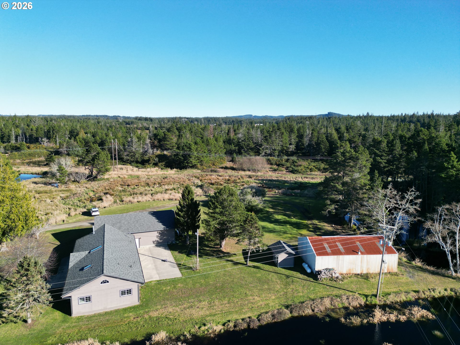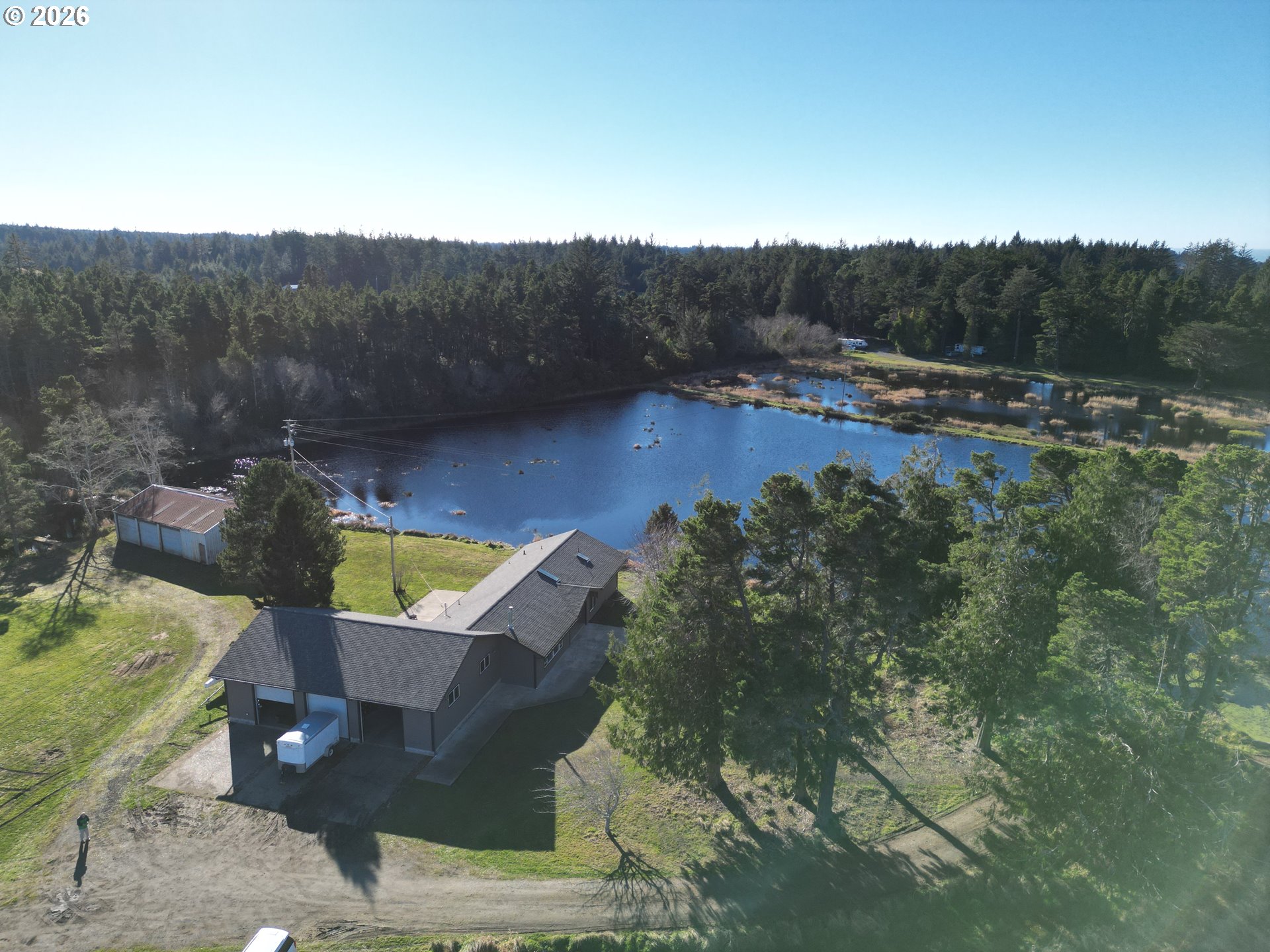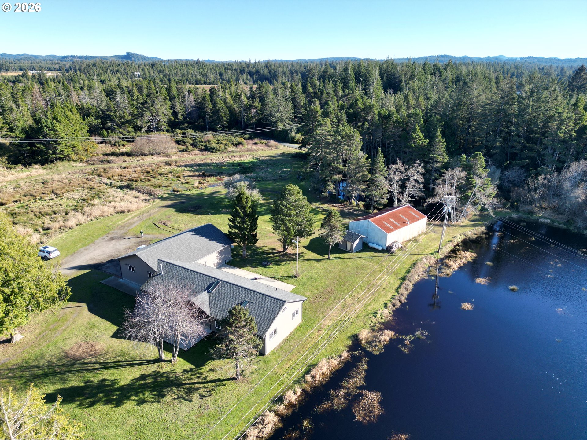 Far From the Madding Crowd 20 acre farm, just minutes to Bandon. Ponds and water galore. Intricate pumping system for former cranberry operation. Like New Custom Ranch Home. County Assessor says built in 1964, looks new. 2100 square foot contemporary interior with vaulted tongue-and-groove ceilings, recessed lighting and Rock fireplace. Top of the line appliances. Granite counters throughout. Attached 48 x 28 garage. Pump House. Detached 44 x 28 workshop/garage. This is a must see! If you like privacy and land, you will never want to leave.