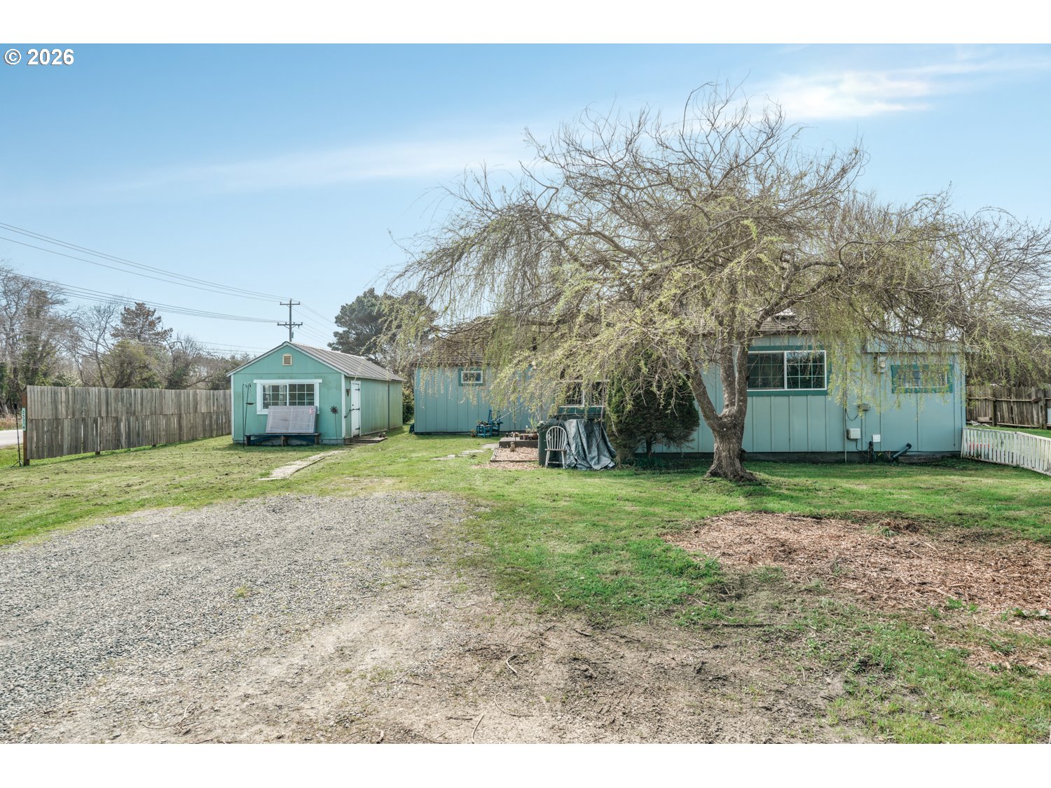 Charming 3-bedroom, 1-bath cottage set on a spacious .24-acre lot, that was recently being updated with loving care and is ready for your finishing touches! This home offers an inviting open-concept feel with recent upgrades including beautiful wood flooring, updated walls and ceilings, and improvements to electrical, plumbing, and insulation. The bright and airy living room welcomes you in, while the dining area features a cozy wood stove, perfect for relaxing evenings. The kitchen has stainless steel appliances, butcher block countertops, great prep space, and a classic country sink. Just off the kitchen, the laundry area doubles as a convenient mudroom with direct access to the yard making it ideal after gardening or outdoor projects. The remodeled bathroom includes a tub/shower combo with a deep soaking tub for added comfort. There is also a second bathroom that is partially done and it is off of the primary bedroom. Outside, you'll find two versatile outbuildings: a 13x13 structure previously used for a business that has electrical and would be perfect for guest quarters, a home office, or potential ADU, and an 18x11 with power that is being used as a workshop. The large fenced backyard offers mature shade trees and plenty of room for gardening, entertaining, or play. Located just a few blocks from Old Town Bandon, enjoy easy access to shopping, dining, the River Boat Basin, and beautiful Bandon Beach. Plus, you're only minutes from Southern Coos Hospital. A wonderful opportunity to create your dream home in a fantastic location!
