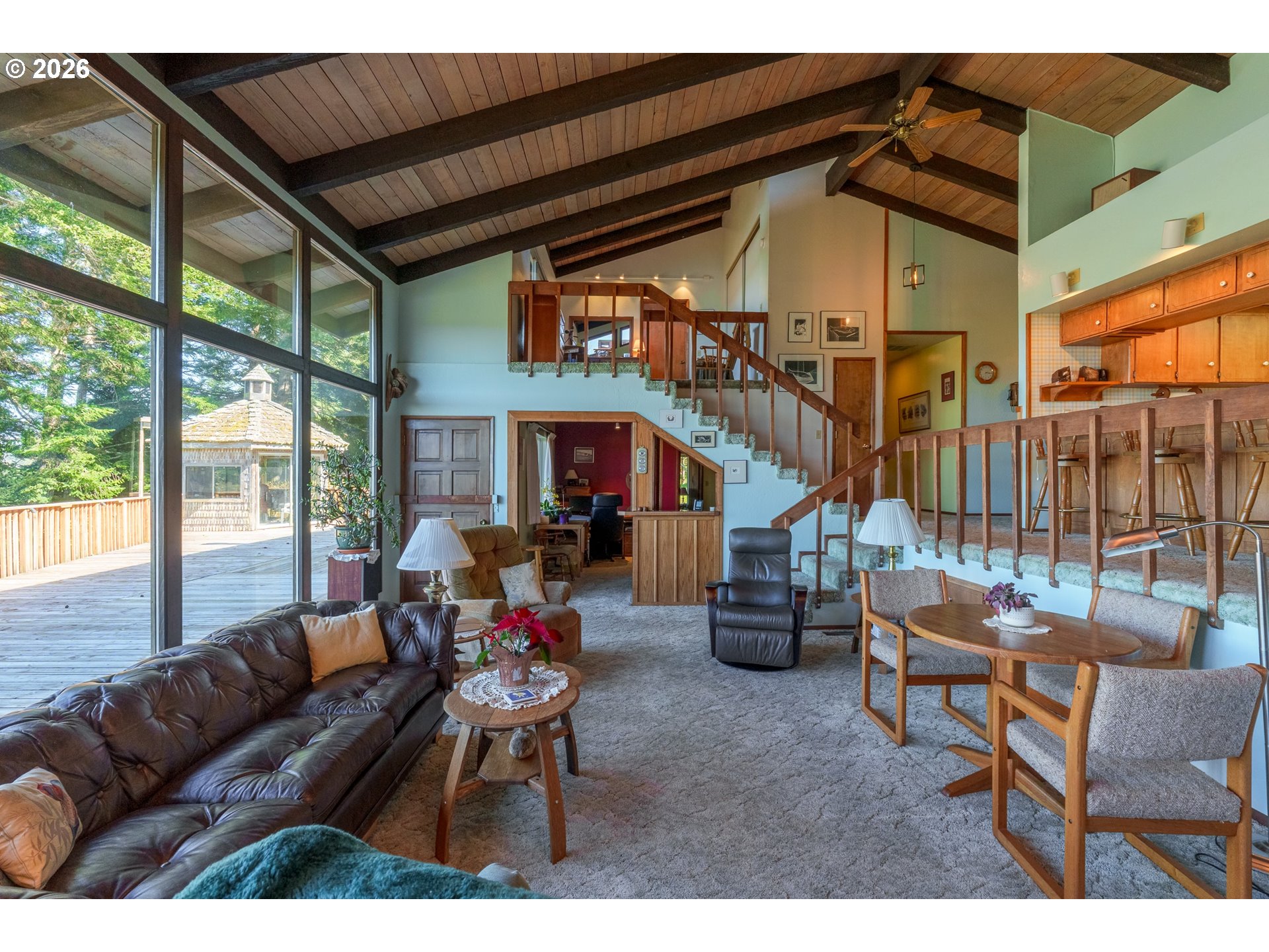 Imagine 10.4 Acres on a bluff above the Coquille River, including 713 feet of River Frontage, with a Main Home, plus a Cabin by the River, a Dock, Two Shops, and additional land above the river suitable for building. Most of the land including the location of the main home is high above the river, park-like in nature with terrific views of the river and Marine Wildlife Refuge on the north bank. The main living area of the home is spacious with an open layout and tall windows to capture the views, with 3,099 sq ft, 3BDR/3BA, on split levels, with an office, and sauna. More photos will follow soon. The cabin, built in 1940, has a great location down by the river and a newer roof, but is a fixer inside. There’s a catwalk leading to the dock. There is one shop up by the home and another down by the cabin. There are raised beds and a greenhouse, as well as a number of fixer small buildings arranged around the property. There’s even a small building beside the main house housing a wood fired pizza oven. And it's all less than ten minutes to Bandon's Old Town galleries, restaurants, terrific beaches and Bandon Dunes Golf Resort. Offerings like this, on the river and with so much opportunity, are rare. Come see it today.