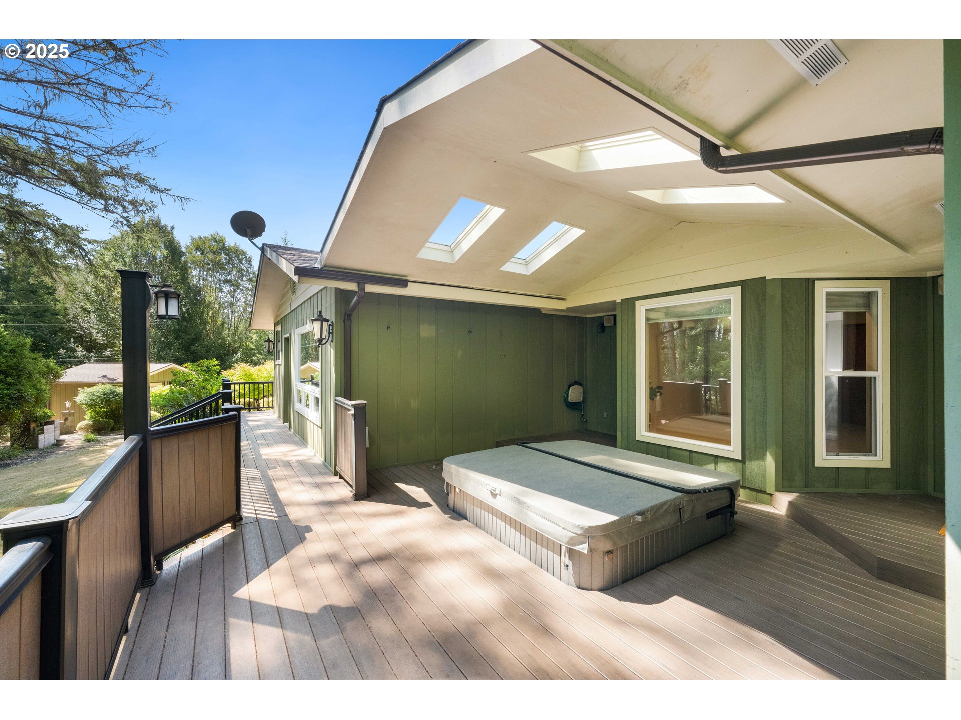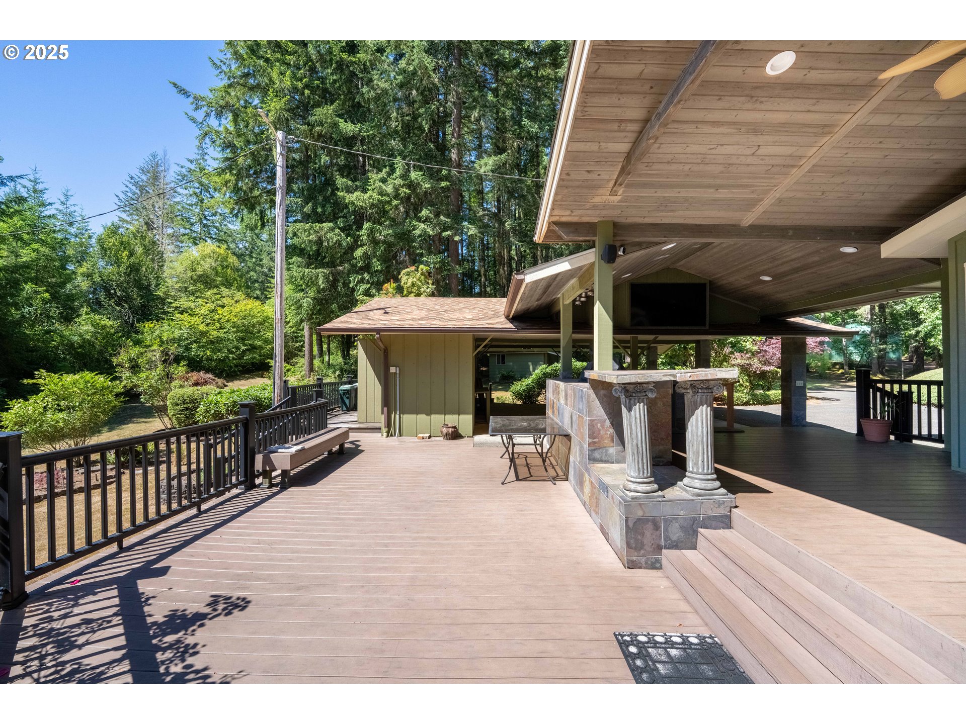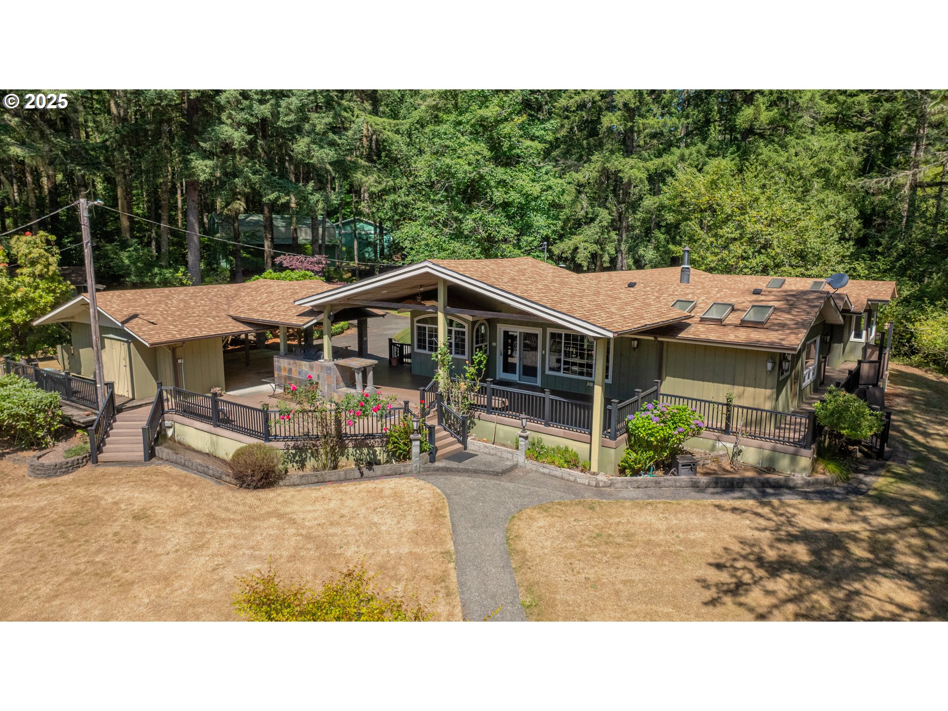 (503) 893-8874Irresistible Forest Paradise – Luxury, Privacy & the Ultimate Outdoor Living. Tucked away on 5.12 forested acres, this extraordinary single-level 2,591 sqft retreat blends high-end living with the magic of nature. Just minutes from the coast, sand dunes, hiking, and fishing, this private sanctuary offers a life of luxury, peace, and endless adventure. Inside, you'll find a chef's dream kitchen—Sub-Zero fridge, 6-burner gas stove, granite countertops, prep island with second sink, eat-in bar, and seamless flow to living and family rooms with wood-burning fireplace, loft space, and more. Vaulted ceilings and picture windows bring the forest in. A heat pump ensures year-round comfort with efficient heating and A/C.The expansive primary suite is pure indulgence: private deck access to a built-in hot tub, and a spa-like ensuite with soaking tub, dual-head tile shower, double vanities, and walk-in closet. Two guest bedrooms and a stylish second bath complete the layout.Step outside to your entertainer’s dream: a spacious covered deck with fans, built-in Traeger BBQ, gas burner, sink, lighting, TV, outdoor speakers, and room to gather year-round. From there, access the lower open deck, level grassy yard with underground sprinklers, and a charming cedar-finished hobby building—heated, carpeted, and perfect as a studio, retreat, or creative space. A second shed/hobby room and walking trails wind through your own private woodland. You’ll love the enormous 1,200 sqft shop with sliding doors, the separate 960 sqft RV garage with 14’ electric roll-up door, power, water, and finished storage, a double carport with storage, and plenty of additional parking, so bring your toys! Paved driveway, privacy, and the perfect mix of forest magic and refined comfort. Live where others dream to vacation.