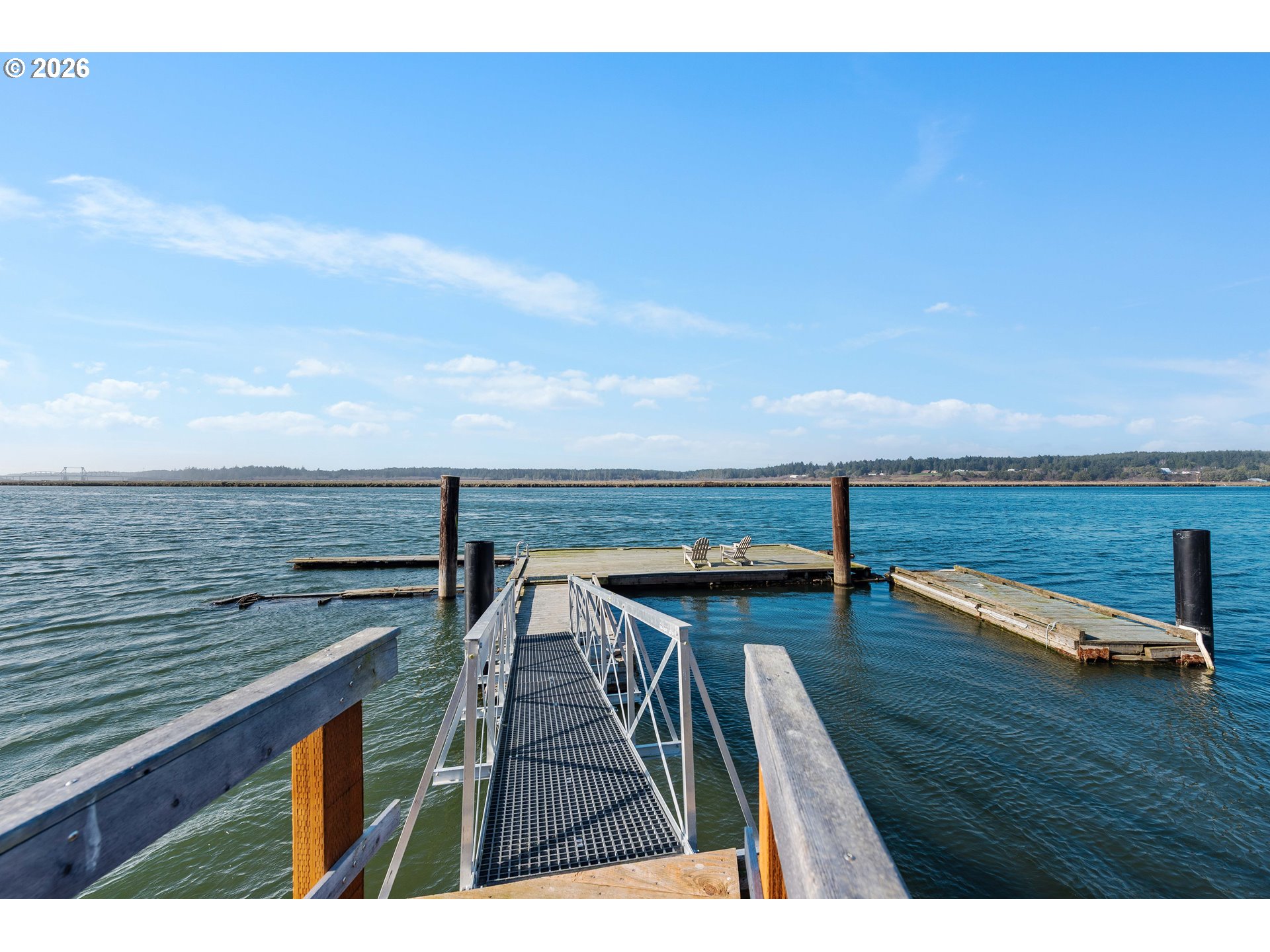 Victorian farmhouse Coquille Riverfront home with a renovated boathouse and private dock, offering historic character, privacy, and waterfront living. Built in 1895, this 5 bedroom, 4.5 bath home features a primary suite on the main level plus upstairs 3 additional ensuite bedrooms, ideal for hosting guests or creating private retreat spaces. At approximately 2,683 sq ft, the main home showcases original wood floors, a spacious farmhouse-style kitchen with breakfast bar, and sweeping river views from the kitchen, dining, and living areas. Fenced areas provide privacy, a space for pets or gardens and the fruit trees add to the sense of a homestead riverside retreat. The home is directly across the river from a designated national wildlife marsh to ensure your natural habitat view will be preserved . Step outside the kitchen or front door to a covered porch and a large deck overlooking the Coquille River, perfect for entertaining, outdoor dining, or simply watching the river drift by. The 720 sq ft renovated boathouse adds highly versatile space with a bright riverfront studio and separate office area, opening up possibilities for creative work, guest overflow, hobby space, or a quiet home workspace. A recently entirely rebuilt private dock extends your lifestyle directly onto the water, whether you enjoy boating, paddling, fishing, or just sitting at the river’s edge as the tide moves in and out of the estuary. Added comforts include a sauna and EV charger, blending modern convenience with classic Victorian charm in a truly one of a kind riverfront property.