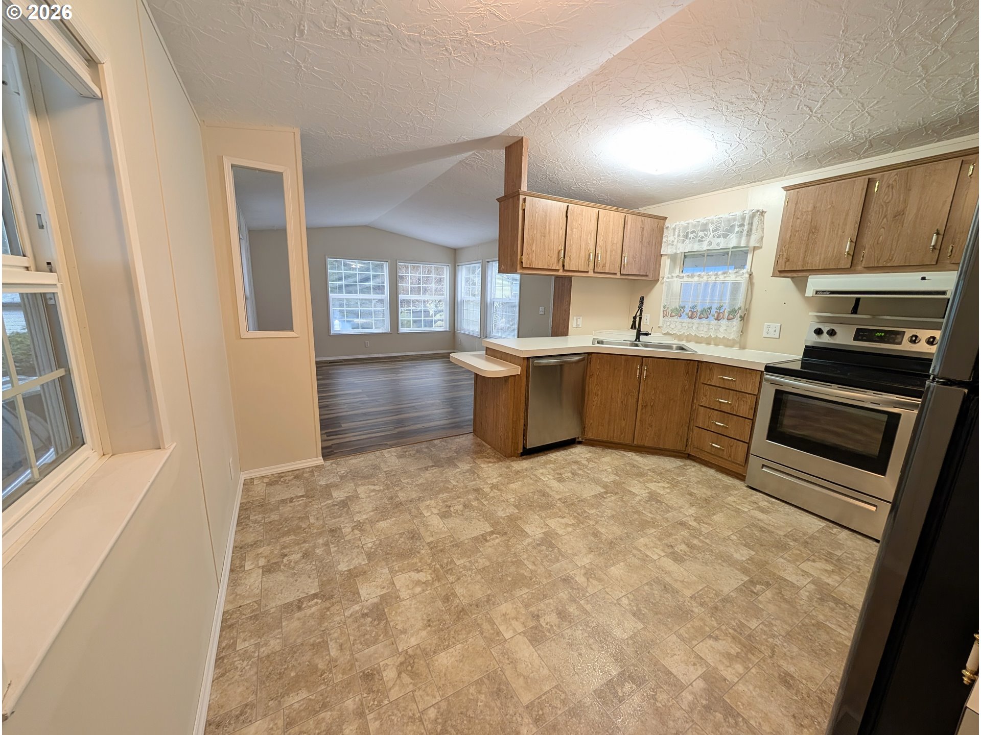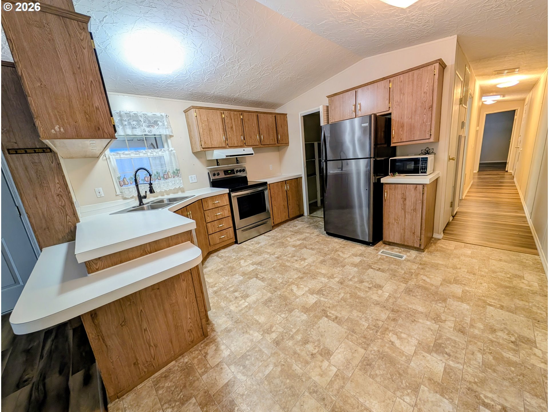 Welcome to this cozy home offering 924 sq. ft. of comfortable living space in a desirable 55+ park. This 2-bedroom, 1-bath home features large windows that fill the space with natural light, creating a warm and airy feel throughout.The warm open living space flows into the kitchen which includes a combined laundry room and pantry for added storage and convenience. Enjoy covered parking and a fenced yard — perfect for your pet. New heat pump 11/2024. Low-maintenance living makes this home an excellent option for those looking to downsize and enjoy a relaxed lifestyle. Must be park approved. Space rent is $532/month without utilities. Schedule your showing today!