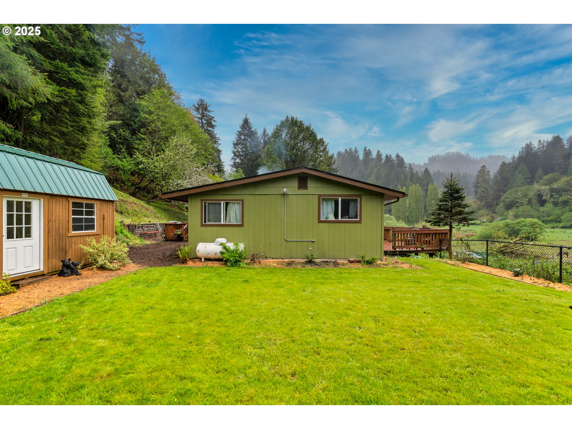 Nestled on over 2 acres of private, wooded land, this well-maintained country home offers peaceful valley views and a serene natural setting. The home features two spacious bedrooms (with potential for a third), a large bathroom with jetted tub and walk-in shower, and a bright kitchen with oak cabinets and ample storage. Enjoy outdoor living on two decks, surrounded by fruit trees—including apple, cherry, nectarine, and kiwi—and landscaped gardens nourished by a spring-fed water source. Recent upgrades include the detached 10x20 workshop, landscaping, fencing, and newer appliances. Additional highlights include raised garden beds, a fenced backyard, gated rear deck, wood stove and more. VA financing eligible.