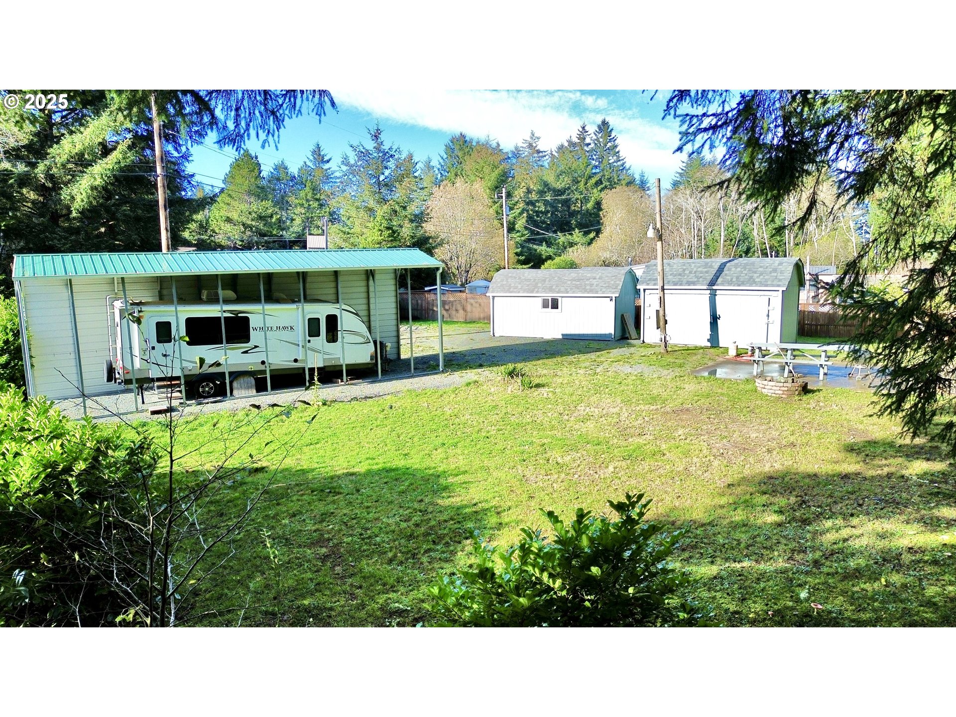 Your Southern Oregon Coast getaway awaits! This spacious, level lot is the perfect basecamp for outdoor adventure, just minutes from the beach, world-class Whiskey Run mountain biking, the Oregon Dunes for ATVs, legendary Bandon golf, and all the fishing, clamming, and crabbing you can handle at the Charleston Harbor. When winter rolls in, grab a front-row seat and storm watch the wild Pacific waves, an unforgettable experience.The property is equipped with an RV hookup, septic, power, and two storage sheds, one containing a 1,500-gallon cistern that can be filled by a local water delivery service. The lush, green yard is partially fenced with two gated entrances, offering room for pets, gatherings, and coastal fun. Enjoy evenings around the picnic area and fire pit set along a concrete slab, set up for barbecues and making lifelong memories.This splendid opportunity in a prime location is ready to use, ready to enjoy, and ready for your next adventure on the stunning Southern Oregon Coast.