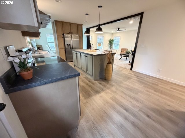 Discover peaceful coastal living in this new 3-bd 2-bath Golden West home, perfectly situated on a spacious 50x100 ft lot. tucked away in a quiet, established neighborhood, on a dead end road. The home is nestled between mature Fir and Spruce trees that give it a serene rustic setting. This property offers the ideal balance of privacy and convenience. The Home is on a 6 inch solid concrete slab reinforced with rebar including a structural Ledge Stone style foundation installed. This new home includes a cozy front porch, built in blinds, Samsung stainless steel appliance package (refrigerator w/ water & ice dispenser, cook stove and dishwasher). Ceiling fans, garbage disposal, recessed lighting. Kitchen island w/ pendant lights and master suite. It also has a perfect combination of Modern and Rustic accents involving an accent wall with a wood faux beam in the living room and a rustic barn door to the utility room. The living room and bedrooms have wall to wall carpet for comfort and quality wood grained continuous vinyl flooring from the dinning room through the kitchen and hallway along with both bathrooms. This beautiful Golden West home was built for comfort, functionality and style! Enjoy being approximately 10 minutes from beautiful beaches, scenic parks, local dining, shopping, and essential healthcare services. Whether you're looking for a full-time residence or a relaxing retreat, this home delivers!