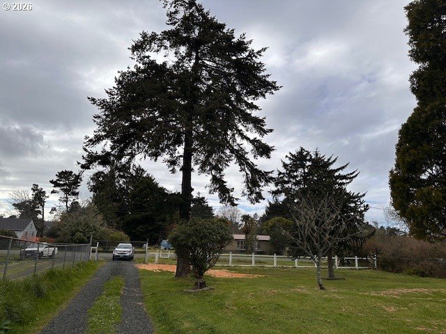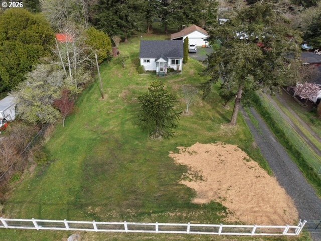 Nearly one-acre level setting with a charming white fence entry and gate. The 2-bedroom, 1-bath home includes a bonus room upstairs and is ready for your personal updates and finishing touches. Fruit trees and a well-established 30-year-old Monkey Pod tree highlight the yard, with mature trees along the back creating a quiet, natural backdrop. A large detached garage with carport provides excellent space, and there is plenty of room for a shop, RV parking, or all your toys. Great proximity to the beach's or town.