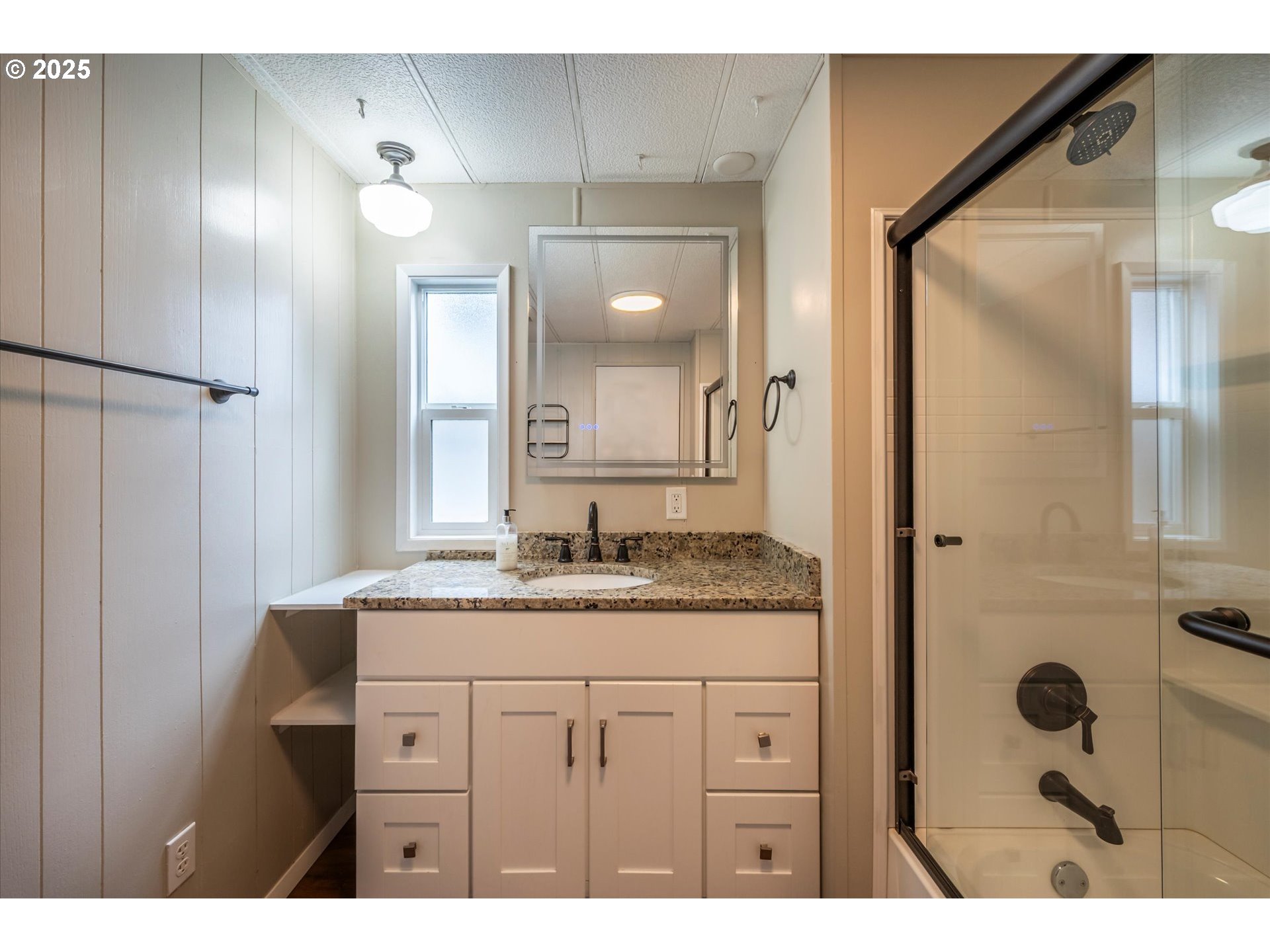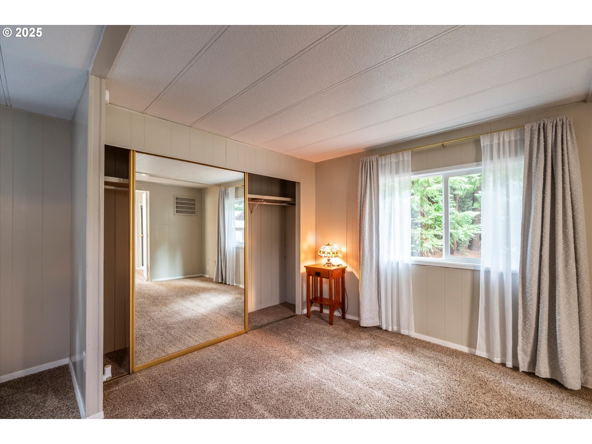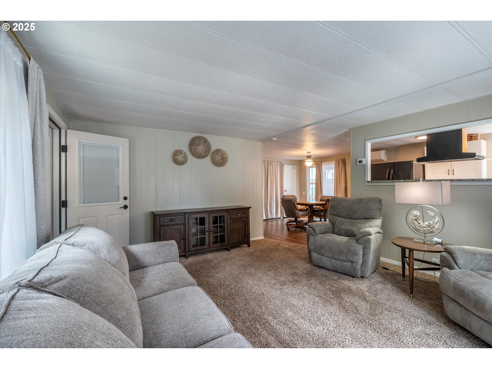 Welcome to your new retreat nestled in the serene and vibrant 55+ community of Coos Bay, OR. This beautifully updated 2-bedroom, 2-bathroom home offers the perfect blend of comfort and style. Step inside to find an inviting living space featuring modern finishes, including elegant granite countertops in both the kitchen and bathrooms. The well-appointed kitchen boasts Frigidaire Gallery appliances, making meal prep a delight. Enjoy the cozy ambiance created by the carpet and vinyl flooring throughout the home.The spacious layout includes lighted bathroom mirrors for added convenience and an enclosed covered patio deck, perfect for enjoying your morning coffee or evening relaxation while taking in the tranquil surroundings. There are scenic walking trails and ponds within the park, this home is perfect for nature enthusiasts. As an added bonus, this property comes furnished with a sleeper sofa, two La-Z-Boy recliners (one powered), a TV sideboard, a queen storage bed frame, a dining table with chairs, and a washer and dryer—making it move-in ready! Recent upgrades include a new roof, gutters, and furnace all installed in 2022, as well as a mini-split system added in 2023 and R30 insulation installed under the home in 2023, ensuring your comfort year-round.