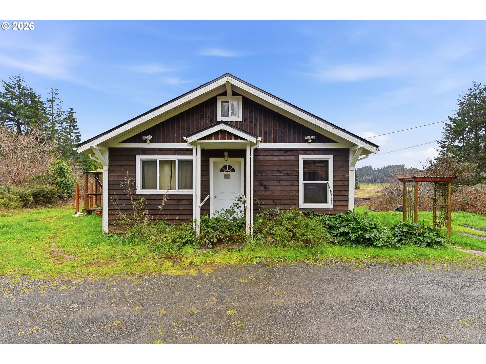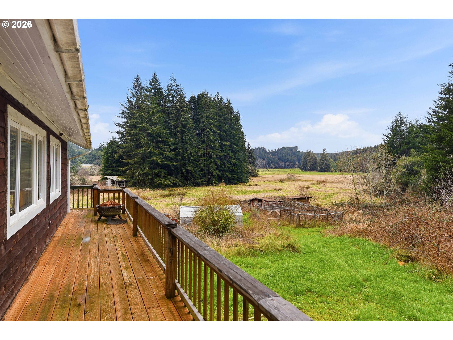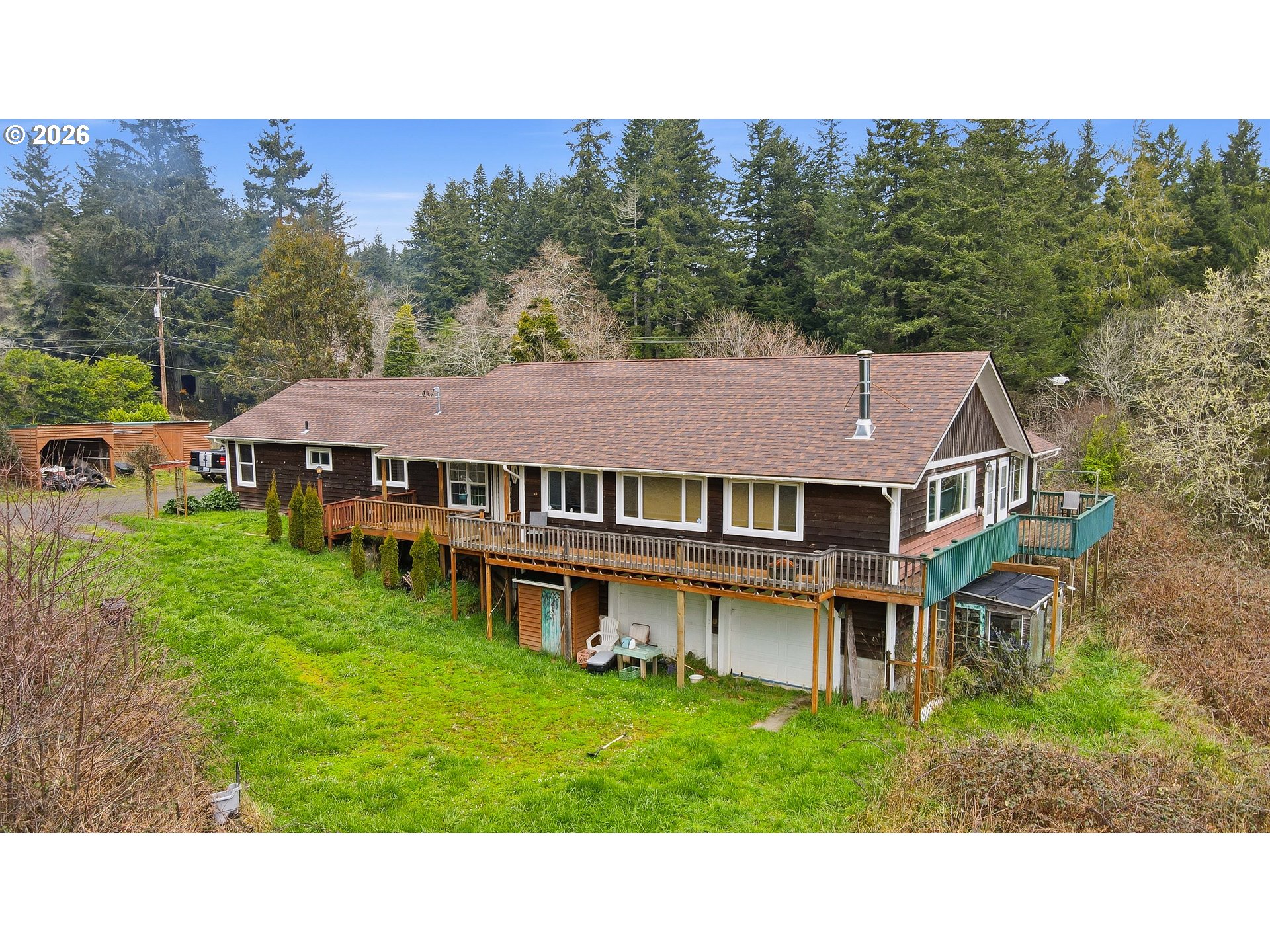 Welcome to your peaceful rural retreat just minutes from the conveniences of North Bend and the beauty of the Southern Oregon Coast. Located less than five miles from town, this spacious 5-bedroom, 2-bath home offers the perfect combination of privacy, comfort, and accessibility. Enjoy the tranquility of country living while still being close to shopping, dining, schools, and medical services.The home is positioned to capture beautiful views of the nearby inlet, creating a relaxing coastal atmosphere that can be enjoyed from both inside and out. With generous living spaces and four well-sized bedrooms, there is plenty of room for family, guests, or a home office setup. Beyond the main living areas, additional bonus rooms on both levels add valuable flexibility and function. Whether you envision work-from-home space, creative studios, or guest quarters, the possibilities are wide open.Outdoor living space includes expansive decks that surround the home, providing the perfect place to relax, entertain, or simply take in the surrounding natural scenery. The land offers multiple outbuildings for storage, hobbies, or workshop space, making it ideal for those who enjoy projects, gardening, or outdoor recreation.the garden areas and greenhouse space, along with mature fruit trees that add both beauty and productivity to the property. There is also abundant space for RV and boat storage, perfect for those looking to take full advantage of the nearby lakes, ocean beaches, and the famous Oregon Dunes.Whether you're looking for a full-time residence, a coastal getaway, or a property with room to grow and create your own rural lifestyle, this unique property offers a rare opportunity to enjoy the best of coastal country living with town amenities just minutes away.