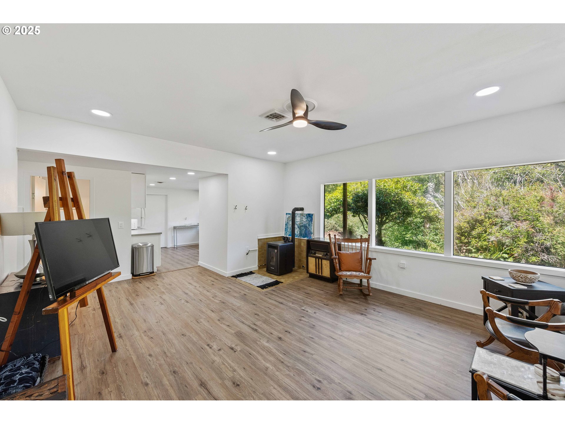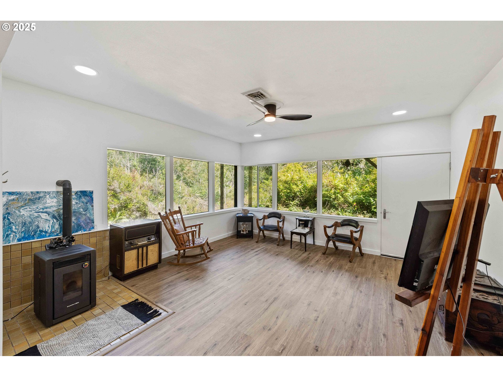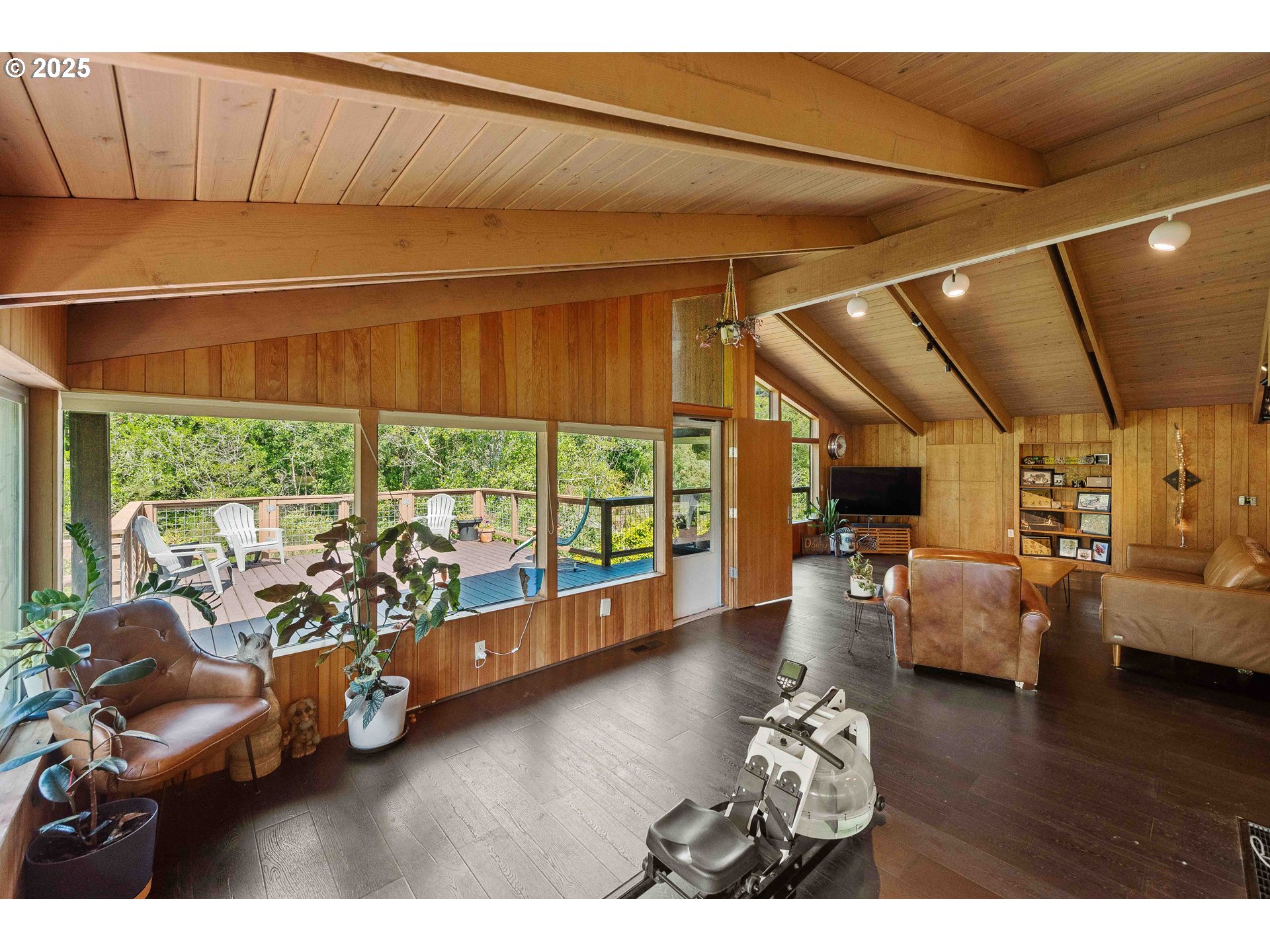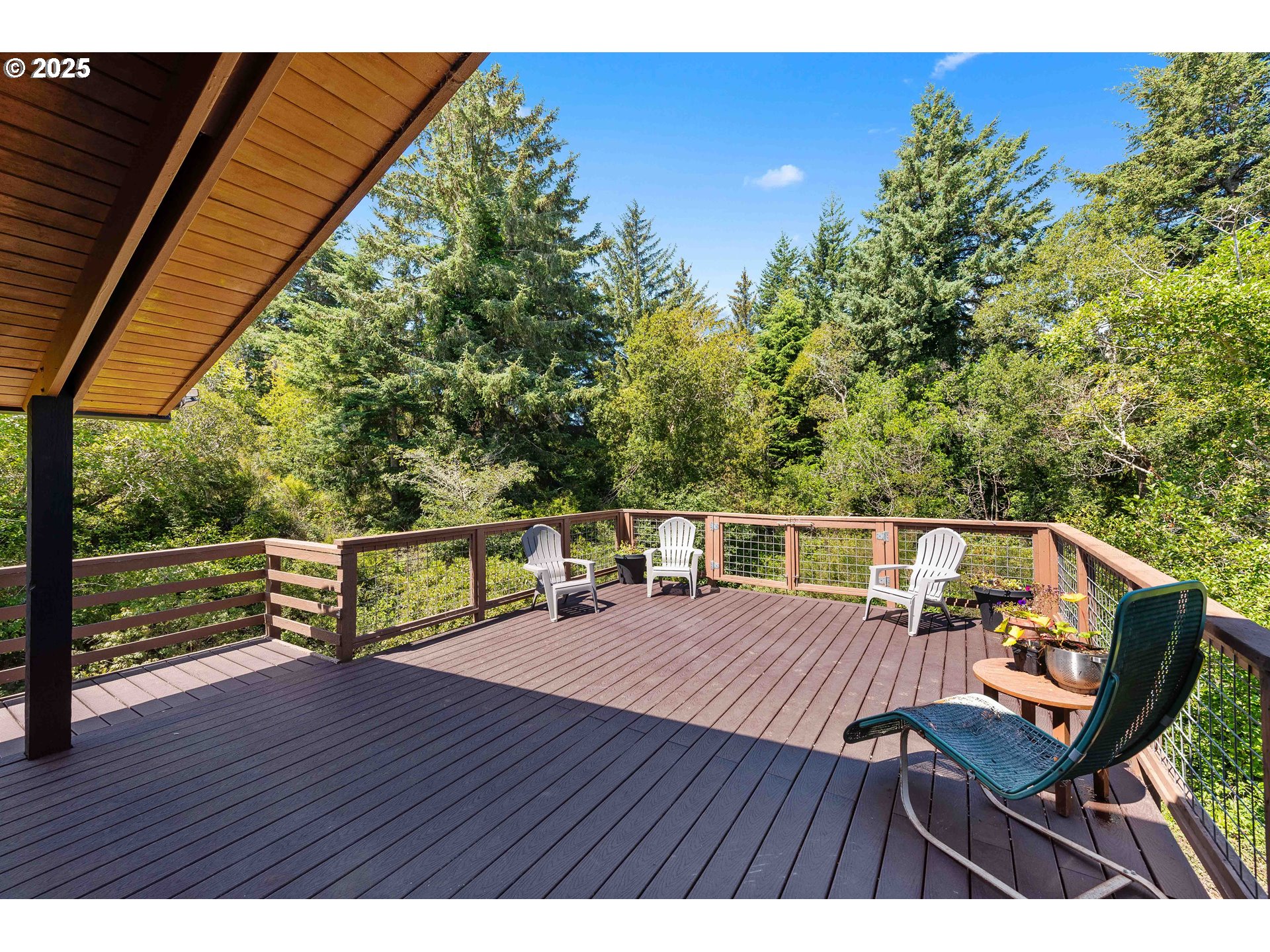 Private retreat on 3.79 acres featuring four bedrooms and three bathrooms. The open-concept living room, dining area, and kitchen flow seamlessly onto an expansive deck overlooking a seasonal creek and the peaceful backyard. Downstairs offers separate living quarters—ideal for extended family or potential rental income—including a full kitchen, family room, one bedroom, one bathroom, laundry area, and ample storage. (Please note there are a few unfinished projects) A large RV carport adds convenience. Tucked away at the end of a private driveway, this secluded property is just minutes from the world-famous Bandon Dunes Golf Resort, the stunning Oregon Coast beaches, and the charming shops and restaurants of Old Town Bandon.