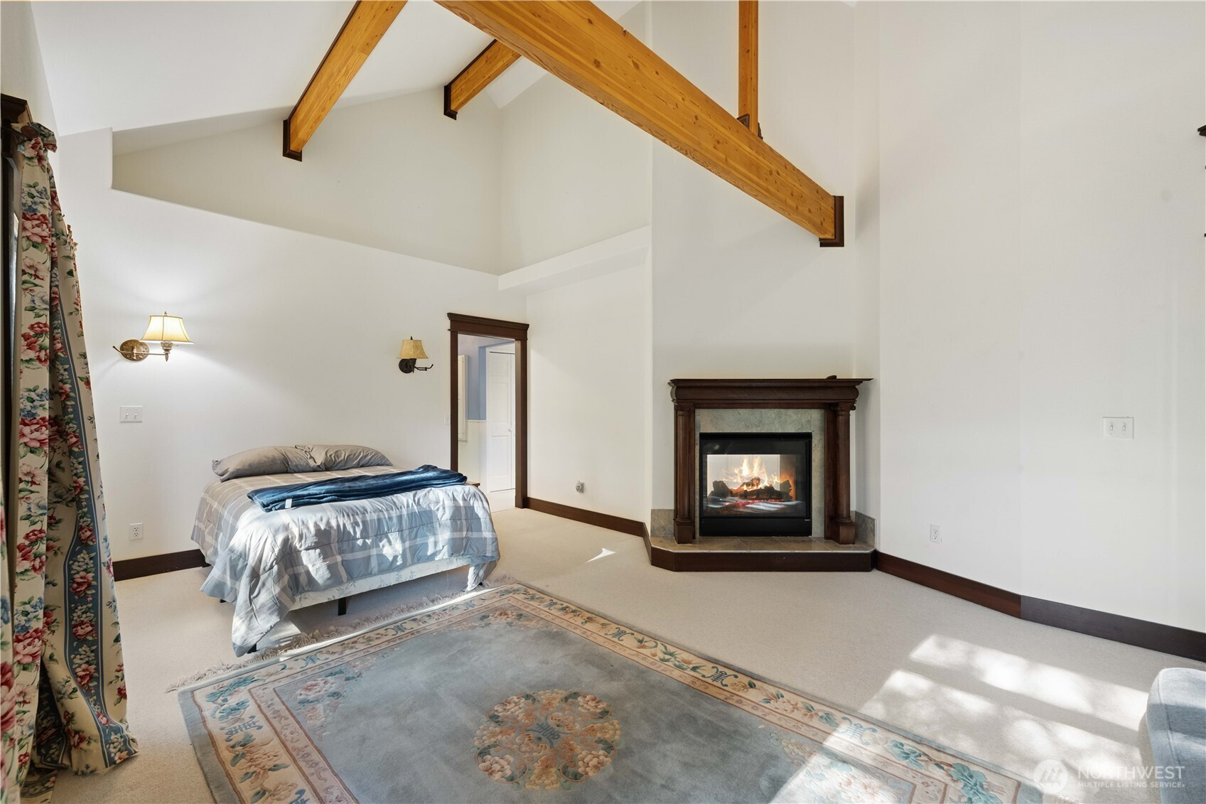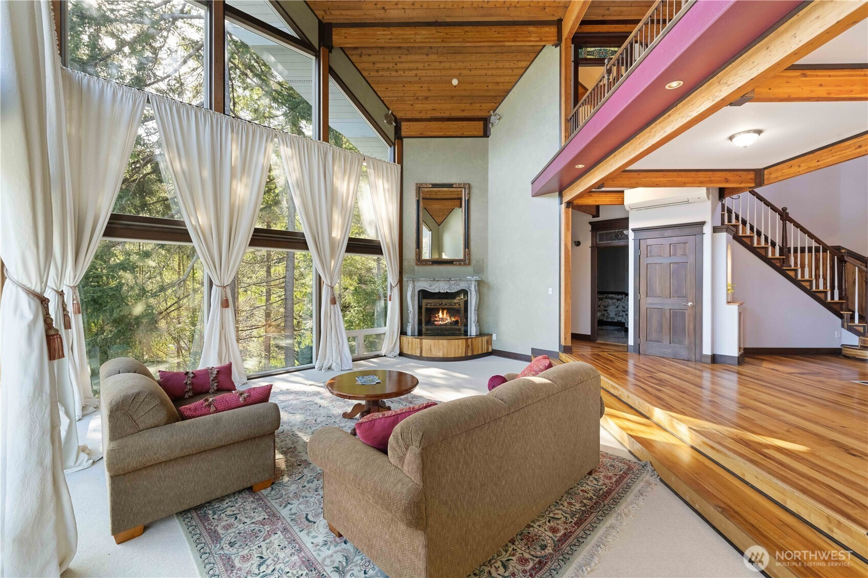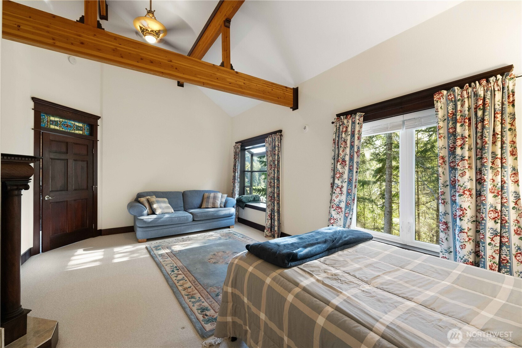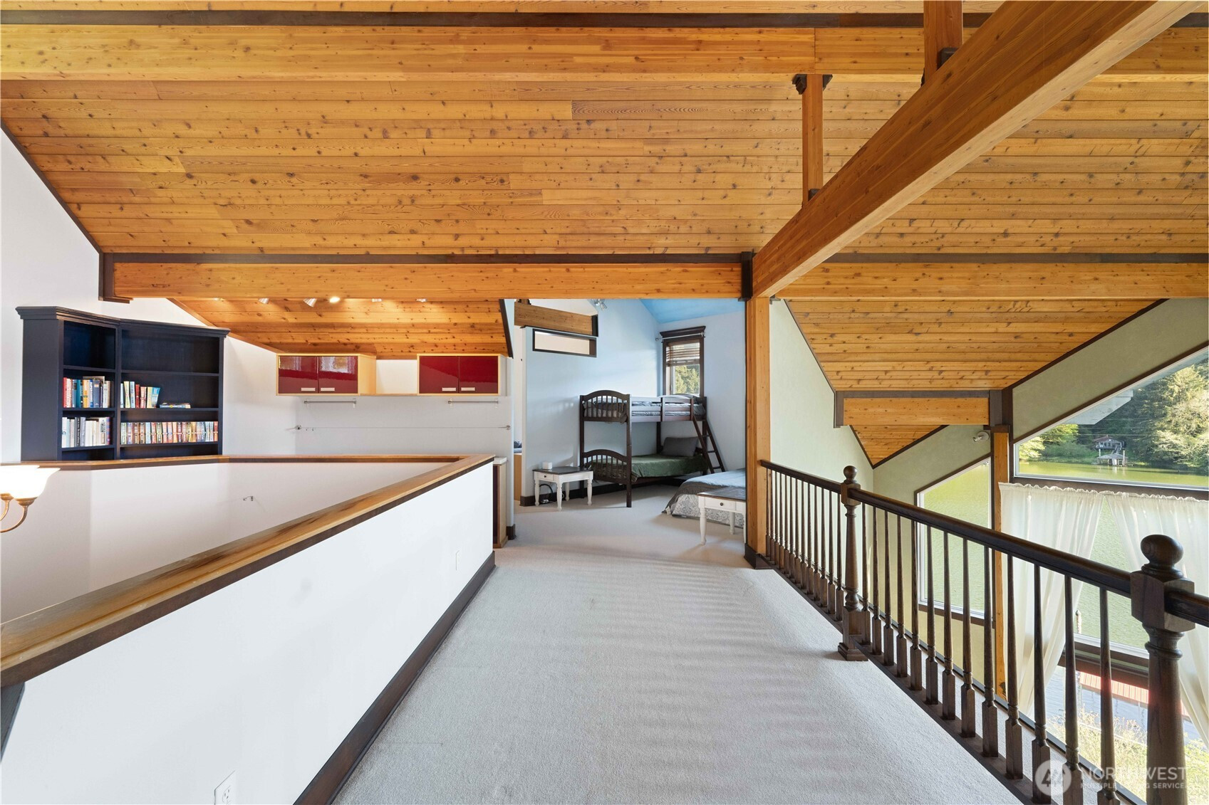 This exceptional lakefront estate blends quality craftsmanship with comfort and versatility, creating a truly unique living experience. A stone entry opens to Myrtlewood floors and Canadian Red Cedar vaulted ceilings that highlight a great room with water views and a fireplace. The kitchen features dual sinks, double ovens, a gas cooktop with pot filler, granite counters, and a pantry. Each bedroom includes a private bath, with heated tile floors adding comfort. Four sitting areas and a centrally located wet bar offer flexible gathering space. Additional features include built-ins, dual laundry areas, a recreation room, generous storage, and a detached ADU with custom bunks. Outside, expansive decks, a gazebo, mature landscaping, fruit trees, and a private pond with fountain enhance the waterfront setting. A 1,000± sq. ft. barn, tool shed with utilities, two-car garage, and covered two-boat slip add convenience. Located near renowned fishing, dining, shopping, dunes, golf, hiking, and crabbing, the property offers both tranquility and adventure. The county has verbally indicated potential vacation rental approval, and a spring water purity test is available.