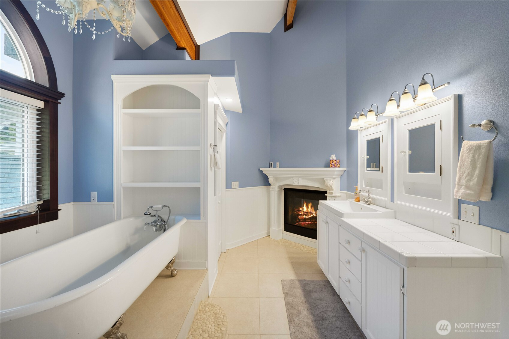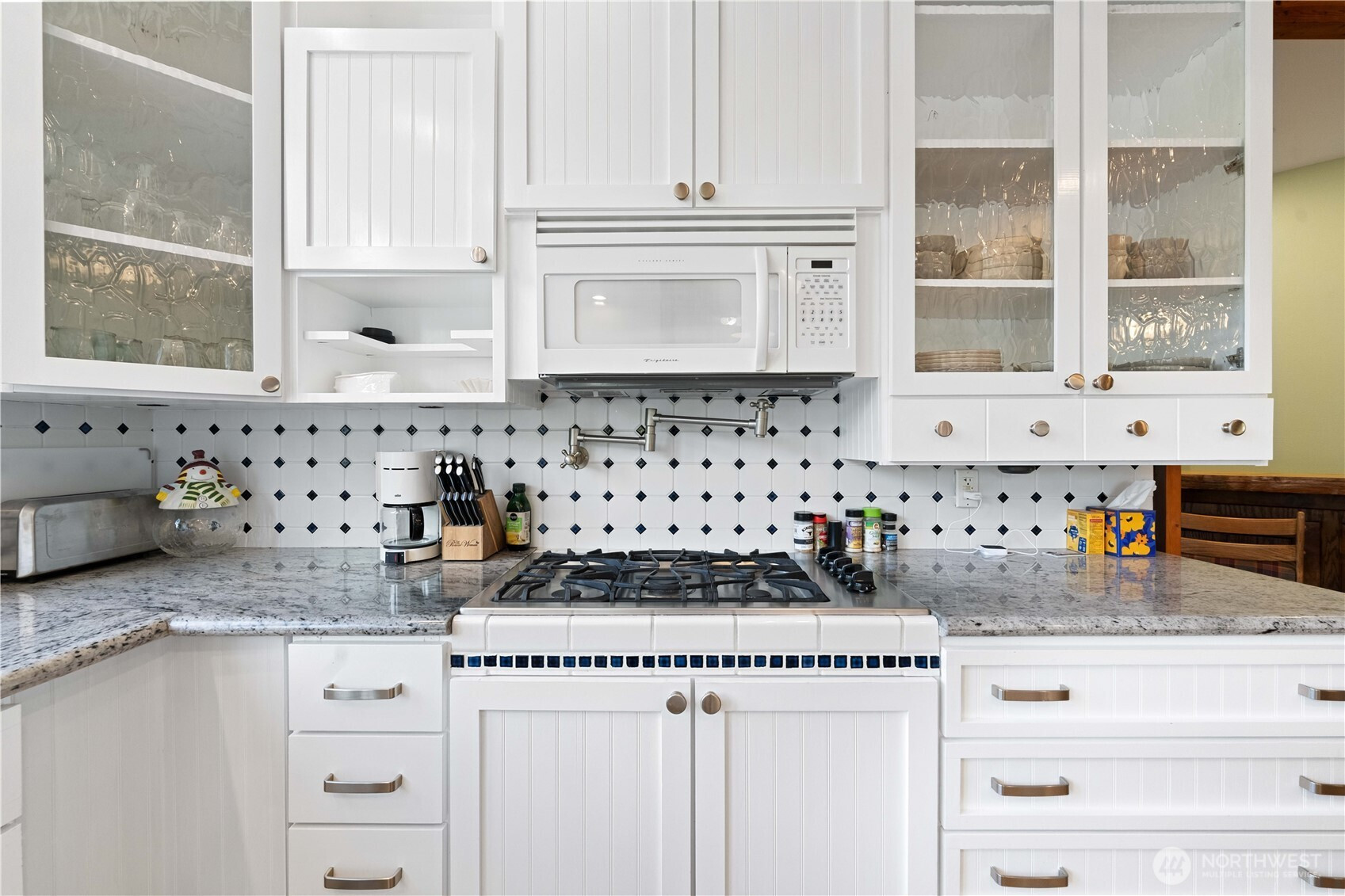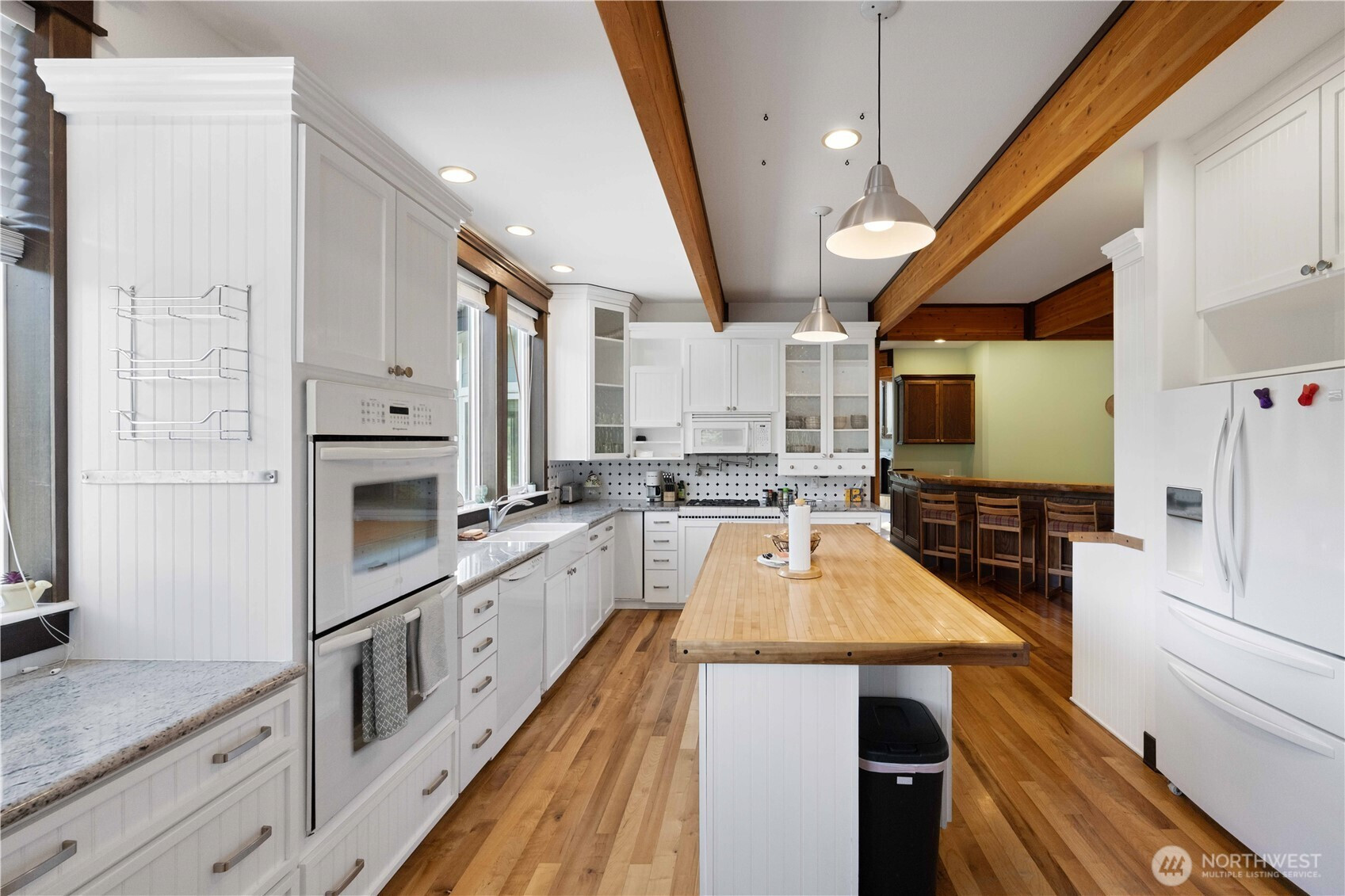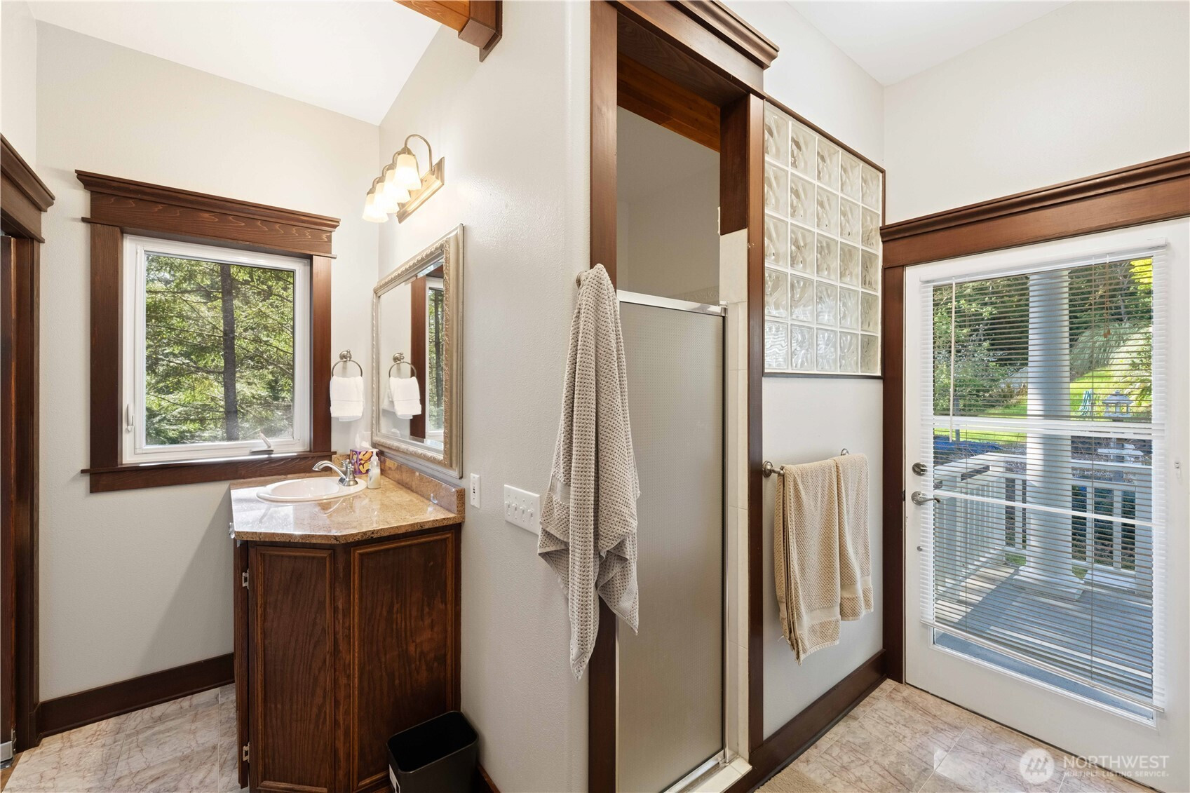 This exceptional lakefront estate blends quality craftsmanship with comfort and versatility, creating a truly unique living experience. A stone entry opens to Myrtlewood floors and Canadian Red Cedar vaulted ceilings that highlight a great room with water views and a fireplace. The kitchen features dual sinks, double ovens, a gas cooktop with pot filler, granite counters, and a pantry. Each bedroom includes a private bath, with heated tile floors adding comfort. Four sitting areas and a centrally located wet bar offer flexible gathering space. Additional features include built-ins, dual laundry areas, a recreation room, generous storage, and a detached ADU with custom bunks. Outside, expansive decks, a gazebo, mature landscaping, fruit trees, and a private pond with fountain enhance the waterfront setting. A 1,000± sq. ft. barn, tool shed with utilities, two-car garage, and covered two-boat slip add convenience. Located near renowned fishing, dining, shopping, dunes, golf, hiking, and crabbing, the property offers both tranquility and adventure. The county has verbally indicated potential vacation rental approval, and a spring water purity test is available.