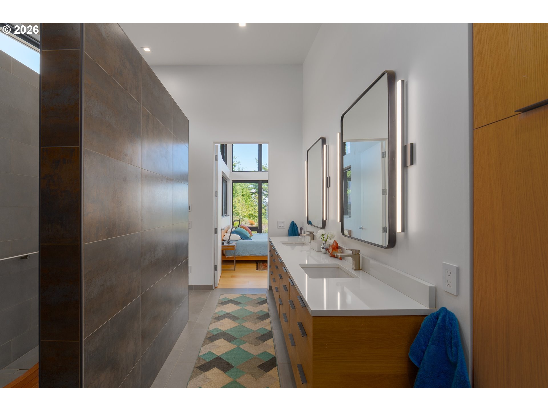 (503) 893-8874Elegant Contemporary Home with Peace and Seclusion on 18+ acres. Graceful, clean lines blend beauty with sophisticated functionality in this 3,190 square foot 3BDR/3BA home, situated high above the Coquille River, only ten minutes from nearby Bandon Dunes Golf Resort. Built in 2019, the home has soaring ceilings as high as 16 feet, with steel beams supporting walls of tall windows, showcasing views of wildflower gardens framed by distant mountains. Everything was meticulously designed and thoughtfully executed. The floors are engineered white oak throughout. The living room has a contemporary propane fireplace set in a striking facade of powder coated steel. The gourmet kitchen was designed by people who love cook. It features waterfall quartzite countertops, extensive cabinets and quality appliances. The primary bedroom is large with tall windows, a fireplace, exquisite bathroom, huge walk-in closet and a hot tub just outside with a private garden and patio. There are additional closets in the hallway leading to the bedroom, as well as an office nook. Two guest bedrooms are on the opposite side of the home, also with bathrooms and more storage. There is a a mud room combined with laundry and utilities off the garage. The home is heated with radiant in-floor heat, as well as forced air driven by a heat pump. There are two hot water heaters. The roof is fire resistant aluminum, and the siding is powder coated steel. There is a wine room in the three car garage. The amount of storage is sure to please. Outside, the acreage is shared with a variety of wildlife, including hummingbirds, bobcats, elk and more. Extensive, irrigated natural perennial flower gardens include flowering trees and a large fenced vegetable garden. The growing season benefits from the sunnier, warmer inland setting. Although the address is Coquille, the home is much closer to Bandon, a town noted for its scenic beauty, outstanding beaches, wonderful Old Town and Bandon Dunes Golf Resort.