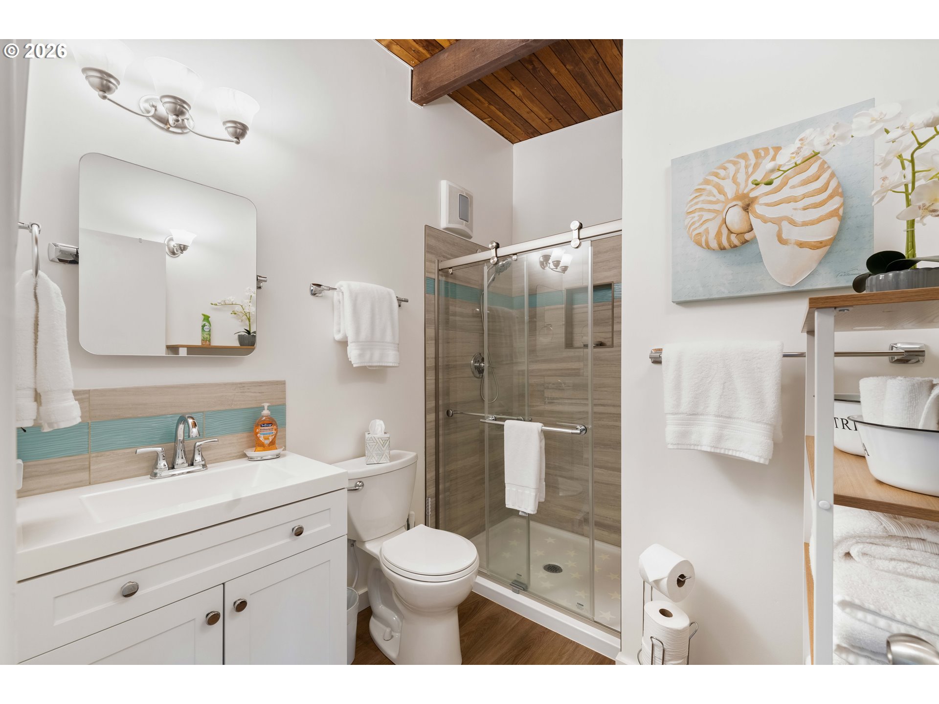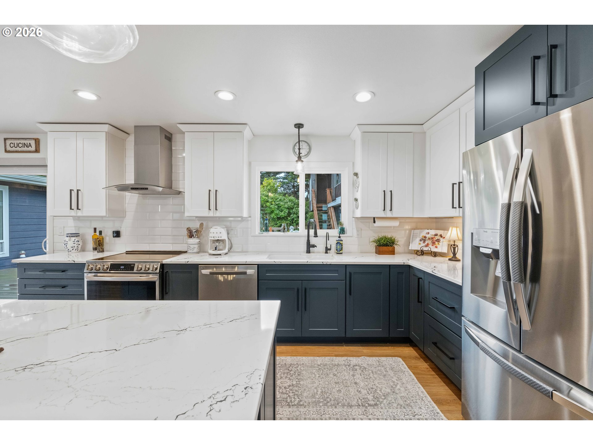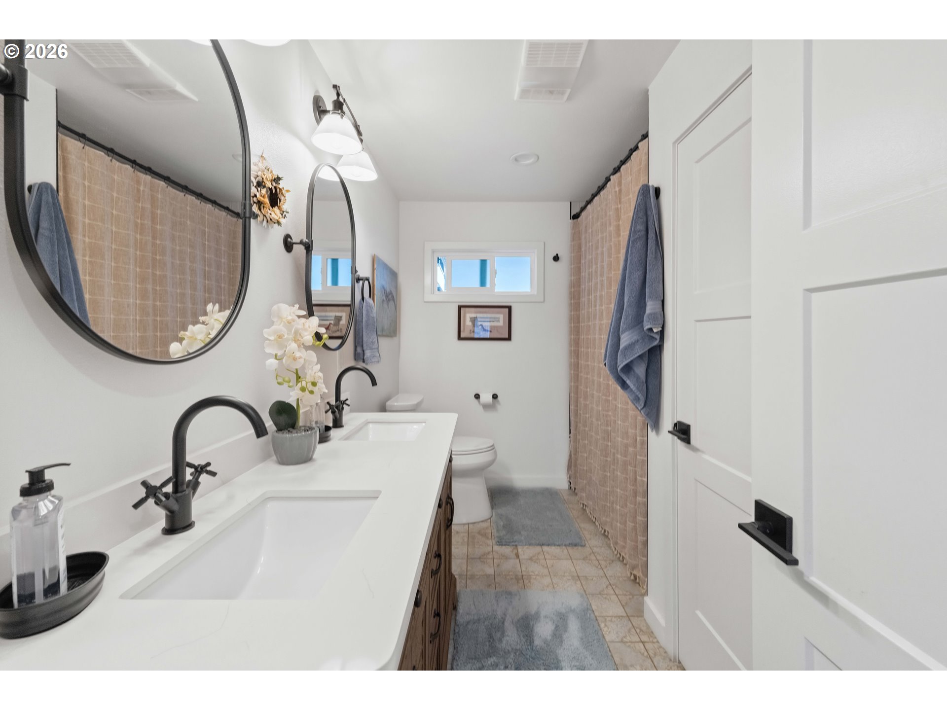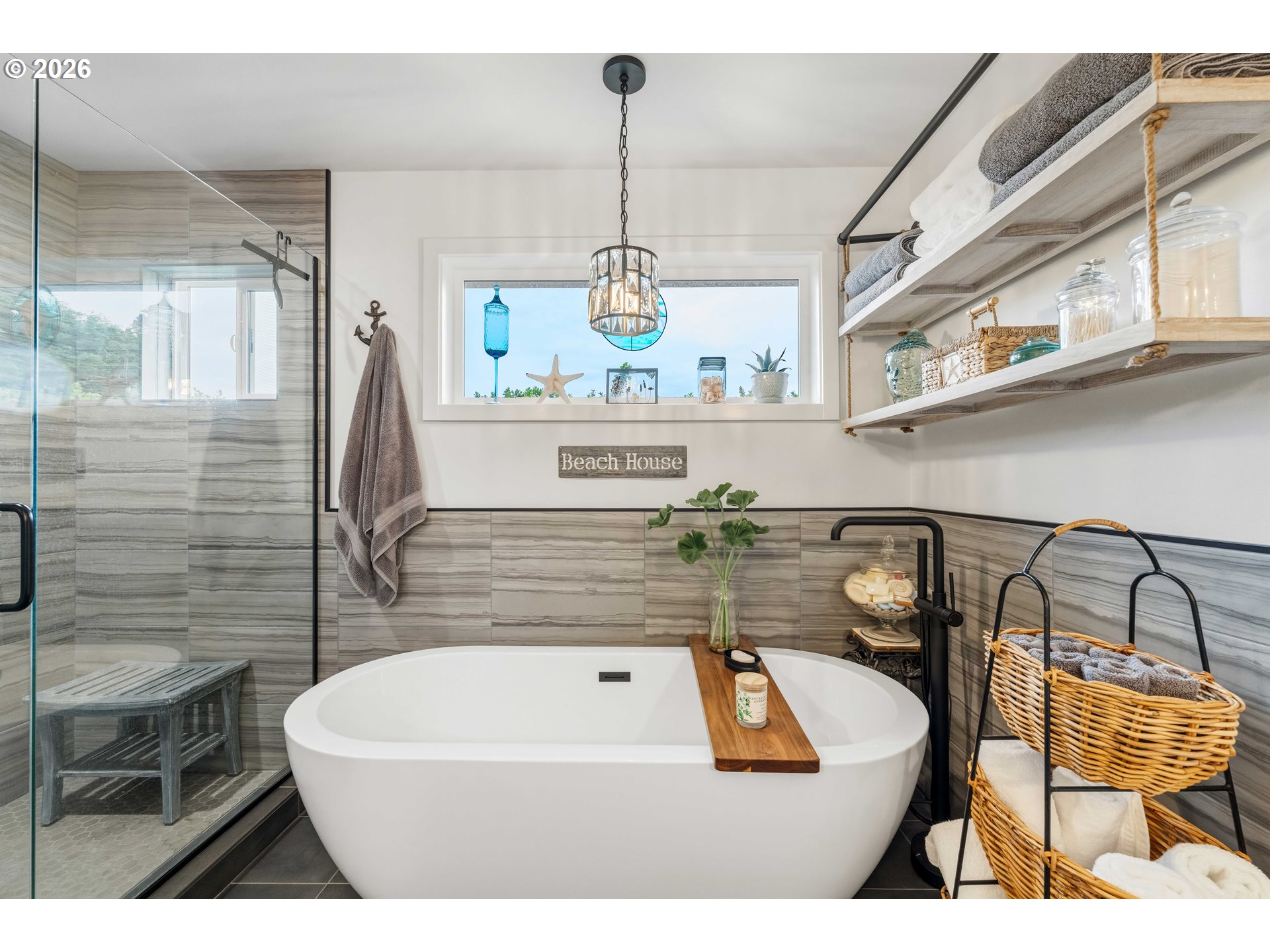 (503) 893-8874Located at 820 Jackson Ave SW in West Bandon, this exceptional property offers far more than a single residence, featuring a fully remodeled main home along with a beautifully updated guest apartment above a detached three-car garage, all just a few blocks from the beach. Set on a spacious 0.29-acre corner lot, the main home was taken down to the studs, expanded with additional living area and a new primary suite, and rebuilt with impressive attention to detail, resulting in over 2,700 square feet with four bedrooms and two bathrooms designed for both comfort and functionality. The interior showcases a generous living and dining area, a well-appointed kitchen with a large island, quartz countertops, quality cabinetry, and a full stainless appliance package, all complemented by durable luxury vinyl plank flooring throughout the home. Expansive windows provide abundant natural light, while a stately stone fireplace anchors the main living space. The roomy primary suite offers a spacious, well-appointed bath with marble counter, large soaking tub with a tiled walk-in shower exude this fine interior. The large laundry room with washer and dryer adds to everyday convenience. A new membrane roof enhances long-term value, and a sliding glass door opens to a composite deck overlooking a private backyard complete with a functional greenhouse and mature rhododendrons The detached guest quarters is a standout feature, offering impeccable living space complete with a full kitchen, one bedroom, stack washer/dryer unit and a bathroom with a beautifully tiled walk-in shower, along with a large balcony that makes it ideal for guests, extended living, or rental potential. Additional amenities include a paved circular driveway, RV hookup, pre-wiring for a hot tub, all in a highly regarded West Bandon location that offers excellent proximity to the coast and the many amenities of Bandon. Be sure to watch the video tour and call for your appointment to view this incredible residence.