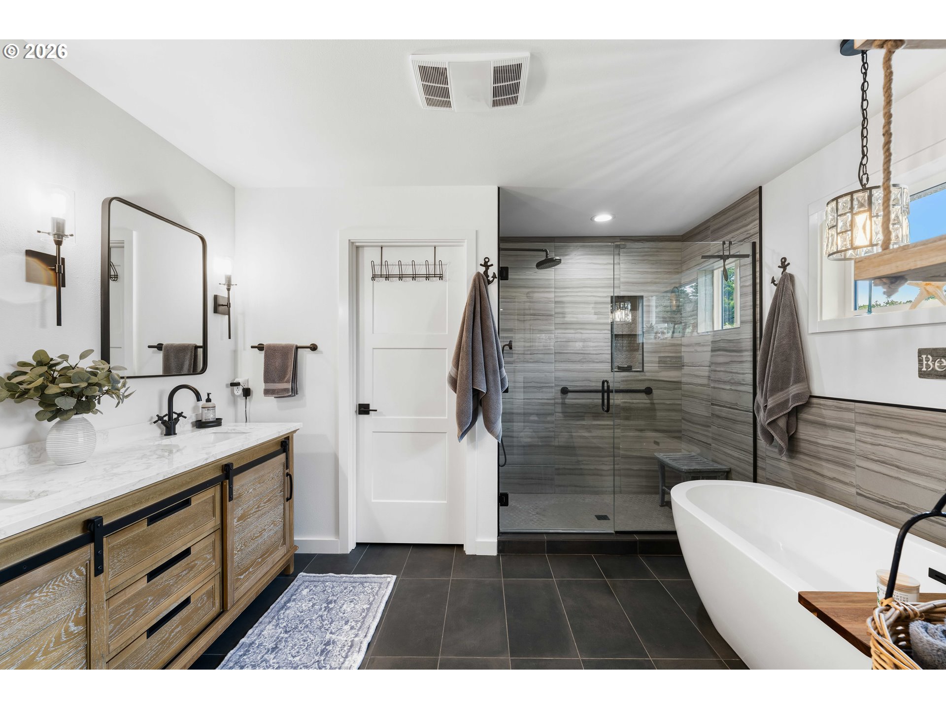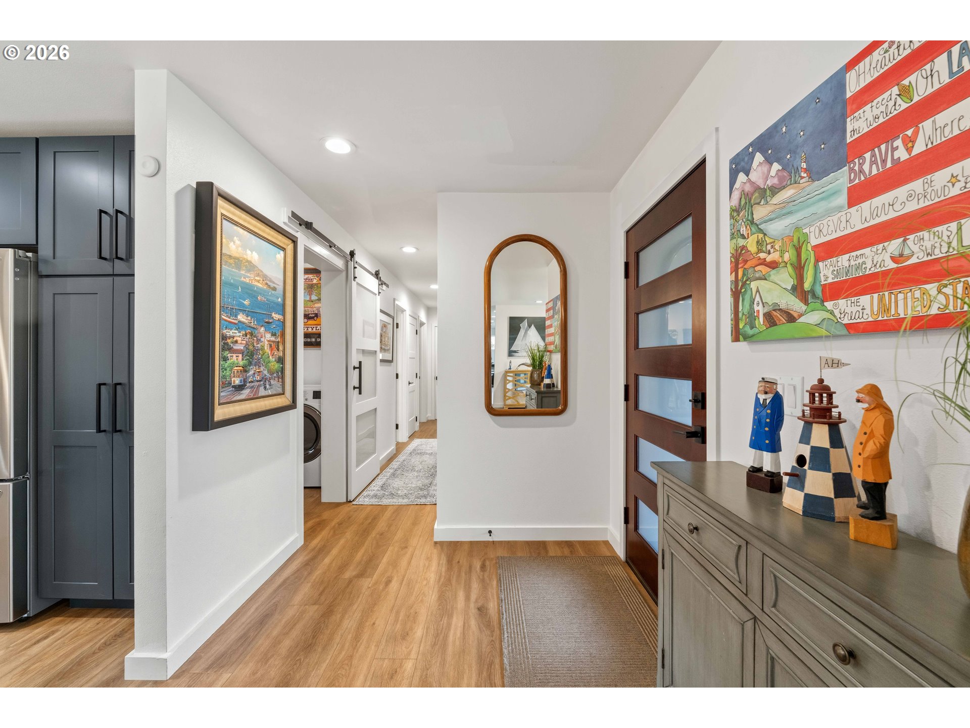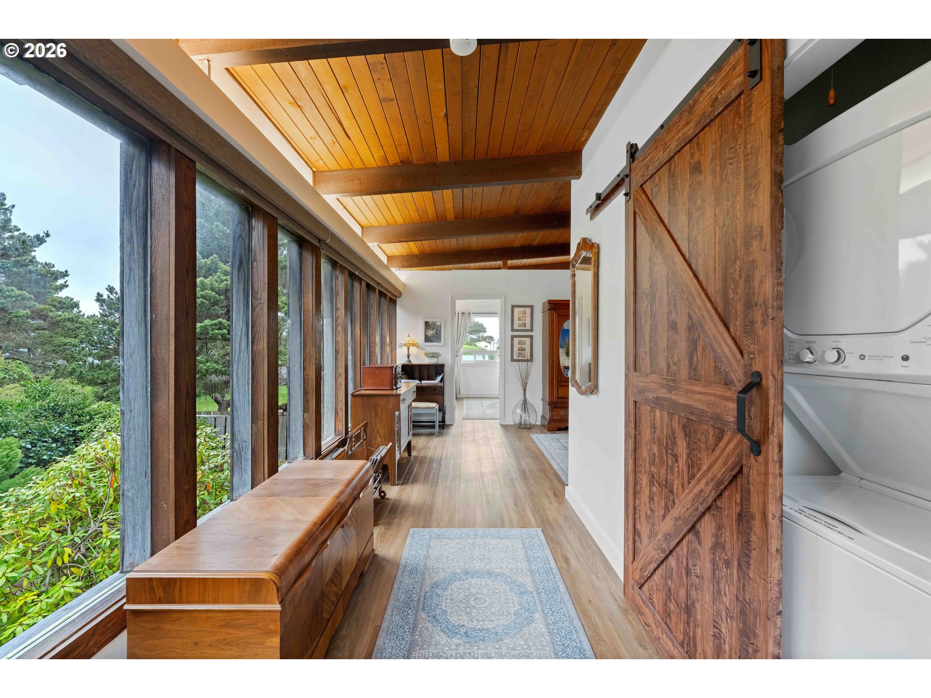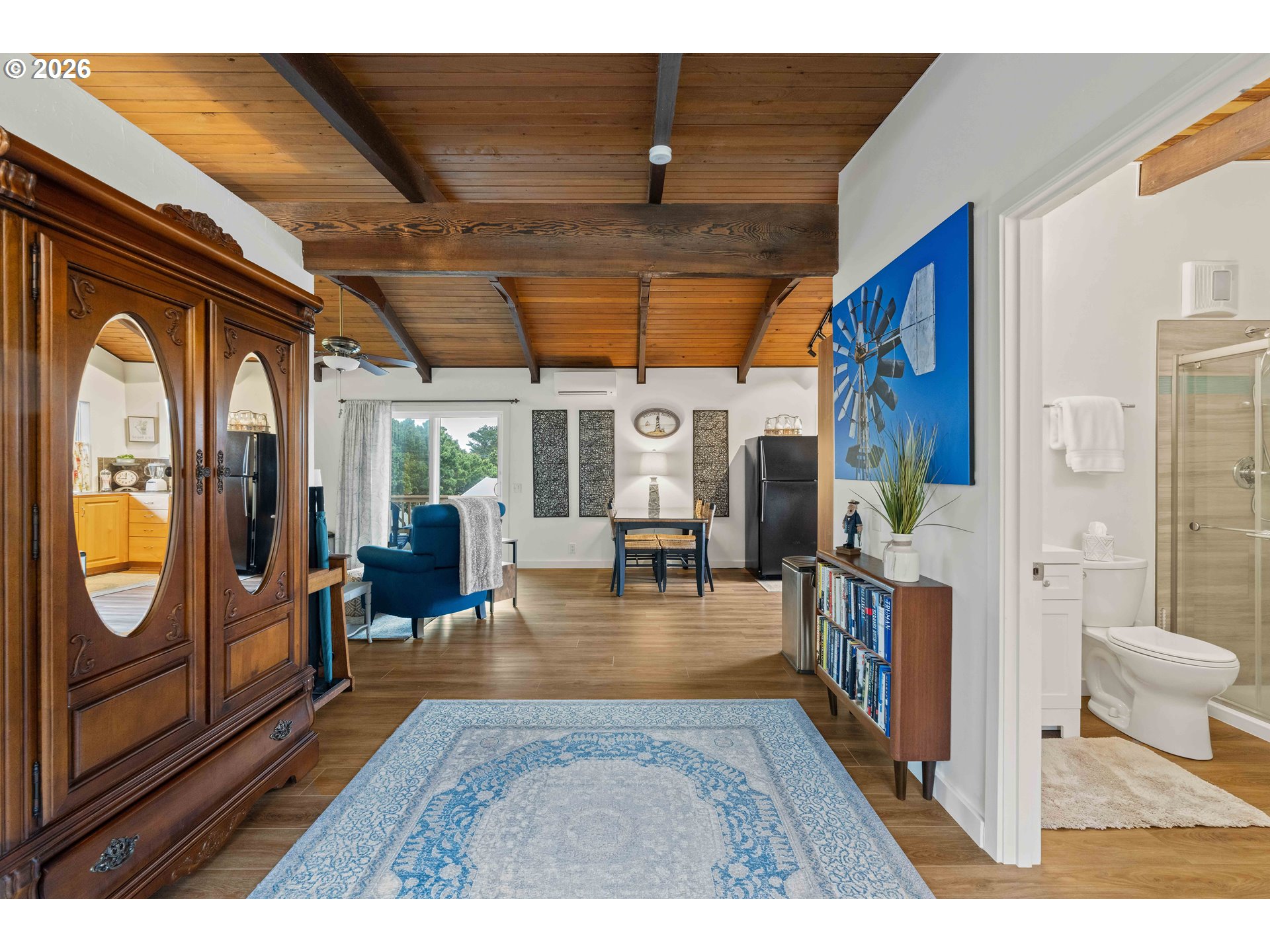 (503) 893-8874Located at 820 Jackson Ave SW in West Bandon, this exceptional property offers far more than a single residence, featuring a fully remodeled main home along with a beautifully updated guest apartment above a detached three-car garage, all just a few blocks from the beach. Set on a spacious 0.29-acre corner lot, the main home was taken down to the studs, expanded with additional living area and a new primary suite, and rebuilt with impressive attention to detail, resulting in over 2,700 square feet with four bedrooms and two bathrooms designed for both comfort and functionality. The interior showcases a generous living and dining area, a well-appointed kitchen with a large island, quartz countertops, quality cabinetry, and a full stainless appliance package, all complemented by durable luxury vinyl plank flooring throughout the home. Expansive windows provide abundant natural light, while a stately stone fireplace anchors the main living space. The roomy primary suite offers a spacious, well-appointed bath with marble counter, large soaking tub with a tiled walk-in shower exude this fine interior. The large laundry room with washer and dryer adds to everyday convenience. A new membrane roof enhances long-term value, and a sliding glass door opens to a composite deck overlooking a private backyard complete with a functional greenhouse and mature rhododendrons The detached guest quarters is a standout feature, offering impeccable living space complete with a full kitchen, one bedroom, stack washer/dryer unit and a bathroom with a beautifully tiled walk-in shower, along with a large balcony that makes it ideal for guests, extended living, or rental potential. Additional amenities include a paved circular driveway, RV hookup, pre-wiring for a hot tub, all in a highly regarded West Bandon location that offers excellent proximity to the coast and the many amenities of Bandon. Be sure to watch the video tour and call for your appointment to view this incredible residence.