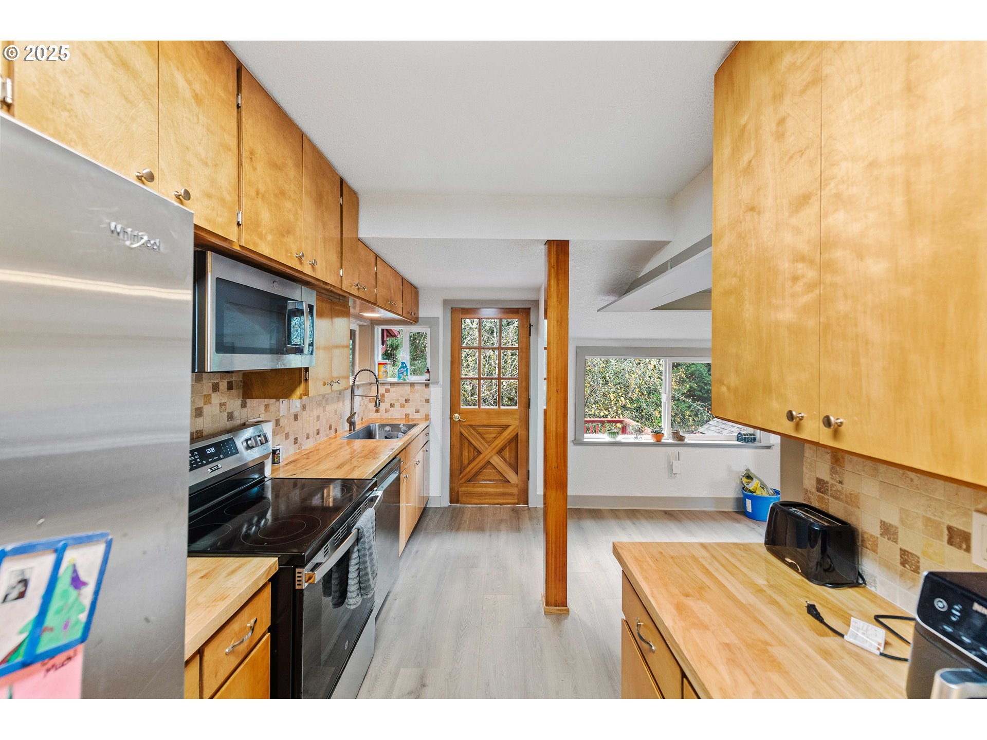 Experience timeless elegance and modern luxury in this beautifully remodeled 1929 Craftsman, perfectly positioned on a generous corner lot in a quiet, desirable neighborhood. Updated in 2024, this 3-bedroom, 3-bath home with an office/den offers 2,551 sq. ft. of thoughtfully designed living space that blends historic character with high-quality modern finishes.Enjoy peace of mind with a new roof, windows, electrical, plumbing, and LVP flooring throughout. The refinished arched front door and live-edge fireplace mantle highlight the home’s original charm, while the main-level primary suite provides comfort and convenience. The kitchen and baths feature butcher-block counters, walk-in tile showers, and elegant arched details.Upstairs are two inviting bedrooms, including one with a cozy playroom/hideaway. The garage has been converted into a bright studio space, and the partially finished basement offers potential for a wine cellar or hobby room, plus storage and laundry.Relax on the expansive front deck or covered back deck overlooking the spacious private lot, which includes RV parking. Located across from the 100 Acre Woods trailhead, this turnkey home is a rare blend of charm, style, and versatility.