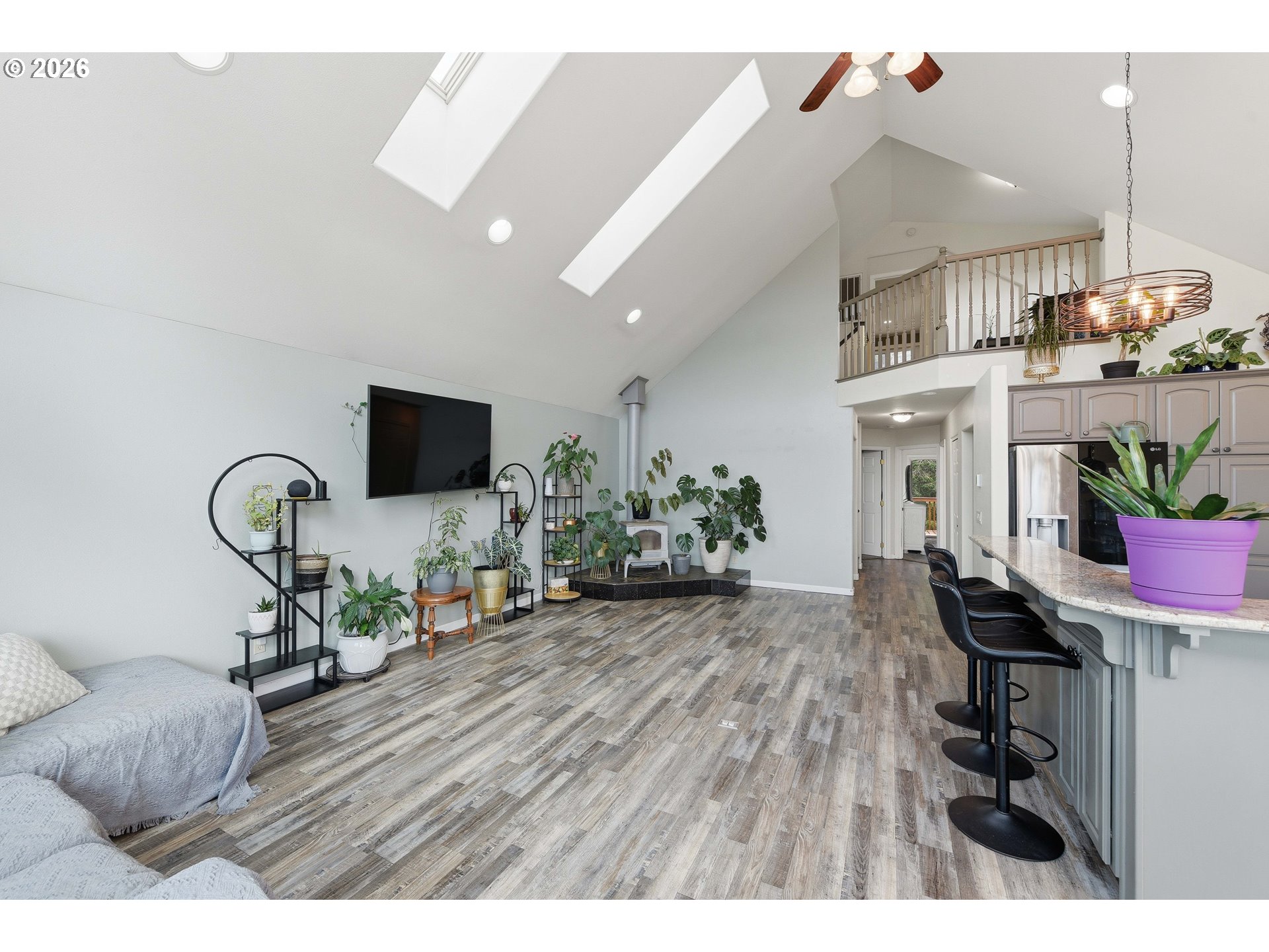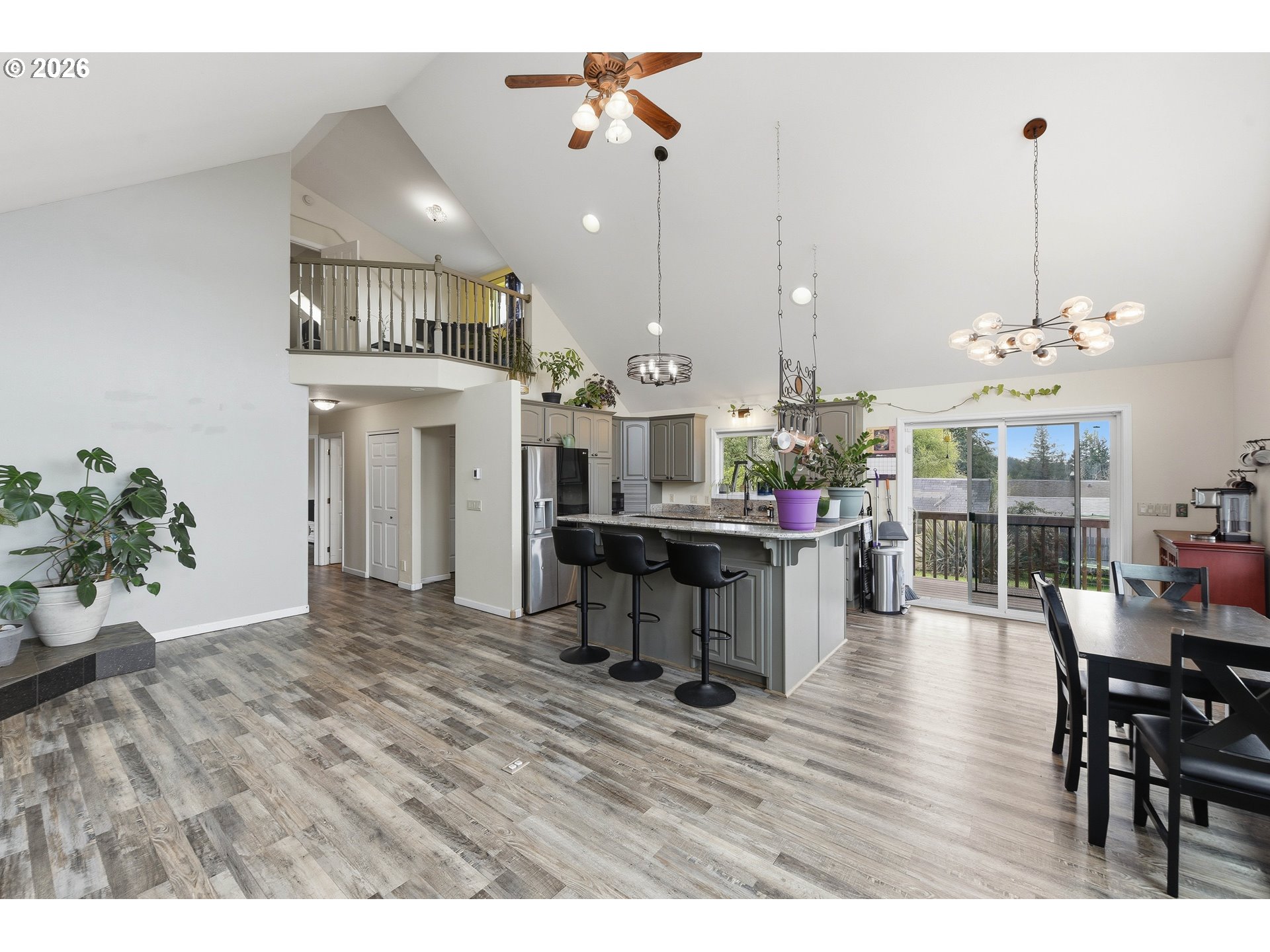 (503) 893-8874Perched on an estate-quality .95-acre parcel with beautiful valley views, this impressive modern home in Coquille offers the complete package. From the oversized shop, paved driveway to the gated entry, this property combines functionality, space and comfort in a hard-to-find setting. Offering 4 bedrooms, 3 bathrooms and a versatile layout, there is room here for a variety of living needs. Inside, the home features vaulted ceilings, picture windows, a soapstone woodstove and an open-concept layout that feels spacious and inviting. Recent upgrades by the current owners include all new LVP flooring in main areas, including carpet in 3 bedrooms, a full kitchen remodel, a brand-new heat pump and the addition of a dedicated laundry space in the garage with extra storage. The main level includes 2 bedrooms and 2 bathrooms, including the primary suite with a sliding glass door leading to the back deck. The en-suite bathroom features a double sink vanity and walk-in shower. Upstairs, you’ll find a loft-style bedroom and an additional flex space currently being used as an office, with balcony that overlooks the living area below. Downstairs, the oversized 4th bedroom is a standout feature with its own exterior access, abundant storage and a private bathroom built in 2024 with a walk-in shower. This space is large enough to serve as a second family room, guest quarters or possible dual living setup. Outside, the property continues to impress with an expansive deck, fruit trees, fully fenced backyard with gate and a small creek bordering the property. One of the biggest highlights is the large shop, with the driveway extending all the way down to it and room for multiple vehicles, RVs, boats, toys, or hobby space. The property also features full RV hookups in the front driveway, adding even more convenience and flexibility. With a double garage, gated entry and so much usable space both inside and out, this is a truly well-rounded property with a lot to offer. A must see!