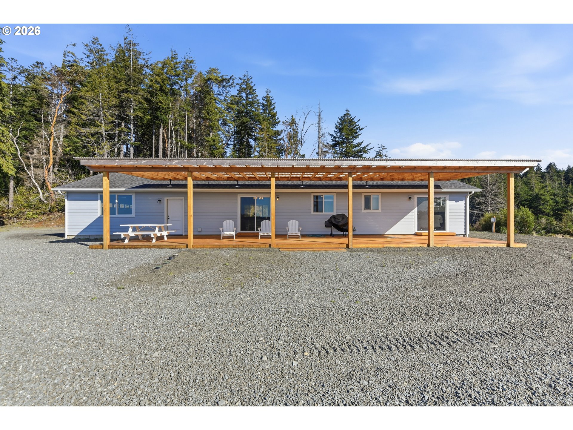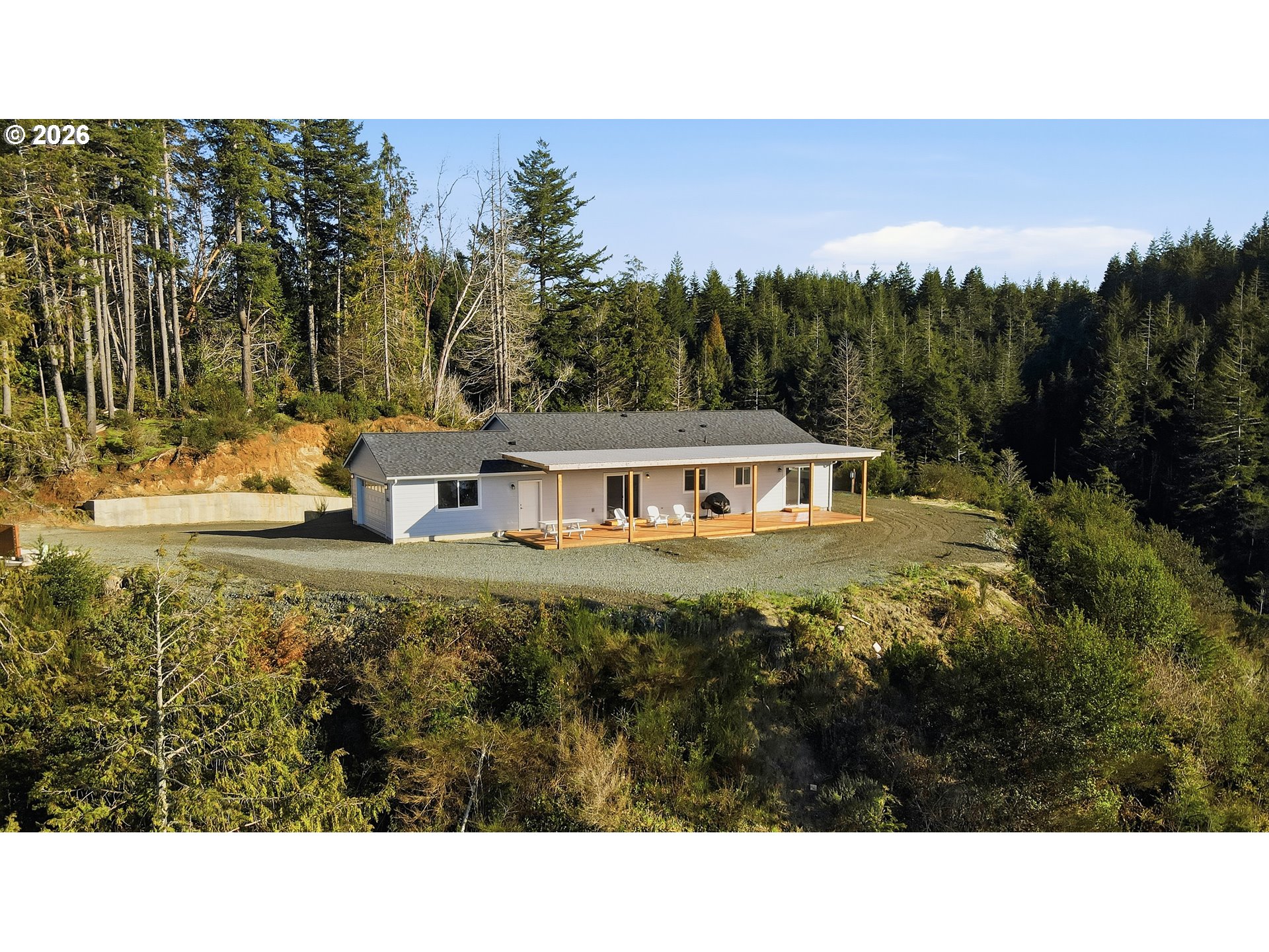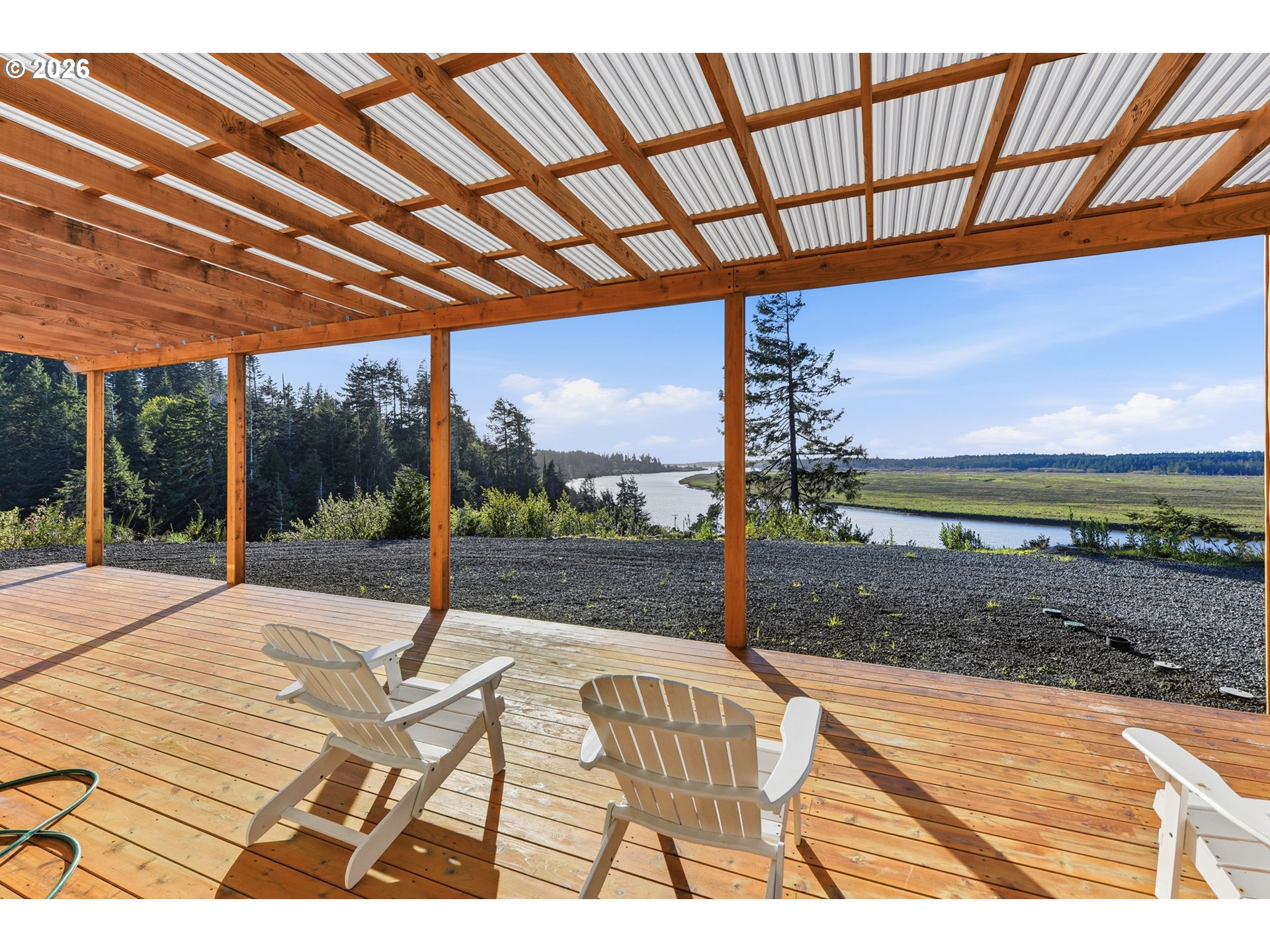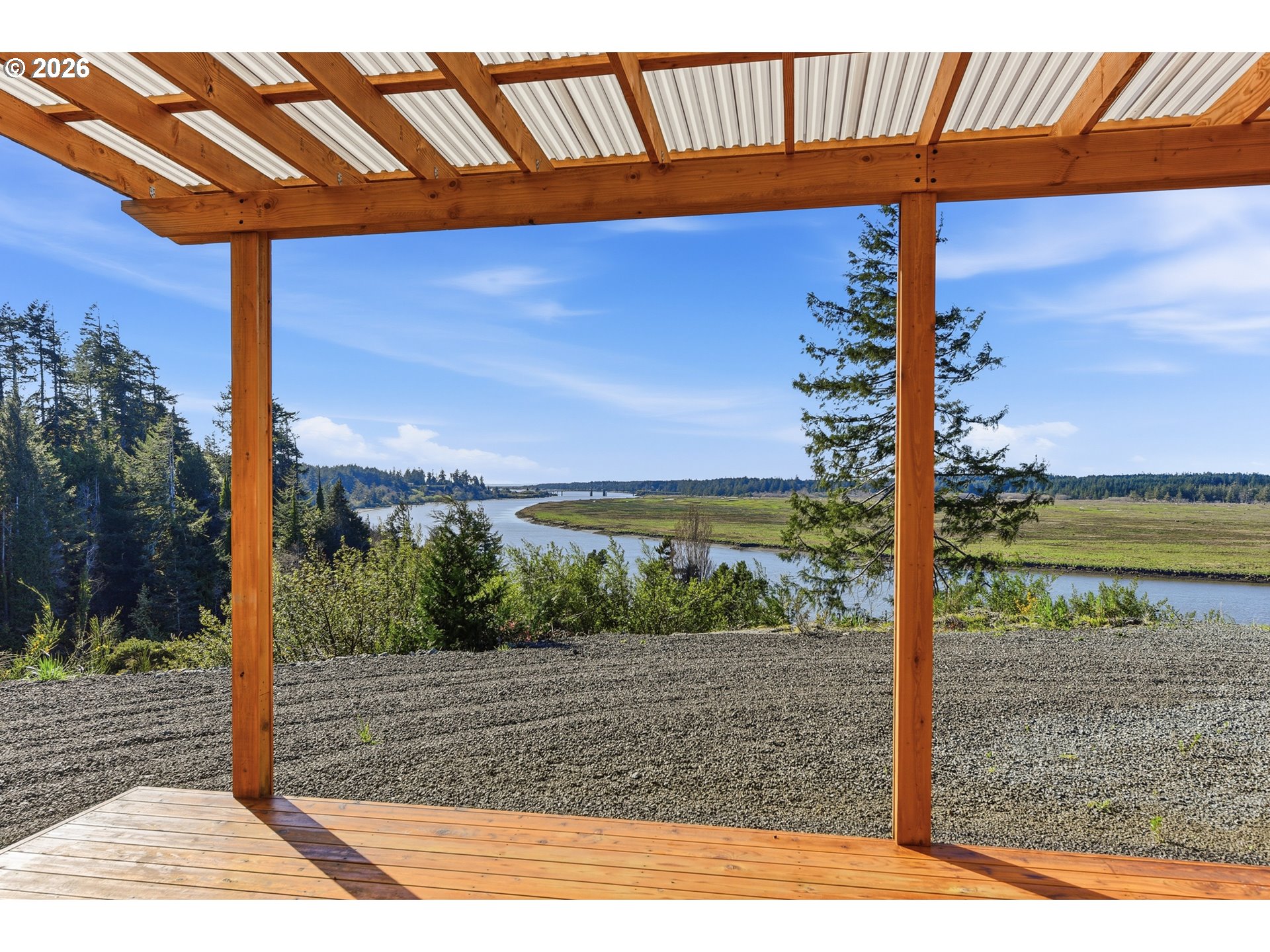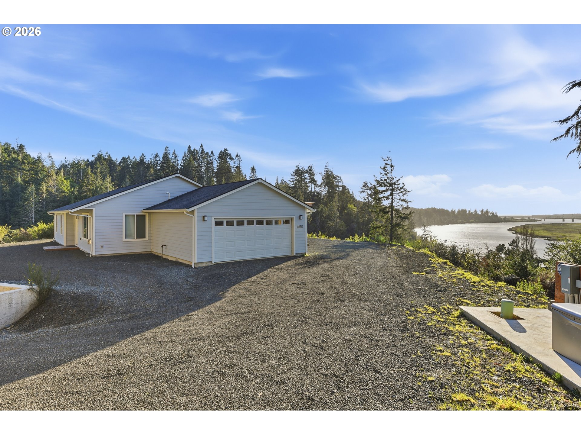 (503) 893-8874Don’t miss out on your chance to steal this one of a kind property!! Stunning, unobstructed river views highlight this beautifully designed 2024-built home, perfectly situated atop 3.45 acres to maximize its breathtaking setting overlooking the Coquille River and bridge. This 1,716 sq ft home features 3 bedrooms and 2 bathrooms with a thoughtfully designed open floor plan. The spacious gourmet kitchen showcases granite countertops, stainless steel appliances, a gas range, and a farmhouse sink, flowing seamlessly into the living area complete with a cozy gas fireplace—perfect for cooler coastal evenings. Large windows and sliding doors invite in natural light and frame the incredible scenery. Step onto the full-length covered deck—ideal for entertaining or simply relaxing while taking in unforgettable sunsets over the river. The primary suite offers direct deck access, creating the perfect spot to enjoy morning coffee surrounded by peaceful views. Enjoy the ultimate waterfront lifestyle with your own private dock, where you can catch salmon, crab, striper, and sturgeon right from your property—an incredible feature for outdoor enthusiasts and those seeking a true coastal Oregon experience. This brand-new property includes a new well, new septic system, and a backup generator for added peace of mind. A natural spring located near the top of the driveway offers excellent water and unique potential for future use. A creek runs along the back of the property, enhancing the serene setting. The land offers ample space for a future shop, casita, or additional outbuildings. Across the river, a protected preserve ensures your stunning river and distant ocean views will remain forever unobstructed. Located just minutes from Bandon’s renowned beaches, world-class golf, charming Old Town shopping, dining, and crabbing docks—this property truly combines privacy, beauty, and convenience. A must-see property to fully appreciate everything it has to offer.
