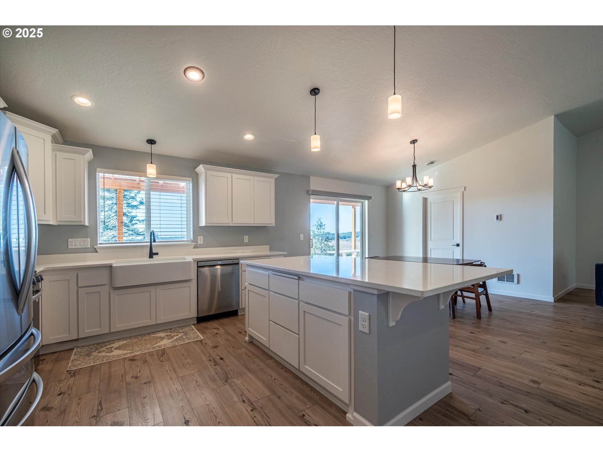 Dishwasher, DownDraft, FreeStandingGasRange, FreeStandingRefrigerator, Granite, Island, RangeHood, Stainles
