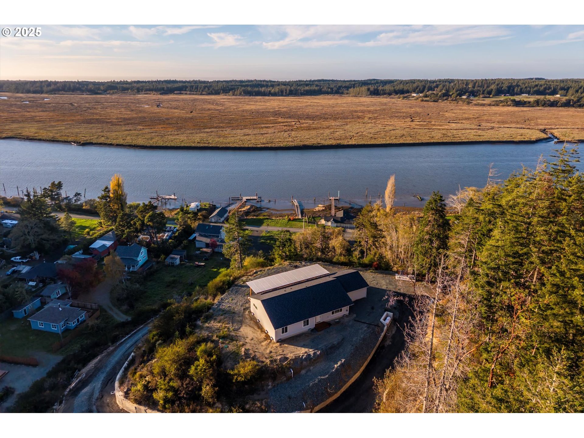 AMAZING RIVER VIEWS from this well designed home, sits on 3.45acres, 1716 sqf,3bd and 2 bath built in 2024. Home situated on hill top to take advantage of the magnificent views of the Coquille River and Bridge, Watch boaters fishing for Striper or Salmon. Open floor plan combining a spacious gourmet kitchen with granite counters, all stainless steel appliances, gas range and farmhouse sink. Living room with gas fireplace for those cold winter days or nights. Cuddle up on the couch and watch your favorite show. Step out of the dining room onto a covered deck which faces the magnificent views of the river. The deck runs the full length of the home great for entertaining and looking at the wonderful sunsets. Step out of the master bedroom on to the deck and enjoy your morning coffee while enjoying the scenery. Seller has done so many extras, backup generator and concrete retaining wall to name a few. Plenty of room below the home to build a shop for storing toys or work on your hobbies. Just minutes from Bandon's world famous beaches and golf. Old Town features shopping, great restaurants and crabbing from the boat docks. Must see to appreciate all the home has to offer.