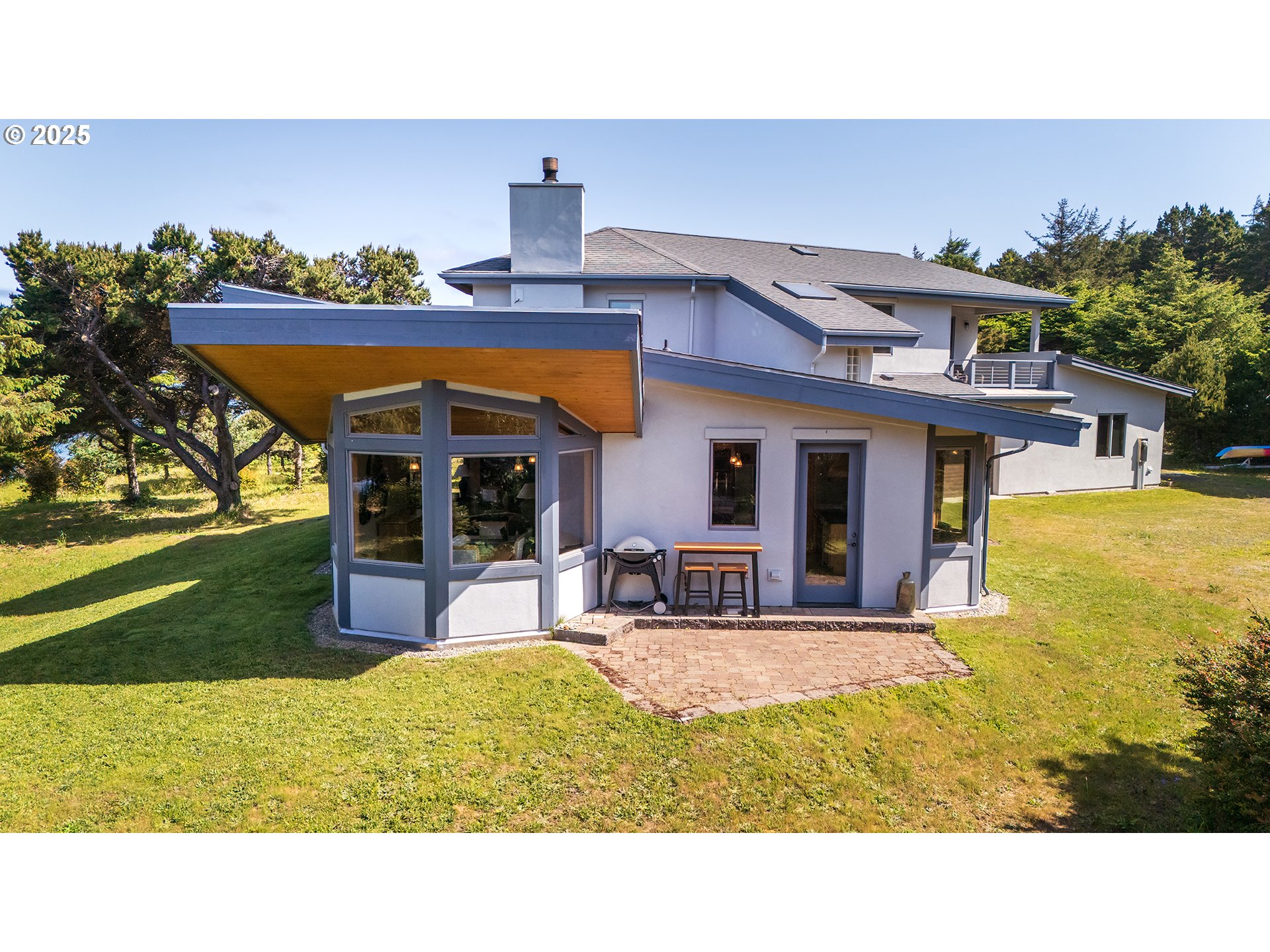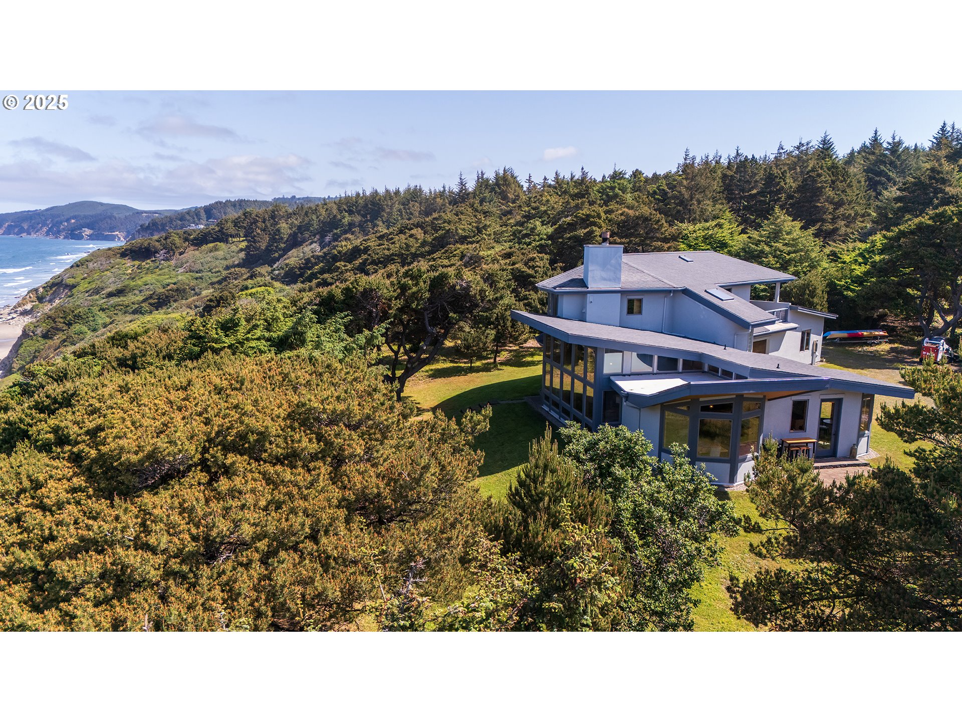 (503) 893-8874Oceanfront private retreat set on over 5 acres of forested bluff above the Pacific, just minutes from the world-renowned Bandon Dunes golf courses. This 2,500 sq ft custom home offers panoramic views from Merchant’s Beach to Cape Arago, with floor-to-ceiling wood-framed windows encasing the views of the ever-changing sea, sky, and forest. Superior comfort is ensured with in-floor radiant heating on both levels, a stunning slate hearth, and a woodstove with auxiliary ducting for cozy warmth throughout the home.The main-level primary suite features inspiring ocean views, a spa-like bath with soaking tub and tiled walk-in shower, and direct access to a private ocean overlook spot—perfect for morning coffee or sunset reflection. Upstairs, a skylit stairwell leads to generously sized bedrooms, each with ocean views, a full bath, and a sunny south-facing balcony. The upper-level bonus room, perched above the trees with floor-to-ceiling windows, offers breathtaking Pacific vistas—an ideal setting for a study, creative workspace, or tranquil sanctuary.The open-concept main floor seamlessly connects living, dining, and kitchen areas for effortless entertaining. The chef’s kitchen boasts granite countertops, alder cabinetry, a large island, wine cooler, gas stove, coffee bar, hickory bar top, and a breakfast nook. Step outside to a patio, garden area, mature fruit trees, and pristine woodland with towering evergreens, rhododendrons, irises, and an abundance of wild mushrooms. Classic Douglas fir-trimmed casement windows in nearly every room invite in ocean breezes and natural light. The main floor also includes a half bath, laundry, and utility room for everyday convenience. A triple-car, 936 sq. ft attached garage provides ample space for vehicles, tools, and recreational gear. An exceptional property where peace, privacy and tranquility of the highest caliber abounds. An adjacent 3-acre parcel with a homesite is also available for purchase (MLS #323947206)