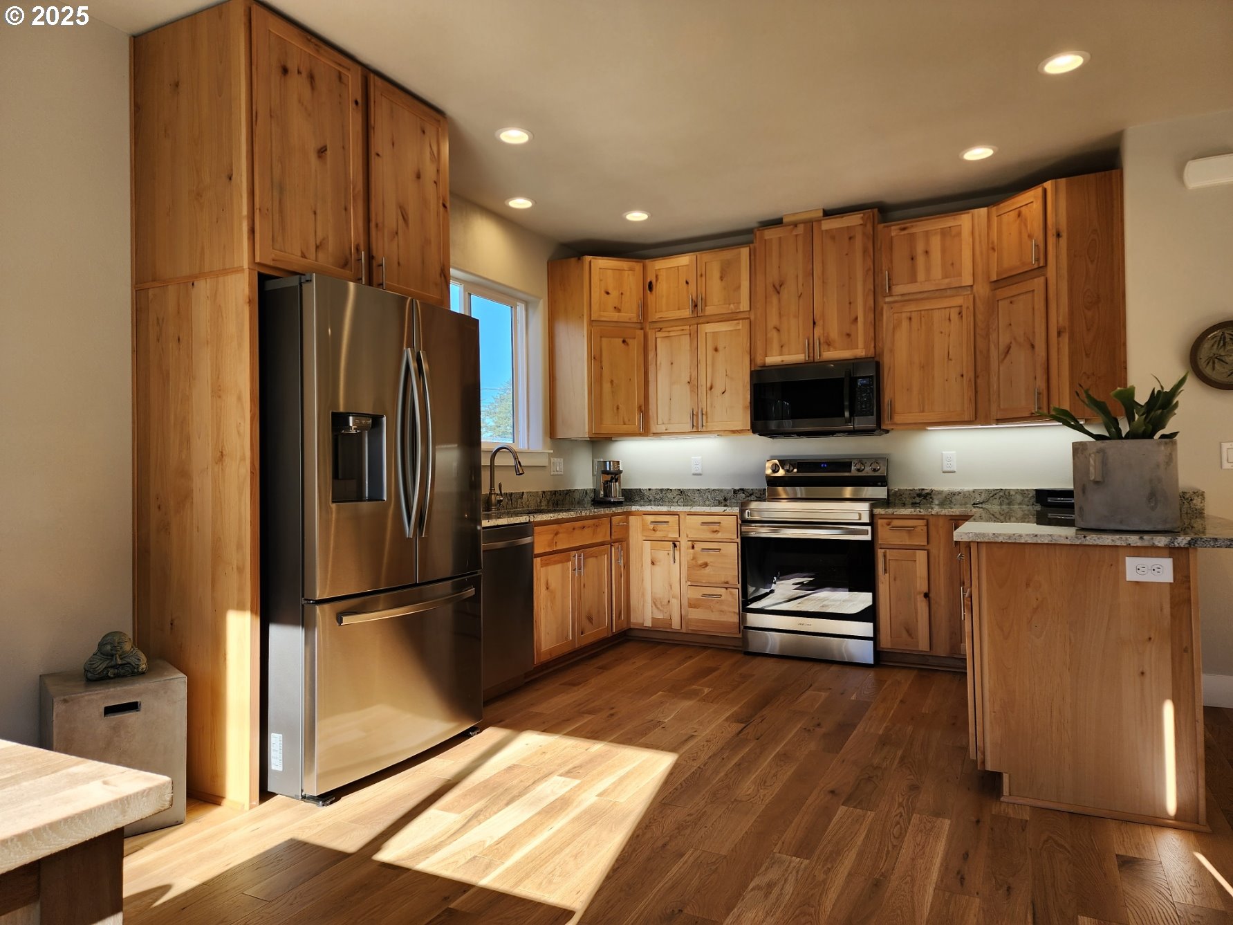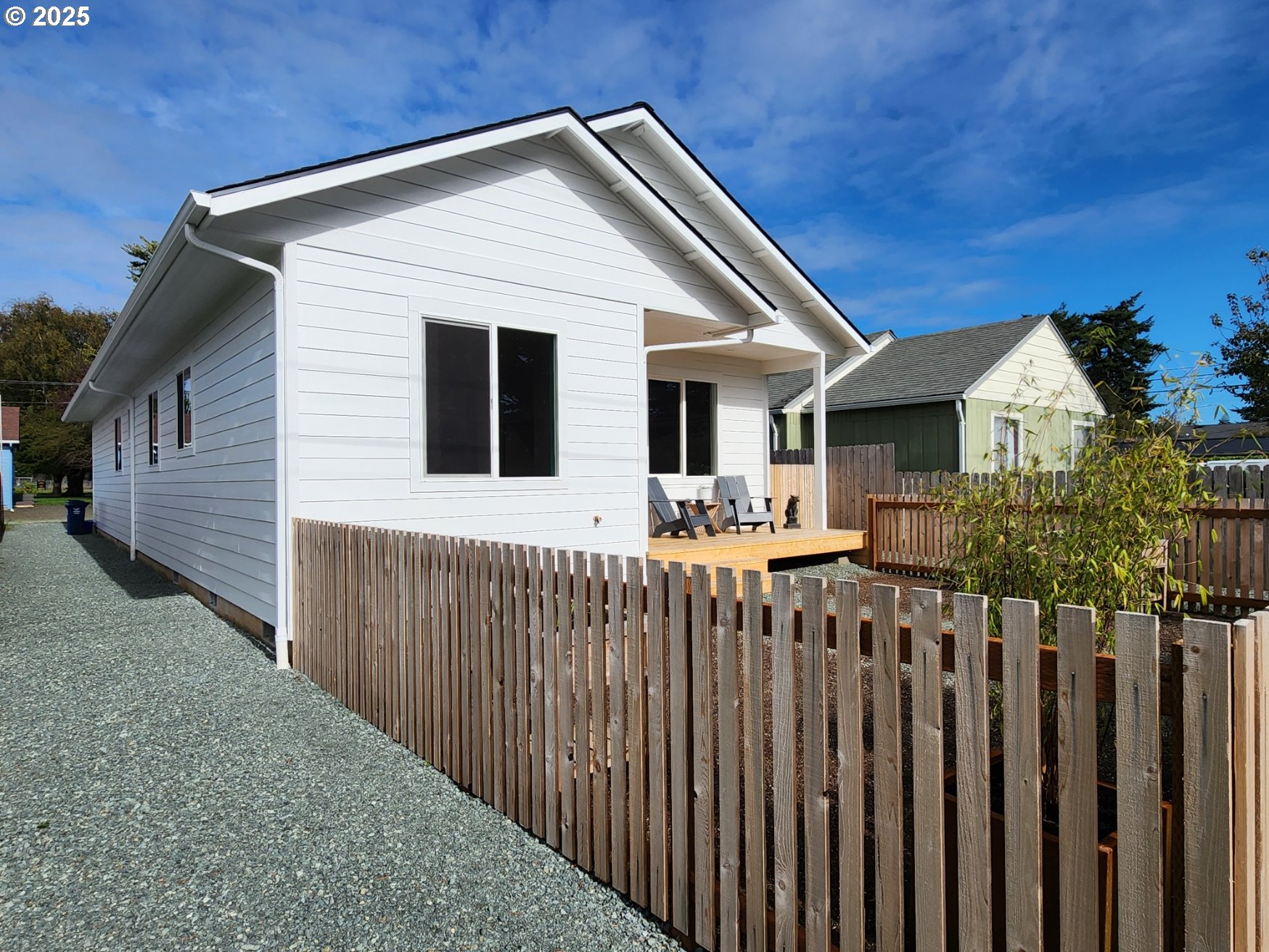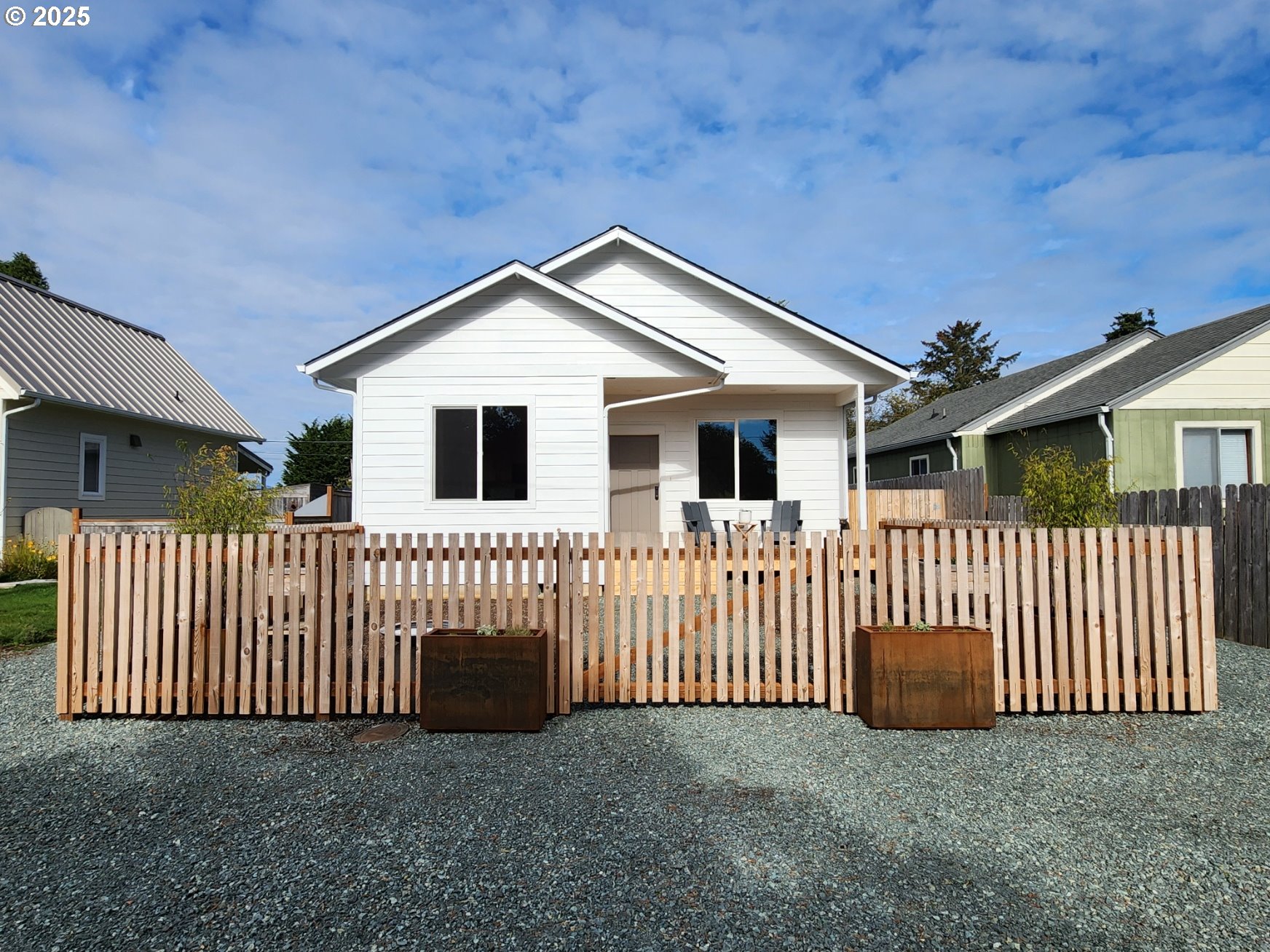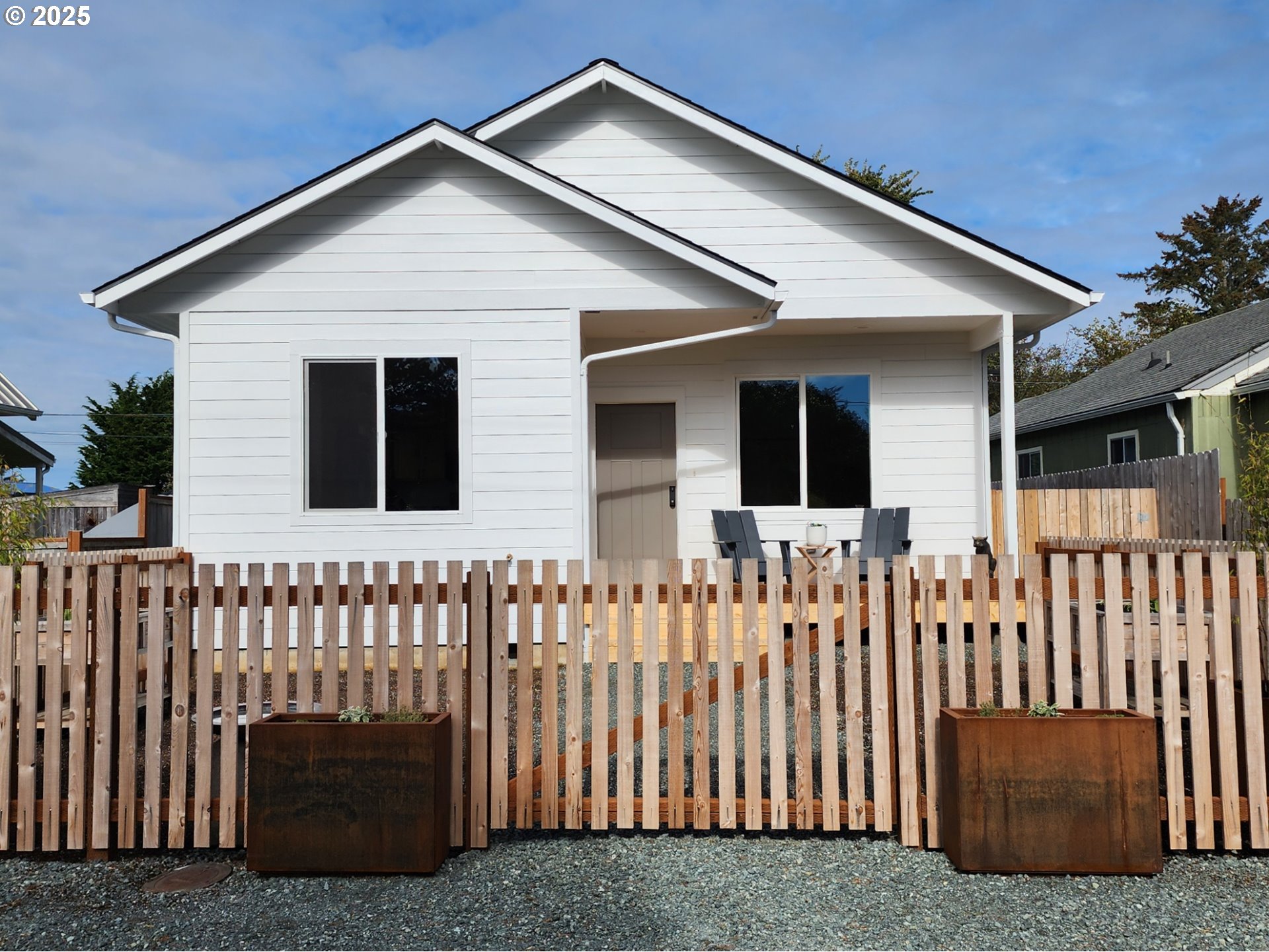 Welcome to this stunning 2-bedroom, 2-bath home built in 2023, offering the perfect mix of modern comfort and coastal charm. Located just minutes from Old Town Bandon and the scenic boardwalk, you’ll enjoy the convenience of in town living with shopping, dining, and the beach all close by. Step inside to find solid oak flooring throughout and an abundance of natural light that enhances the home’s warm, inviting feel. The kitchen features beautiful granite countertops, warm wood cabinetry, and an open layout that’s perfect for entertaining. The primary suite includes a full bath with a walk-in shower, a spacious walk-in closet, and stylish barn doors for added character. Enjoy outdoor living on your private back patio. An attached garage with alley access adds both convenience and functionality. Built to last and designed with comfort in mind, this home offers the best of modern living in a prime Bandon location.