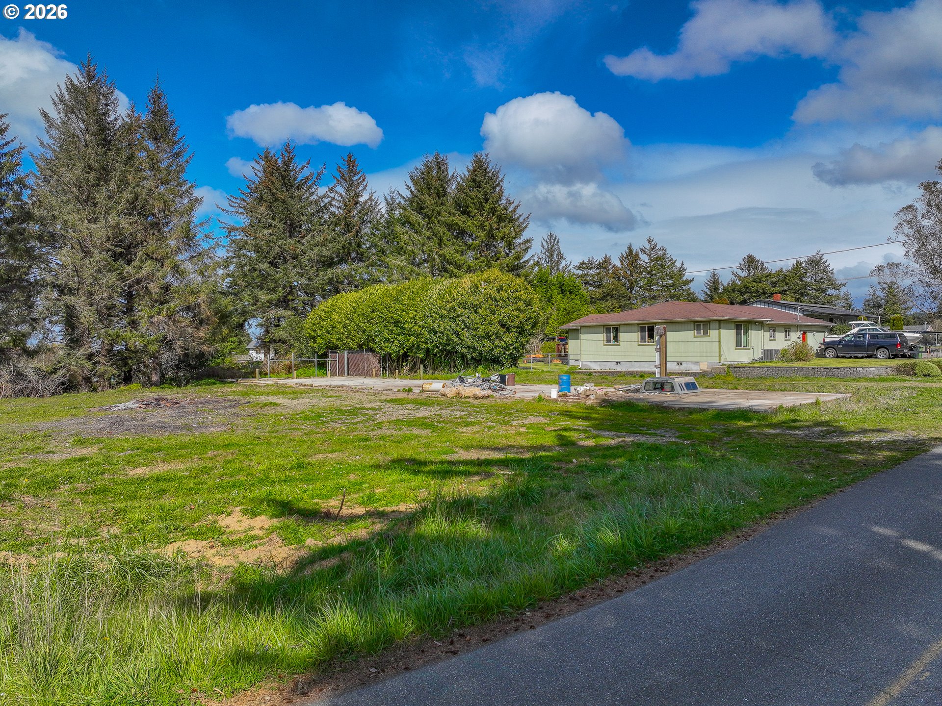 Two fantastic level & ready to build tax lots being sold together! All utilities already in per seller and sewer is capped. Awesome opportunity to build a massive barn-dominium or a new home with a shop! These flat lots boast 3 total concrete slabs already in place! Slab on West lot approx. 980sf. Slab on East lot approx. 3000sf. plus one additional smaller slab behind the 3000sf slab that could be used to place a shed or ADU. Lots of options! Per listing agent's personal verification with Coos County Water Board on 4/1/2026, tax lot 01300 associated with address 90845 Robertson Ln DOES have a water meter IN and water is available and ready for use for the new owner. Bring your building plans and plant your roots just minutes from Coos Bay's beautiful ocean beaches! Very rare opportunity to find a level ready to build lot with all utilities in this market! Buyer and Buyers agent to verify all info.