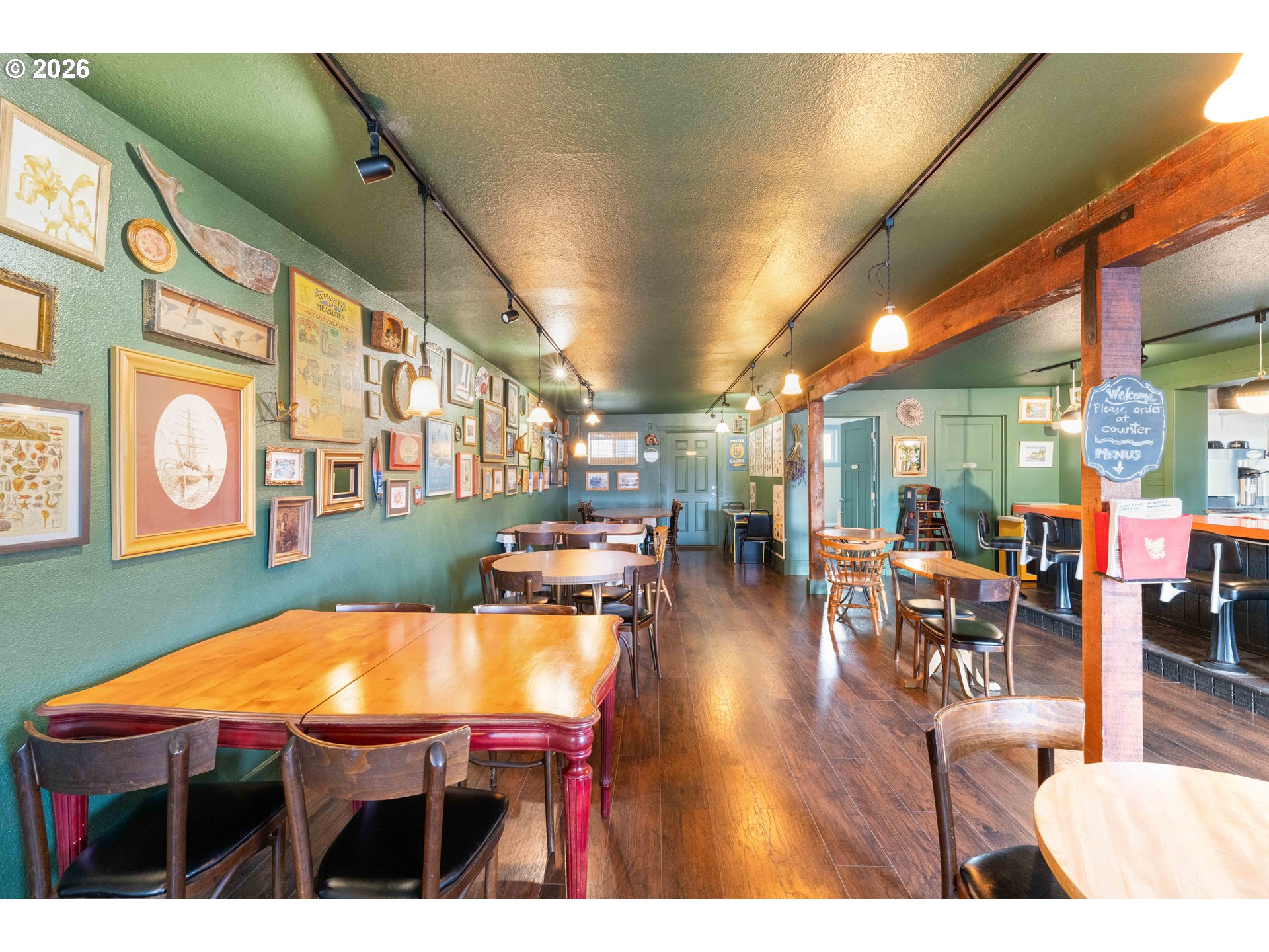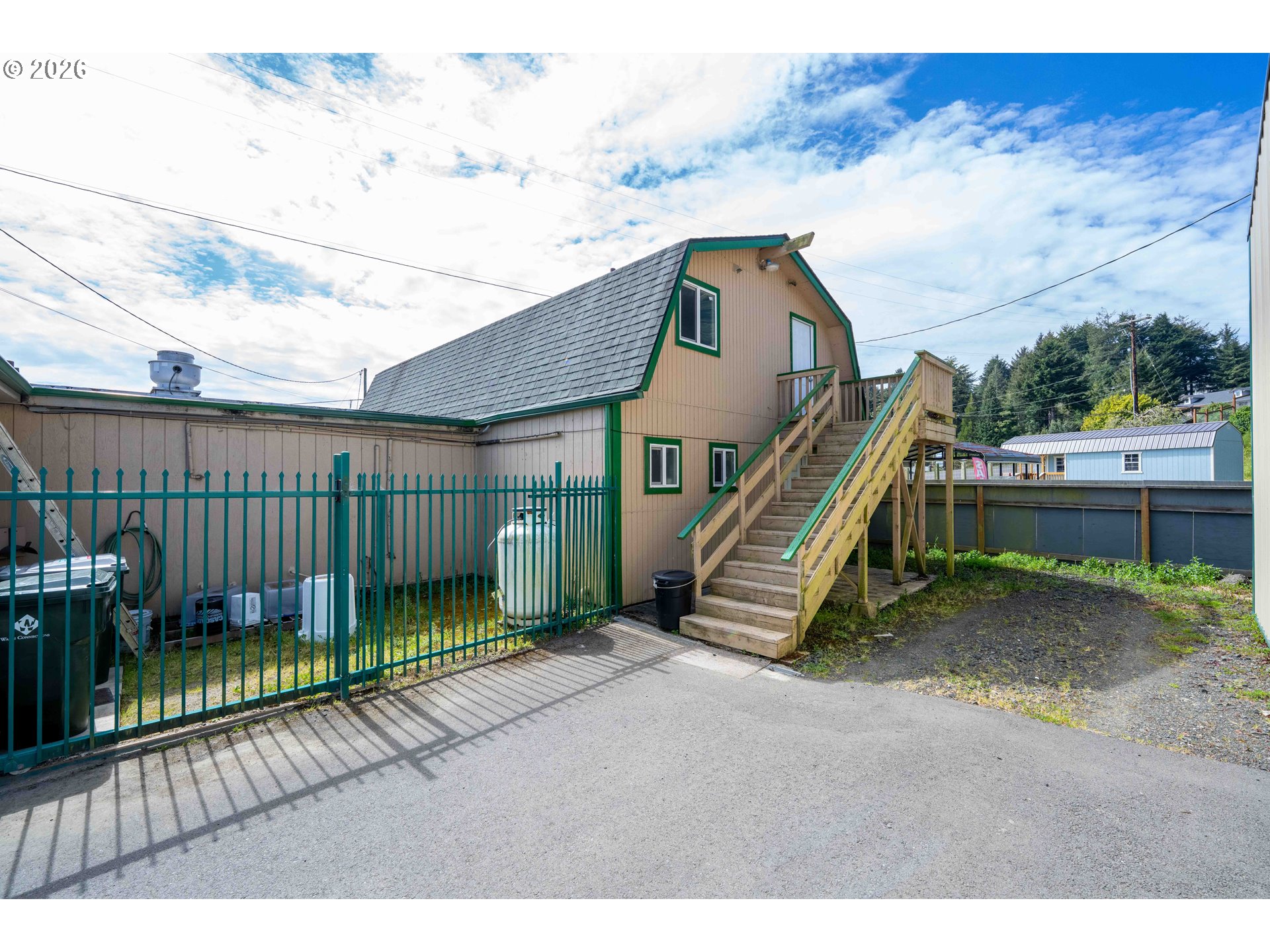 Versatile Coastal Investment with Multiple Income Streams ~Located along the highly visible Cape Arago Highway just seconds from Bastendorff Beach, this unique mixed-use property presents a rare opportunity for investors seeking strong income potential and flexibility. The 1,388 sq ft restaurant space is home to the popular and well-established Foggy's Cafe—a quaint, impeccably maintained operation with an existing occupant willing to lease from the new owner, offering immediate income stability. Above, a private-entry studio apartment (~600 sq ft) features its own balcony, with existing revenue stream ideal for long-term or short-term rental opportunities. Built in 2022, the 30x50 shop sits at the rear of the property on a slab, and is divided into two functional sections, each with its own roll-up door, half bath and entry door—perfect for owner use, rental income, or business expansion. With excellent visibility, proximity to one of the area’s most desirable coastal destinations, and three distinct income-producing components, this property delivers both immediate cash flow and long-term upside. Lease the restaurant, rent the apartment, and capitalize on the shop—an investment opportunity with exceptional versatility.