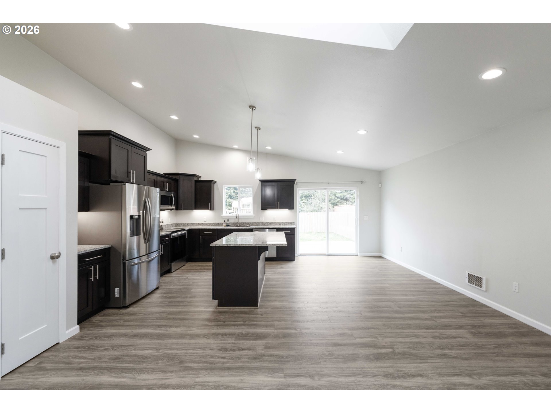 Step into modern luxury with this "like-new" 2020 build, meticulously refreshed with crisp paint and stylish touch-ups throughout. The heart of the home is a stunning vaulted great room that seamlessly integrates the living and dining areas with a chef-inspired kitchen. Anchored by a functional island, the kitchen boasts a full suite of stainless steel appliances—including a refrigerator, range, dishwasher, and built-in microwave—plus a spacious pantry for all your storage needs.Designed for ease and accessibility, the home features zero-entry access from the oversized garage. The convenience continues with a dedicated laundry room where the washer and dryer stay for the new owners. Experience ultimate comfort in both bathrooms, each with heated tile floors for a spa-like feel. Retreat to the primary suite, which offers a private sanctuary complete with a walk-in shower, alongside two additional well-appointed bedrooms.Step through the sliding glass doors to enjoy a fully fenced backyard, perfect for privacy and pets. Outdoor enthusiasts will love the forested walking trails steps from the front door, offering a peaceful escape just moments from the bay and beach access. This coastal gem is ready for you. Watch our Video Tour on YouTube and call today to schedule your private showing!