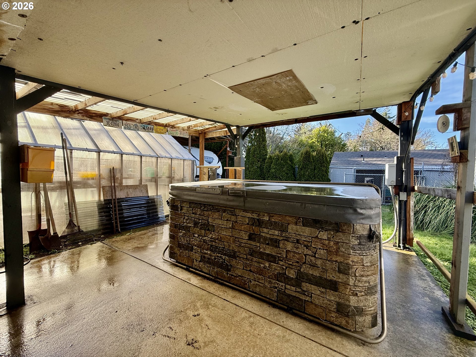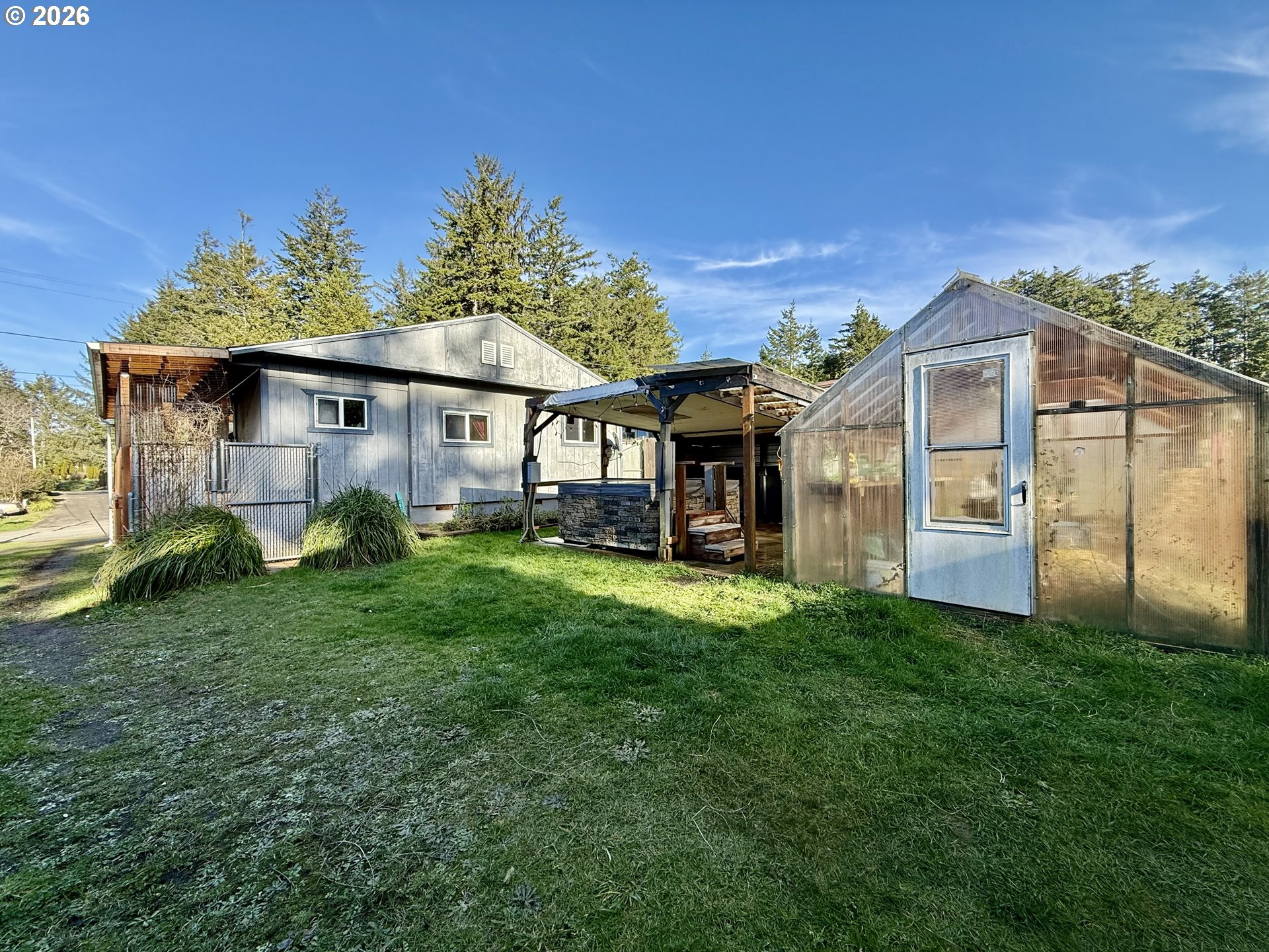 Country living with elbow room on .23 acres, but just mins to bay and water views, beach, shopping and restaurants. Soak up the day on the covered wrap around porches and relax in the evenings in the hot tub. Enjoy sustainable living and grow your own food in the large greenhouse. RV shelter is timber constructed with cabana and full hook ups for company or for your own escape RV. Abundant indoor storage and workshop space with a large storage shed and 15 X 27 workshop with its own electrical panel, and wood floor. Open kitchen with large windows and abundant natural light. Includes fridge and range. Spacious living room, 2 bedrooms and full bath with shower over tub combo. Recent updates and improvements include: Covered RV port, timber frame wrap round deck, insulation under floor, vinyl frame windows, house roof, Heat Pump, water heater. A few miles drive to Botanical Gardens & Drake Point where you can see and hear the sea lions and whale watch.