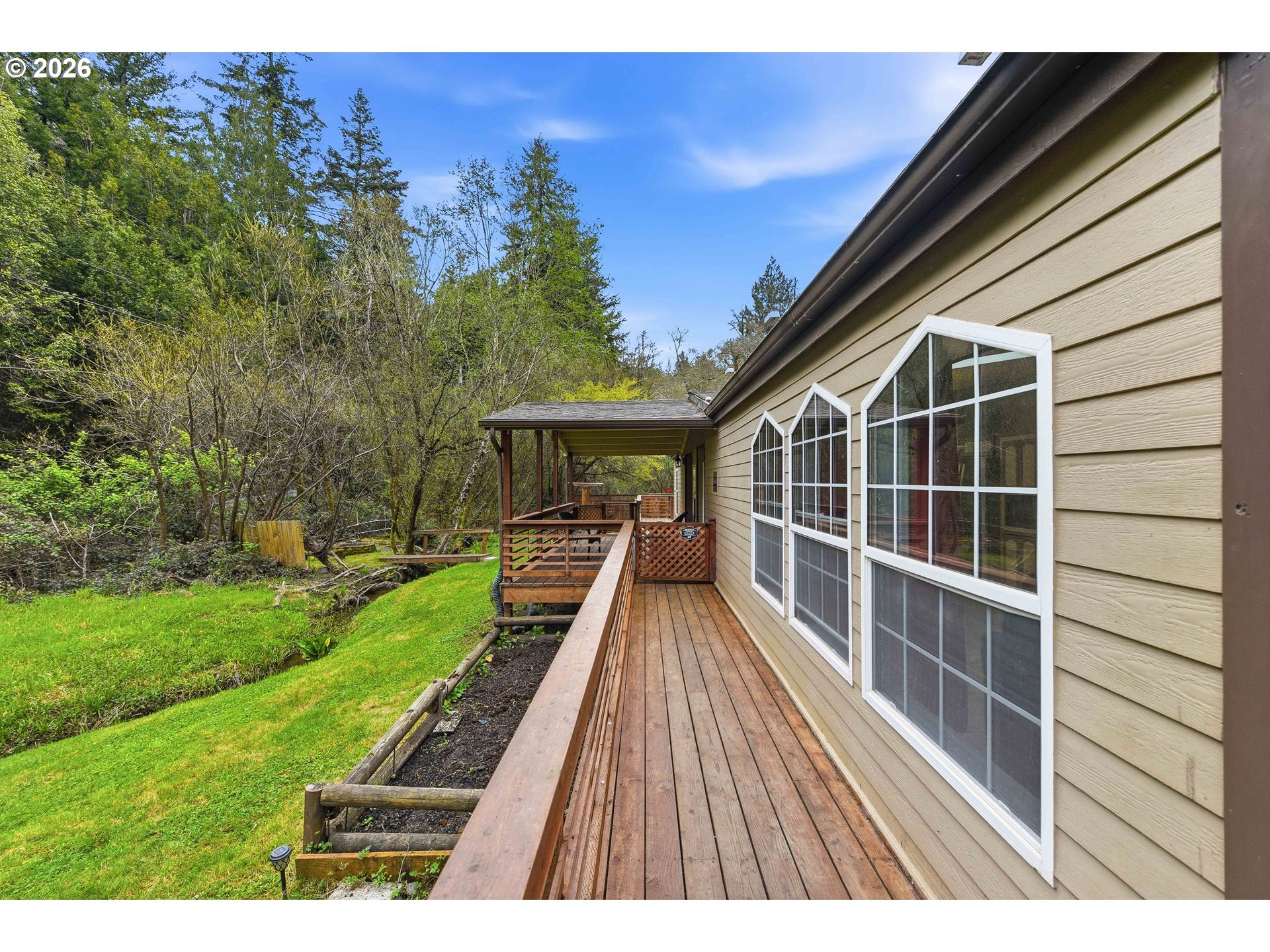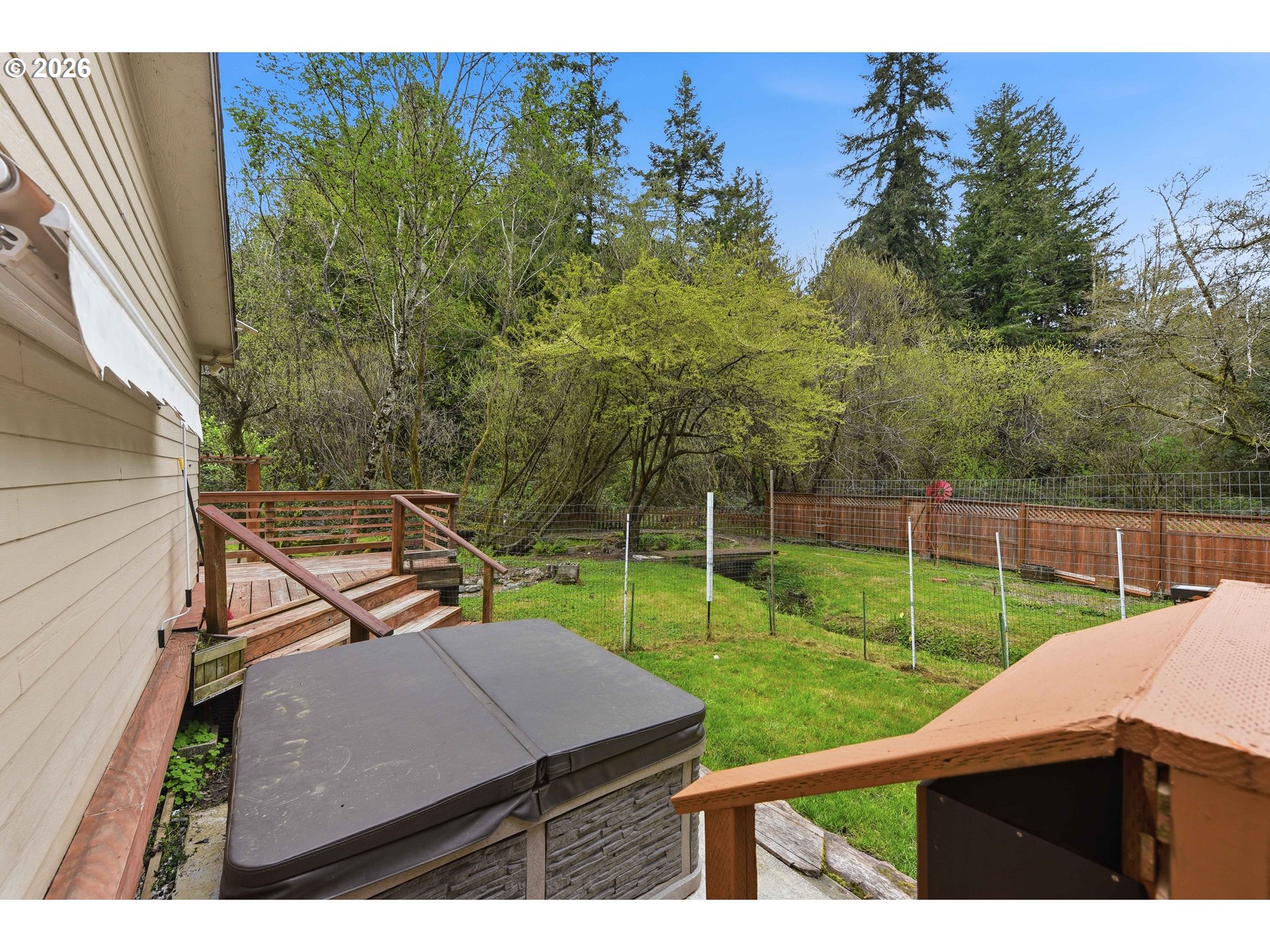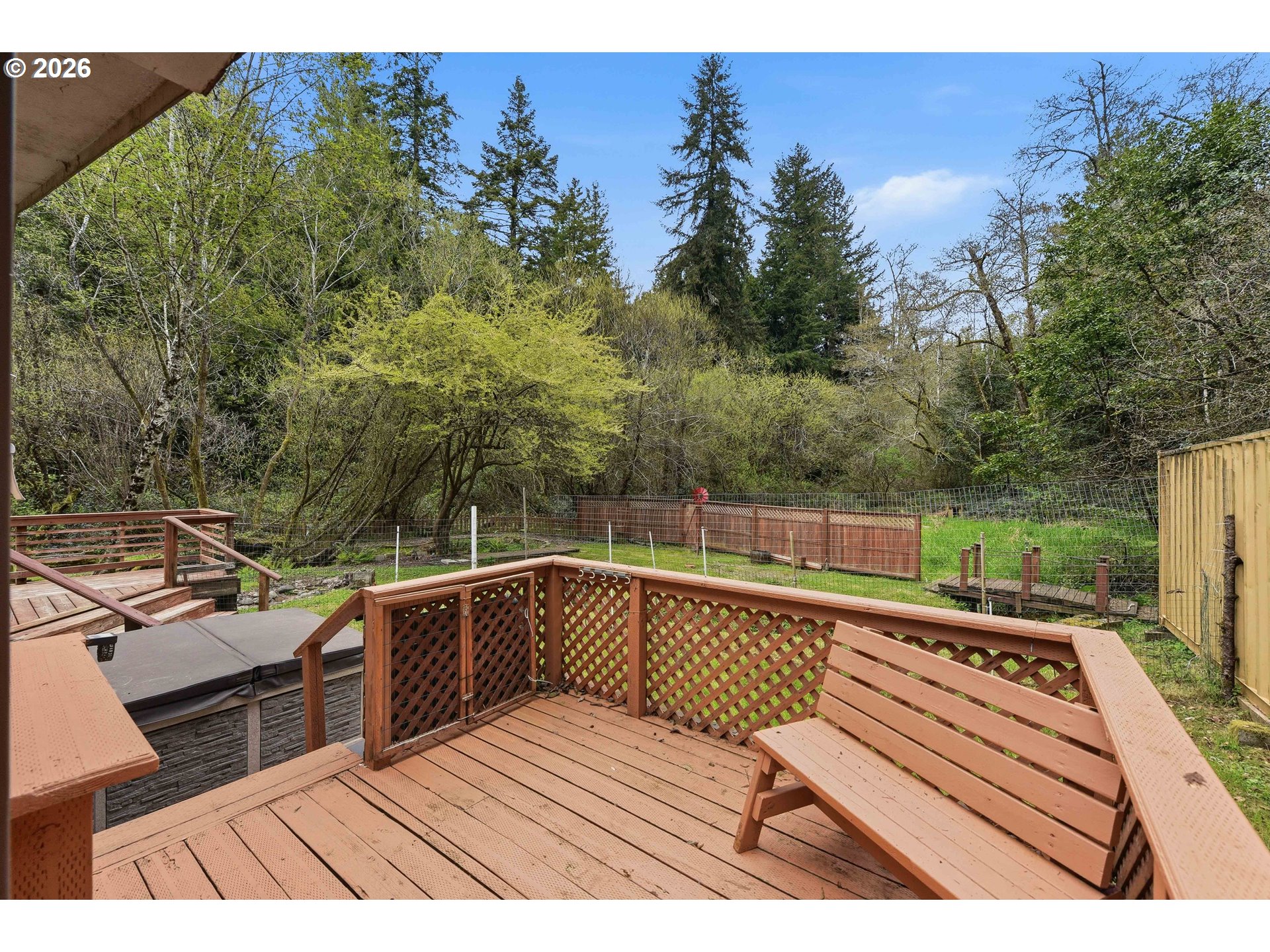 This move in ready 3 bed 2 bath home on .22 acres home offers a great floor plan with separation between the primary suite and additional bedrooms. The primary bedroom features an updated bathroom with a walk-in closet. The family room features bamboo hard wood flooring, and the home is equipped with multiple dual-pane skylights allowing for lots of natural light. Additional features include an ADT alarm system, storm screen door, and a custom entry door. Exterior highlights include a detached 2 car garage (with a brand new roof) a wraparound deck with custom staircases, a newer hot tub on a nice cement slab, and an enclosed deck area for year-round use. The property also features a peaceful park like setting with a small pond and outdoor spaces great for relaxing or group gatherings. Call your realtor and schedule a showing TODAY!