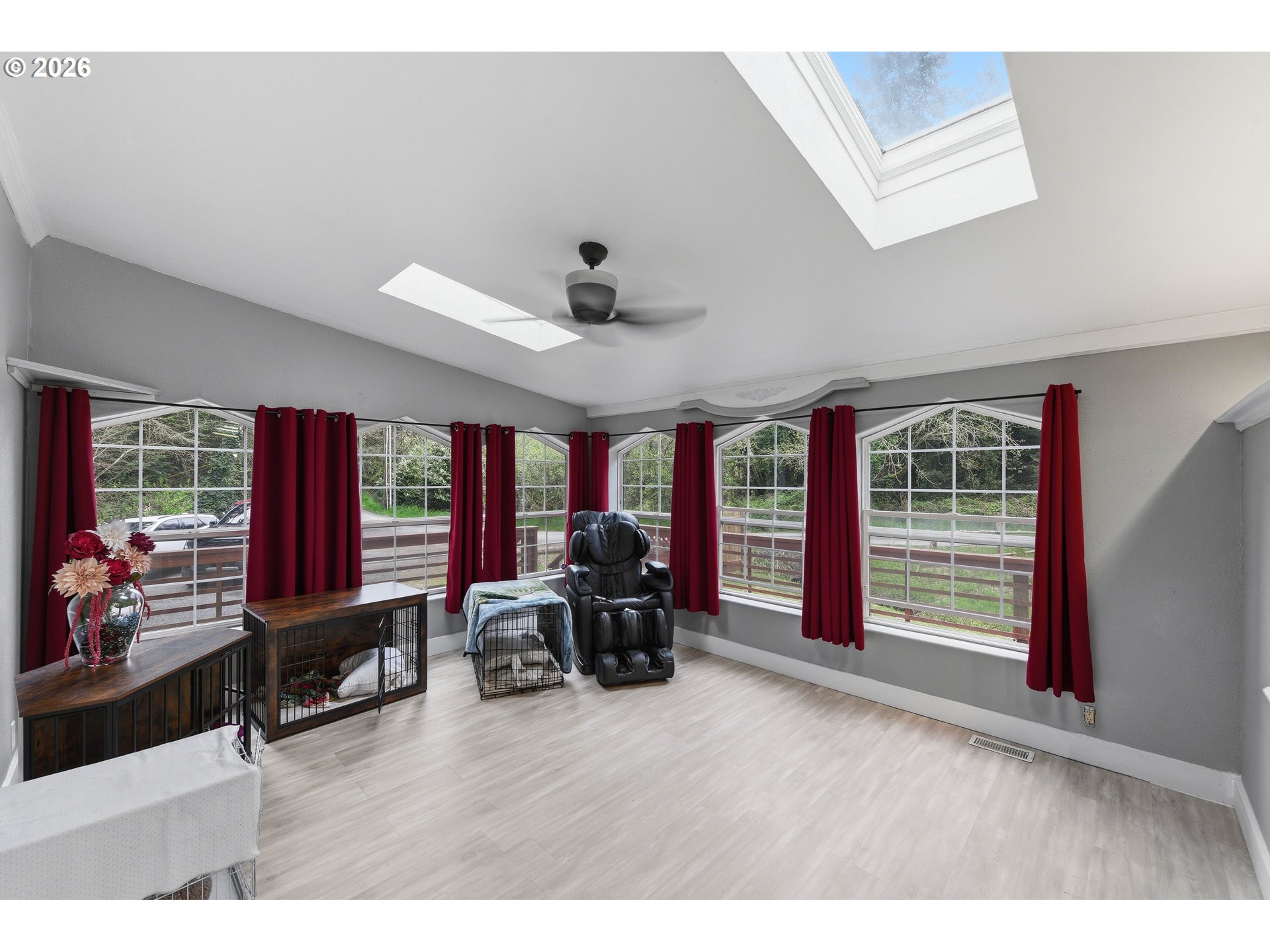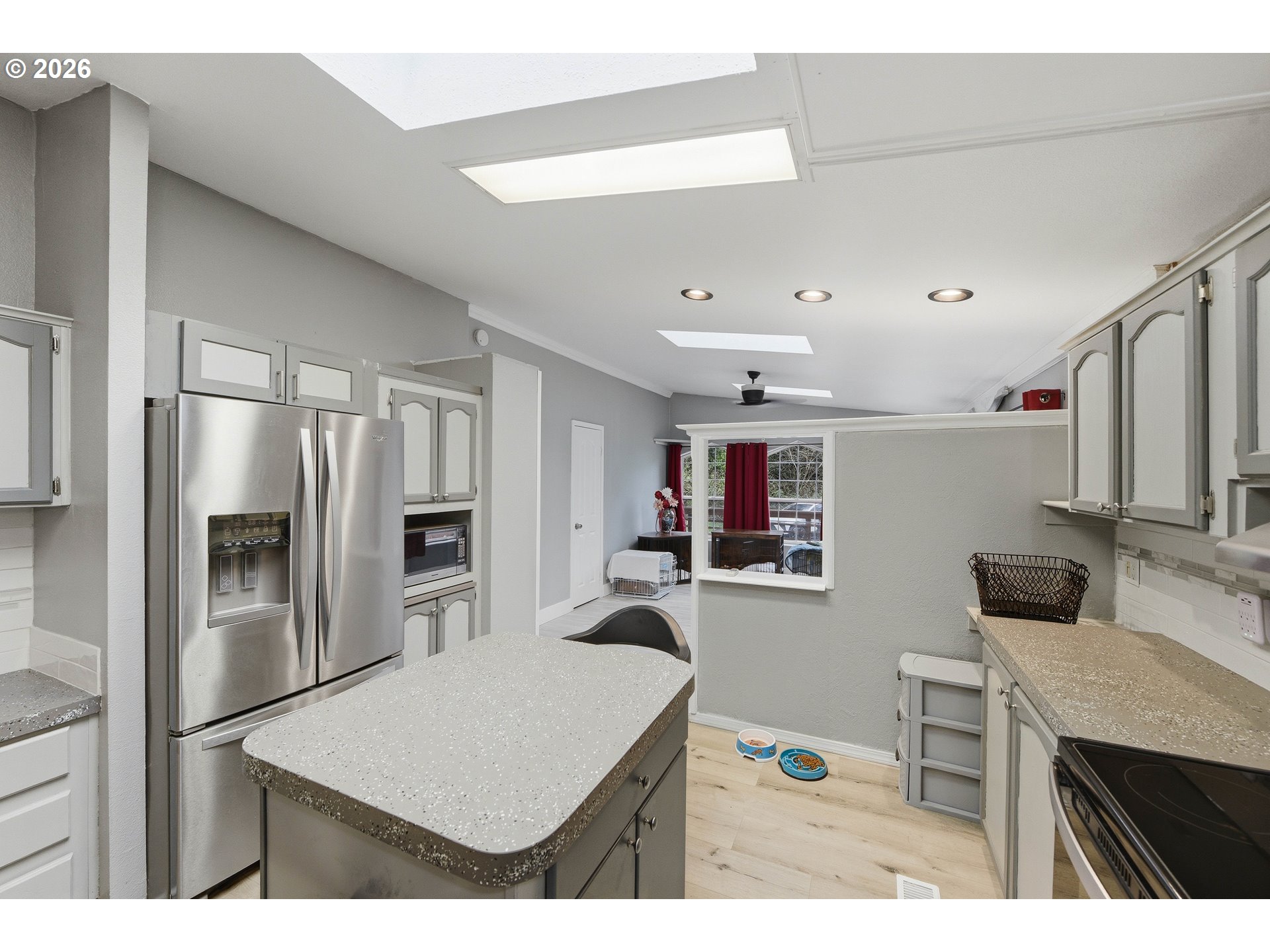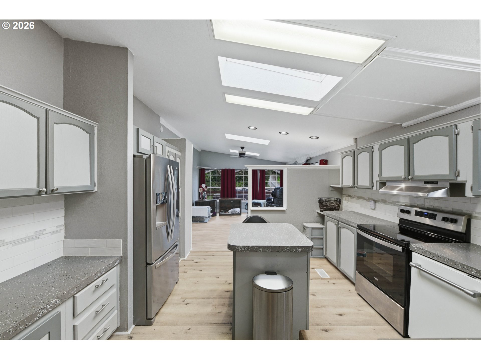 This move in ready 3 bed 2 bath home on .22 acres home offers a great floor plan with separation between the primary suite and additional bedrooms. The primary bedroom features an updated bathroom with a walk-in closet. The family room features bamboo hard wood flooring, and the home is equipped with multiple dual-pane skylights allowing for lots of natural light. Additional features include an ADT alarm system, storm screen door, and a custom entry door. Exterior highlights include a detached 2 car garage (with a brand new roof) a wraparound deck with custom staircases, a newer hot tub on a nice cement slab, and an enclosed deck area for year-round use. The property also features a peaceful park like setting with a small pond and outdoor spaces great for relaxing or group gatherings. Call your realtor and schedule a showing TODAY!